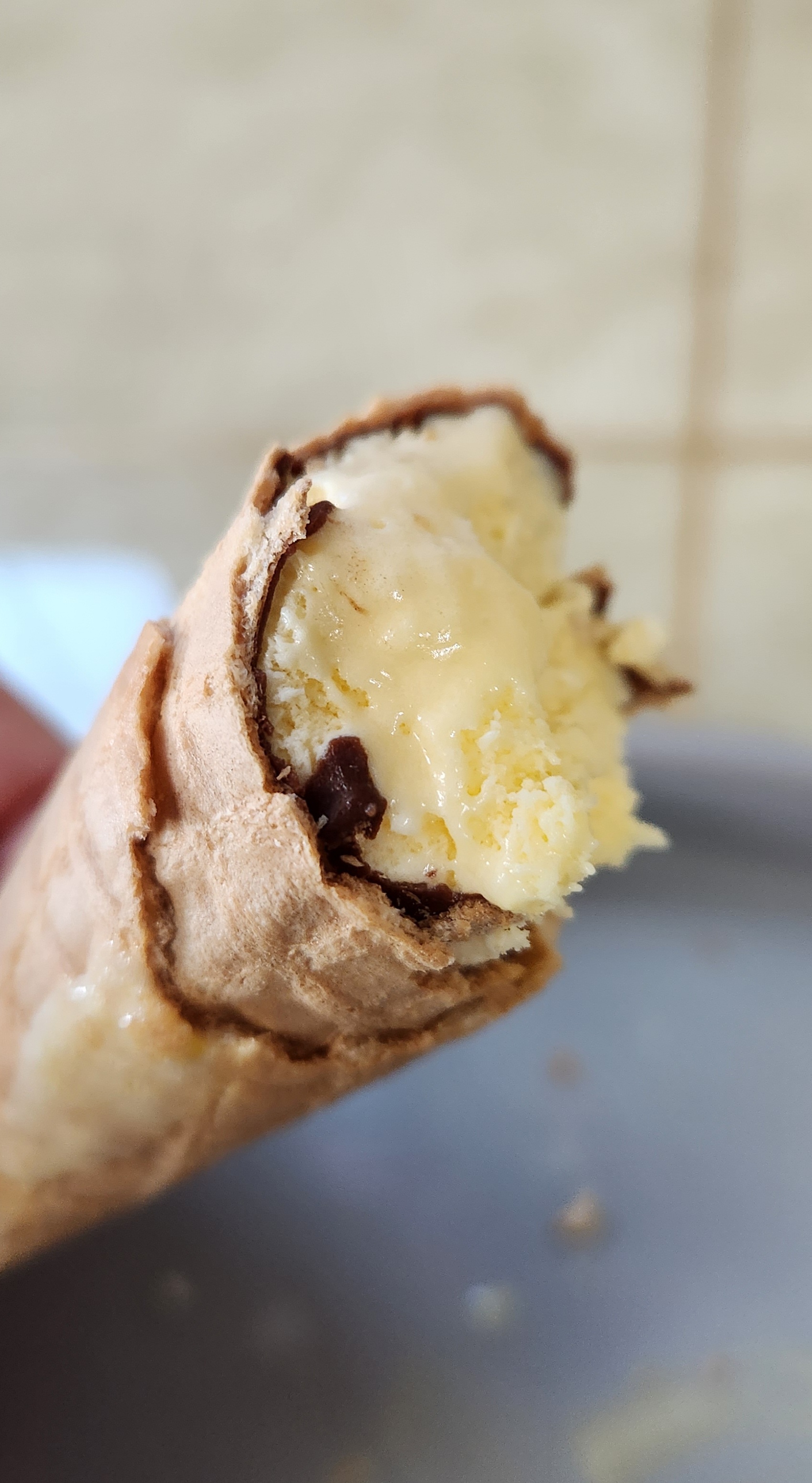 먹어 내려갈 수록 겉의 과자와 아이스크림 사이에 초콜릿코팅도 되어 있는게 보인다.