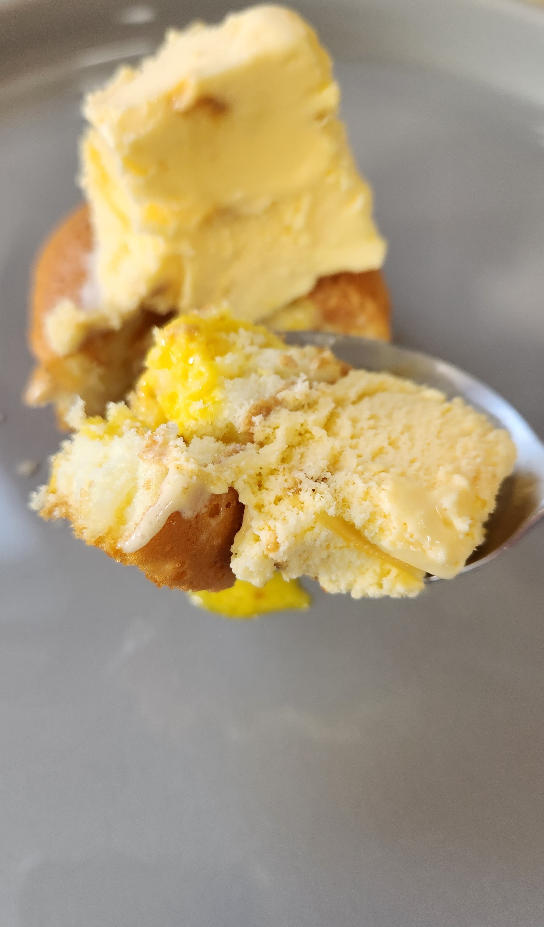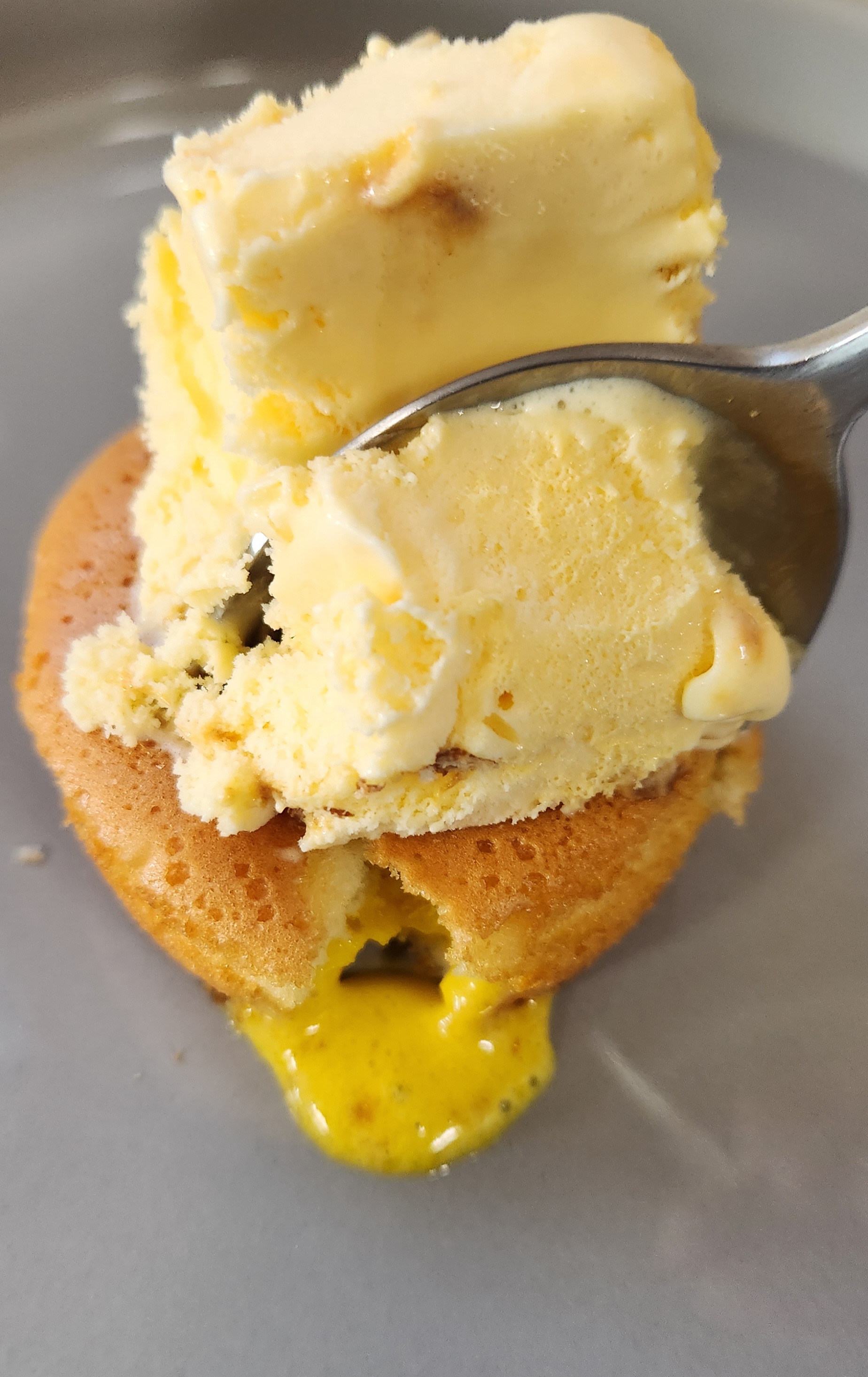 전자레인지에 돌려서 커스터드 과자 안에 필링도 적당히 잘 녹아있어 아이스크림과 잘 어우러진다.