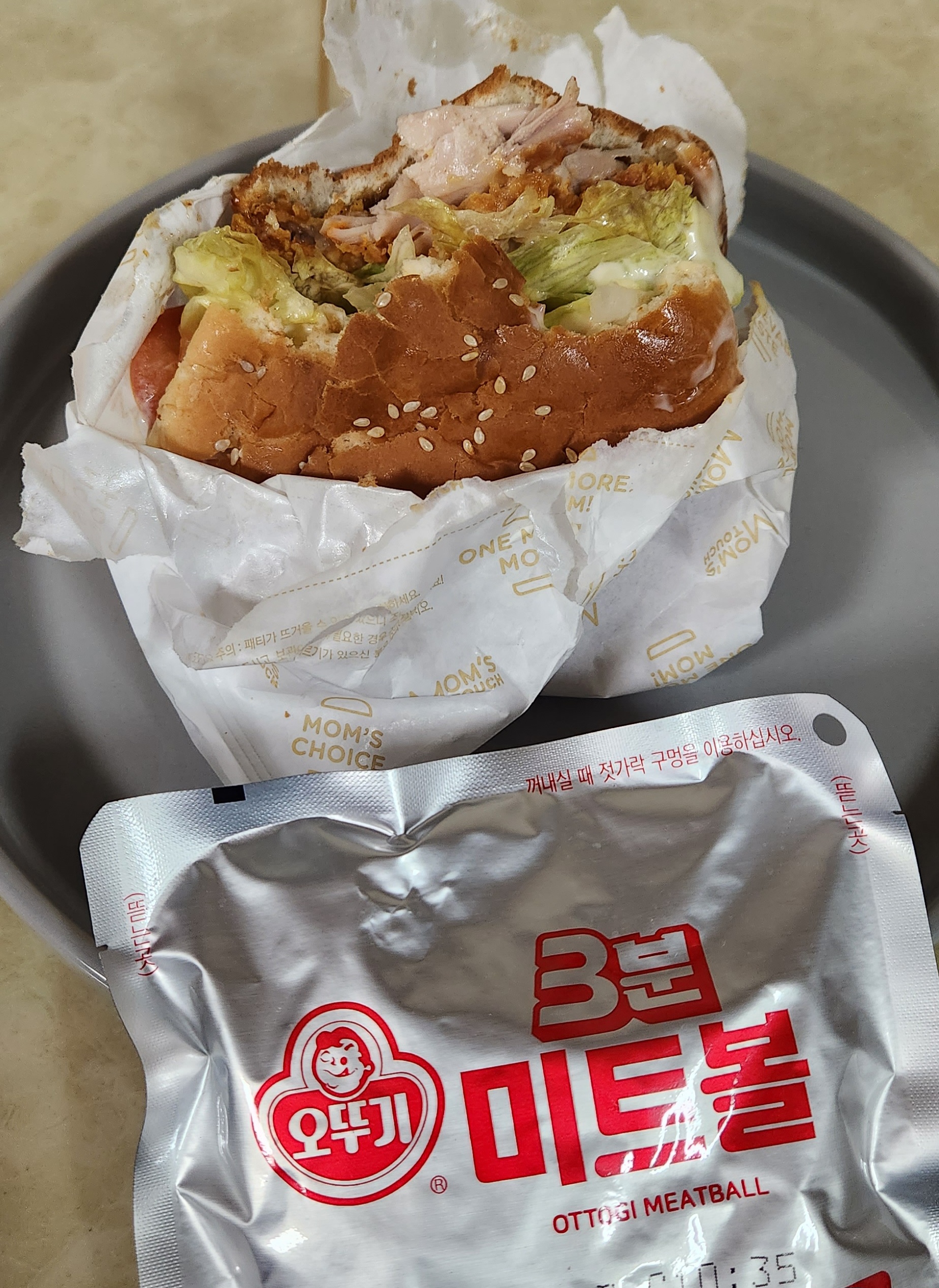 집에 3분 미트볼이 있다면 맘스터치에서 미트볼버거를 사서 같이 먹어보는 것도 추천한다.