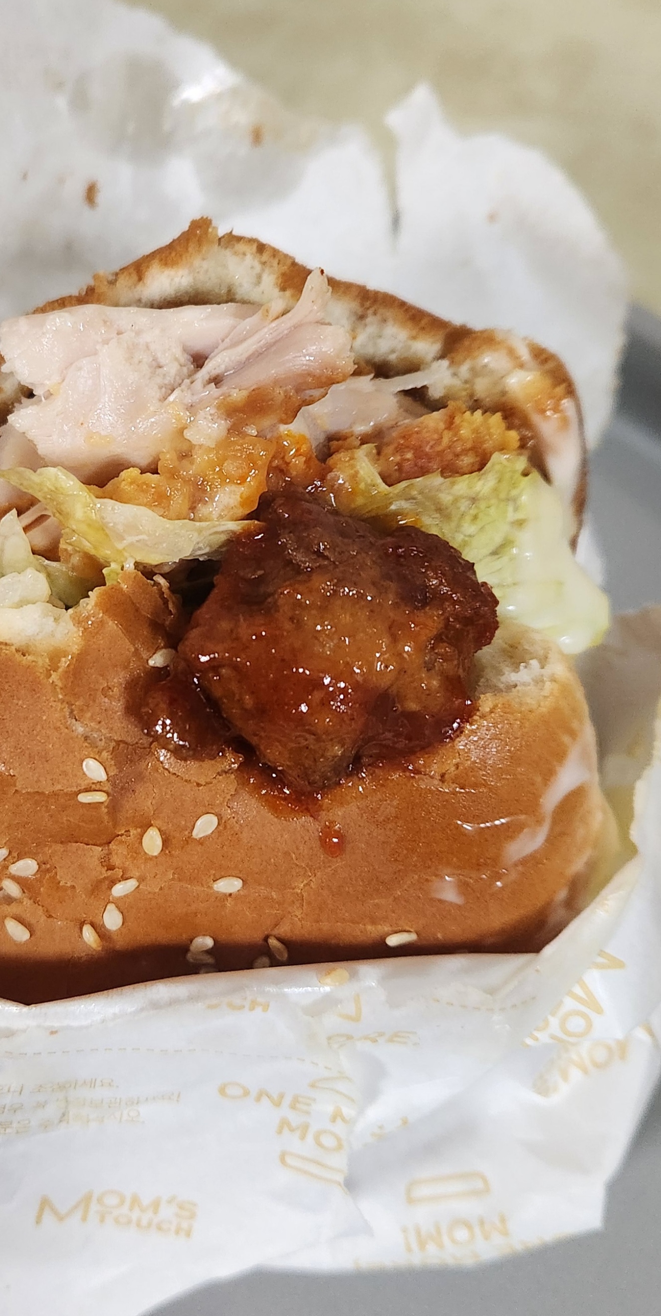 기존 맘스터치 시그니처인 치킨버거와 소스 맛에 미트볼의 식감이 더해져 고기고기(?)한 맛이 잔득 느껴진다.