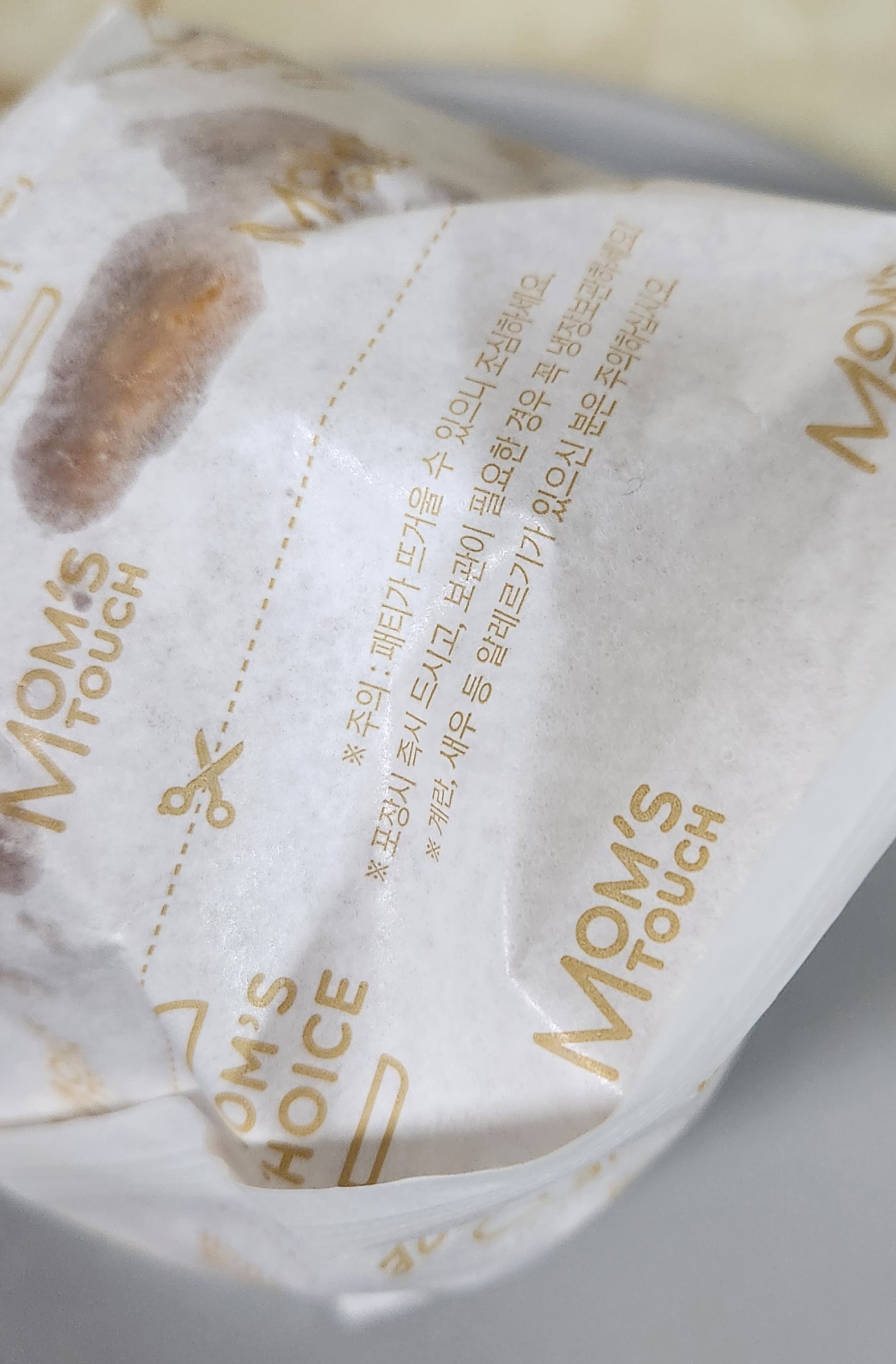 얼마 전에 유튜브 쇼츠를 보다가 알게 된 건데 맘스터치 버거의 포장지에는 이렇게 점선이 표시되어 있다.