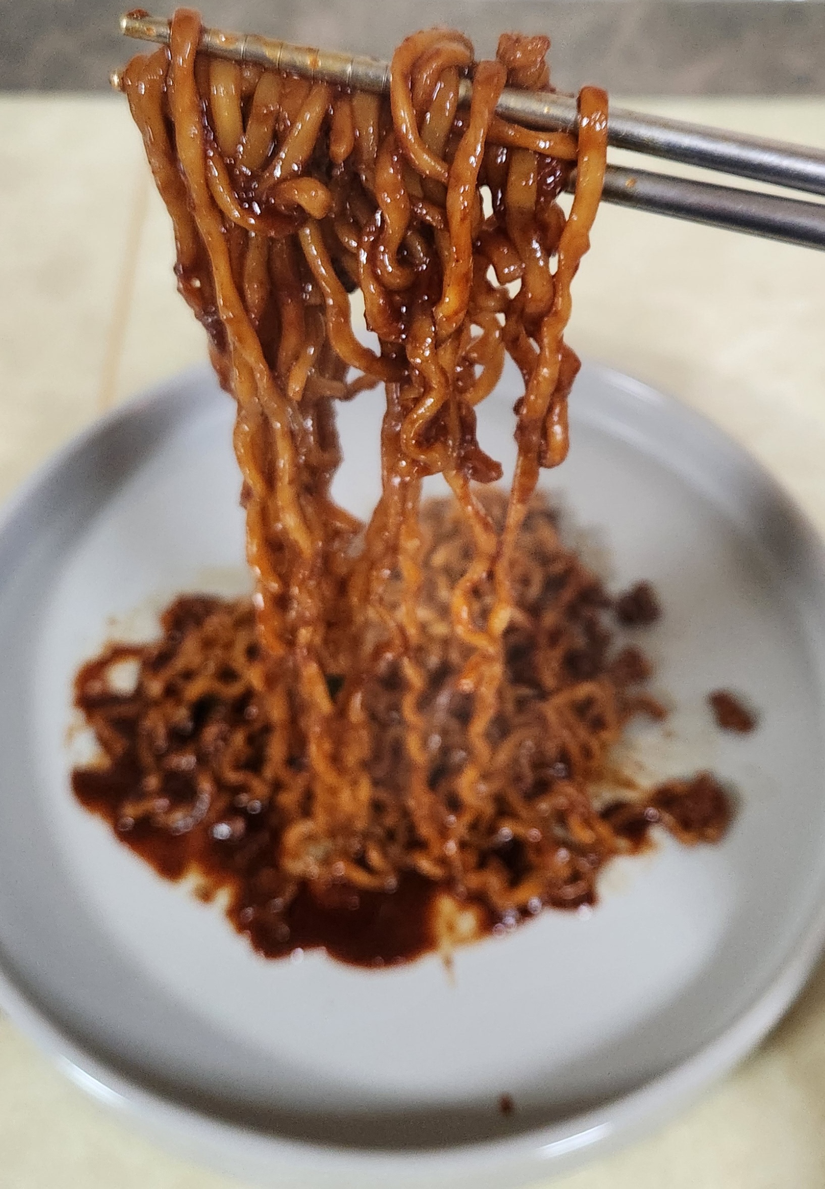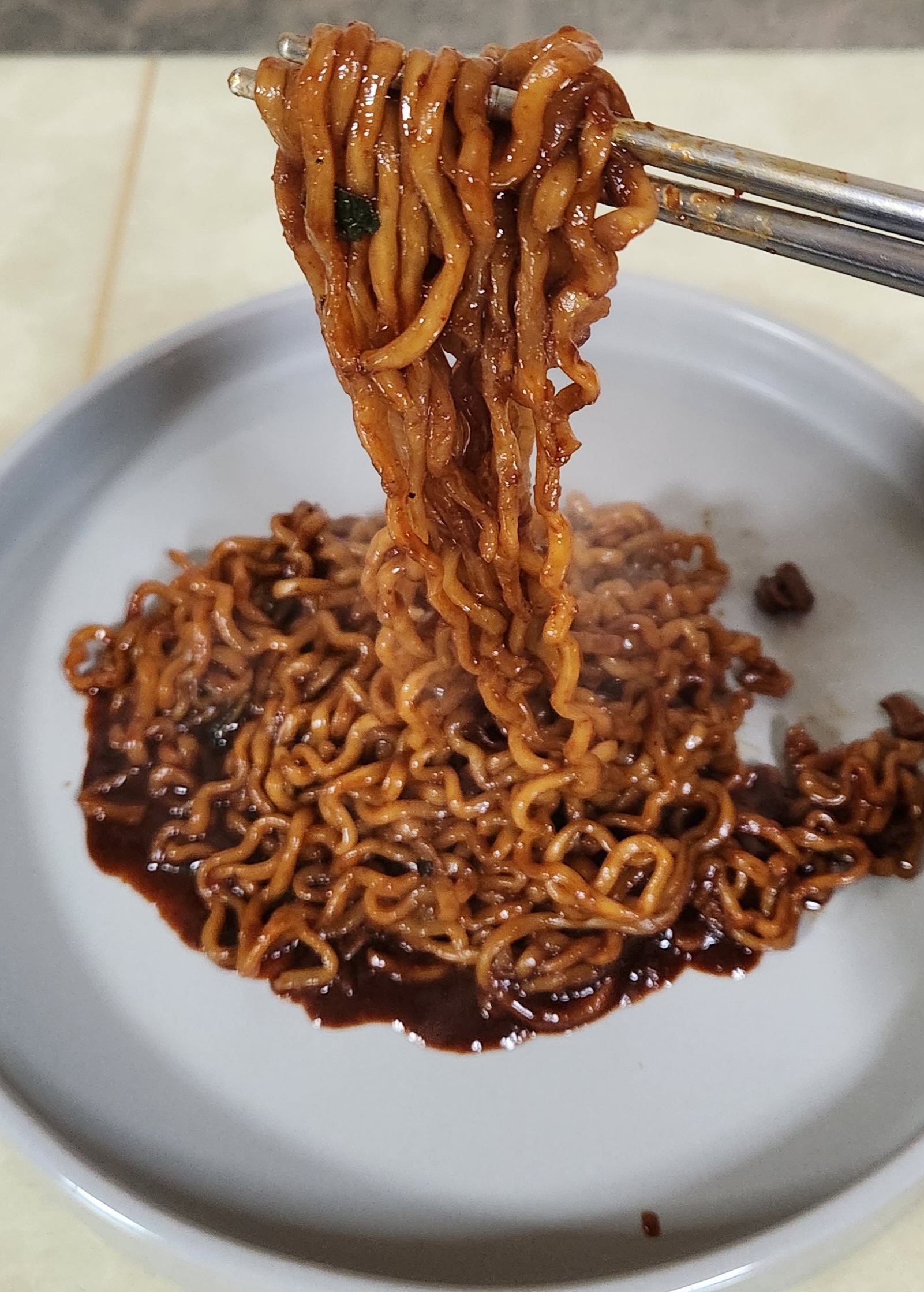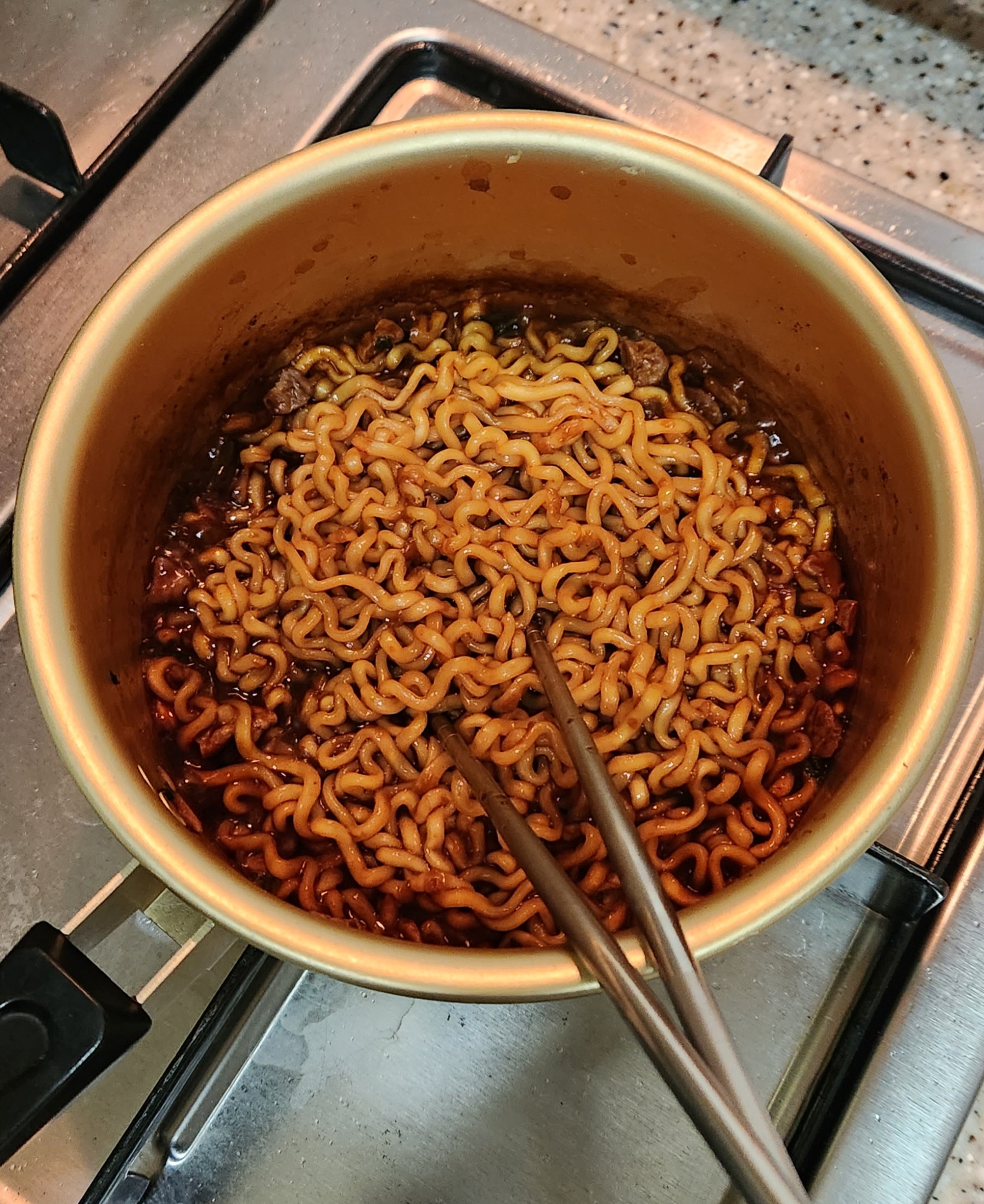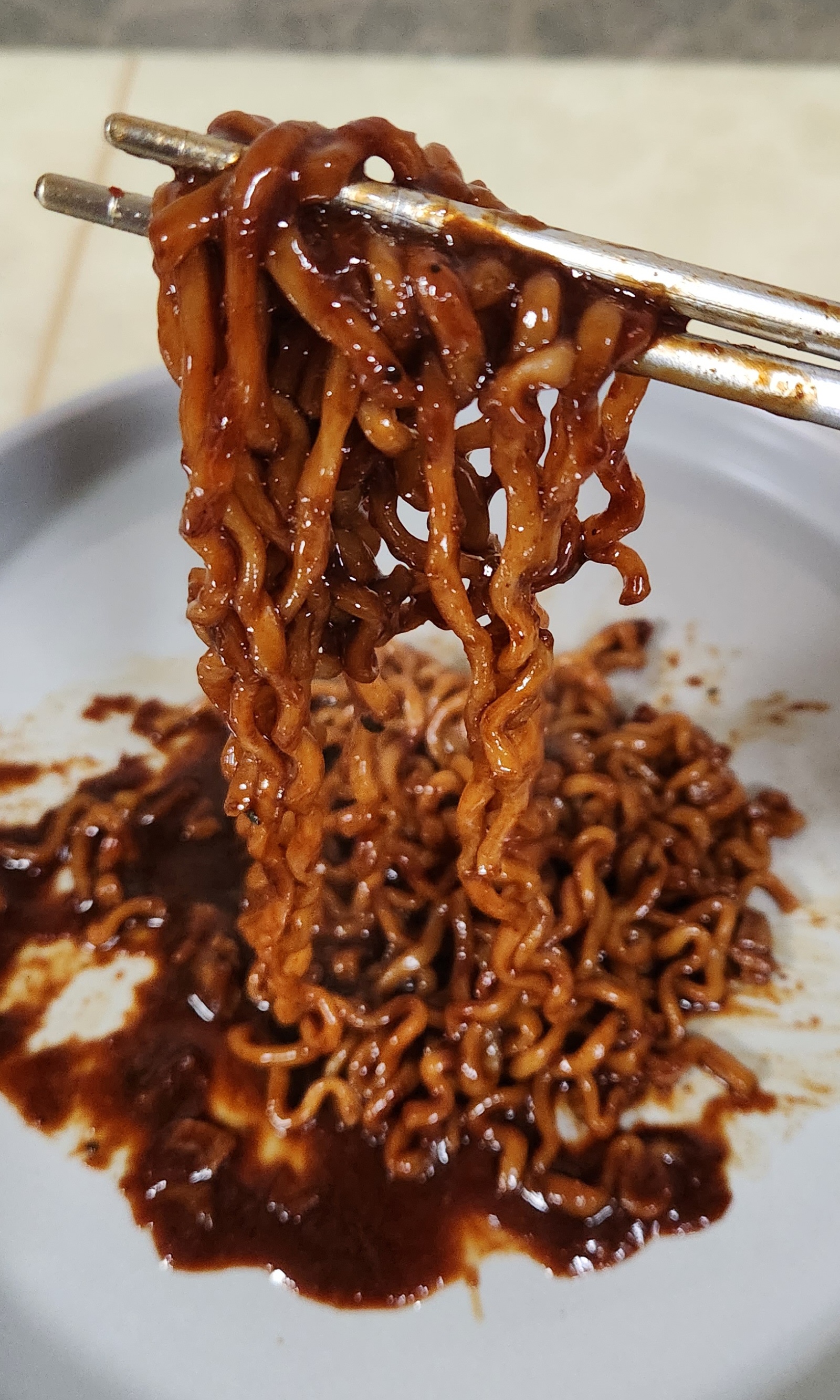 비주얼은 그냥 짜장라면인데 냄새는 불닭볶음면 특유의 매운 향이다.