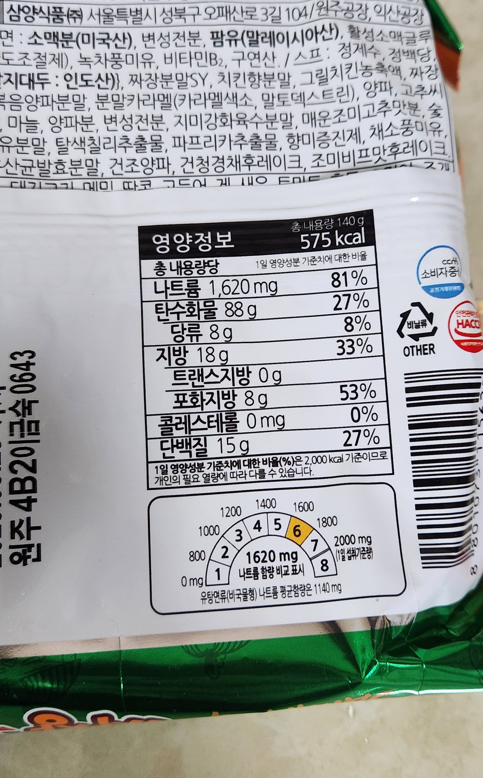 칼로리는 한 봉지 당 575kcal.