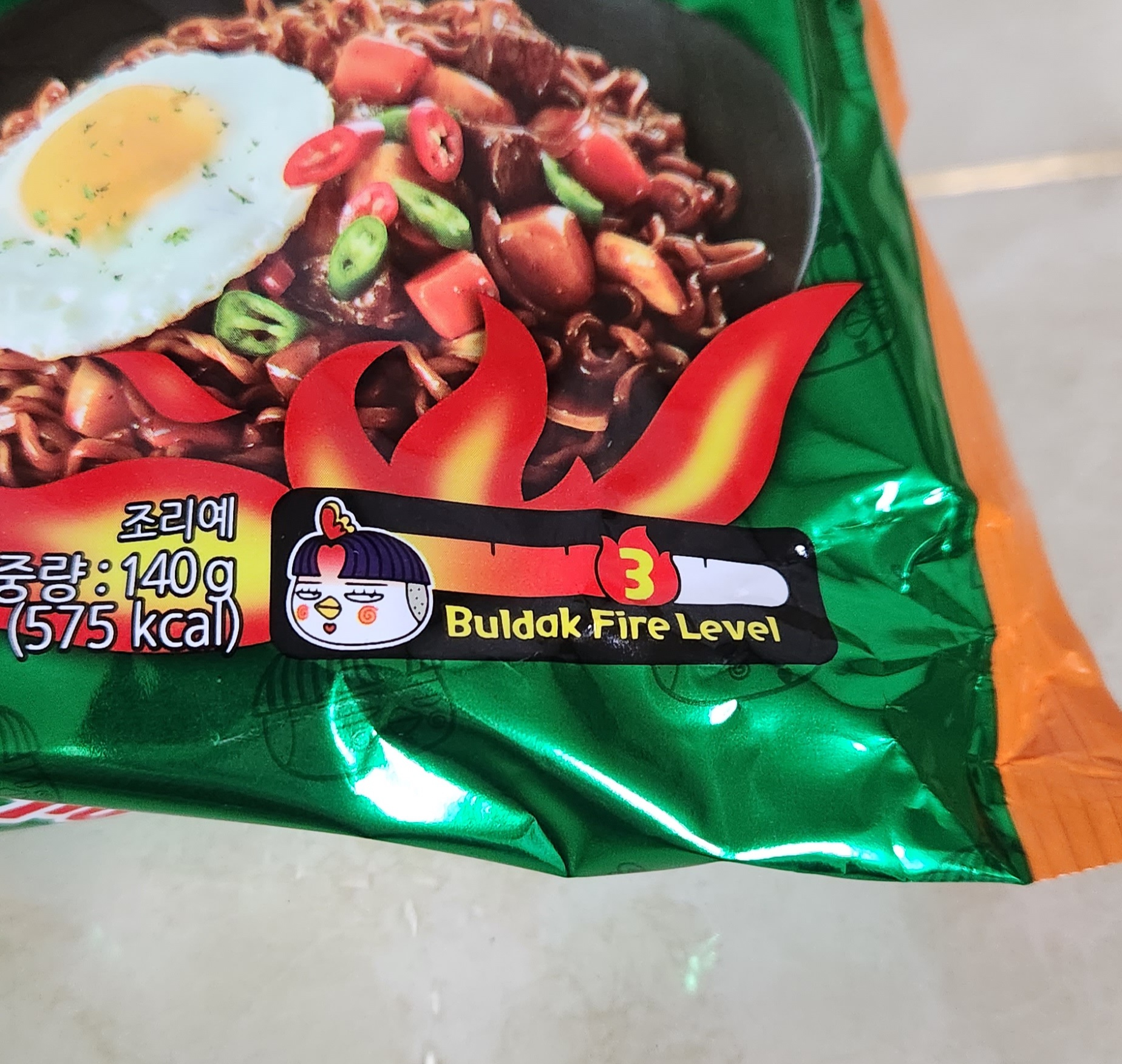 불닭 맵기 레벨(Buldak Fire Level)이 3인데 이 정도는 불닭 제품 중 '까르보, 짜장, 짬뽕' 정도의 맵기라고 한다.