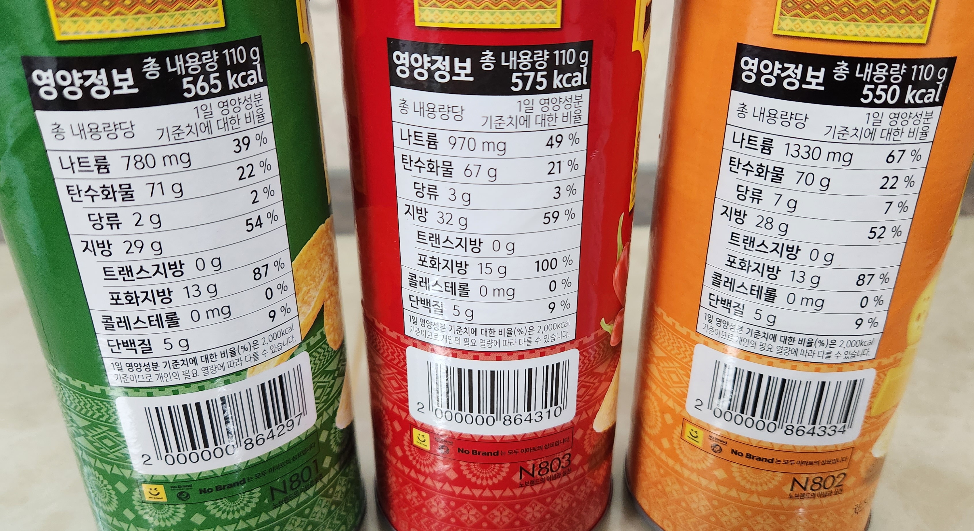 용량은 110g으로 다 같지만, 칼로리는 조금씩 차이가 난다.