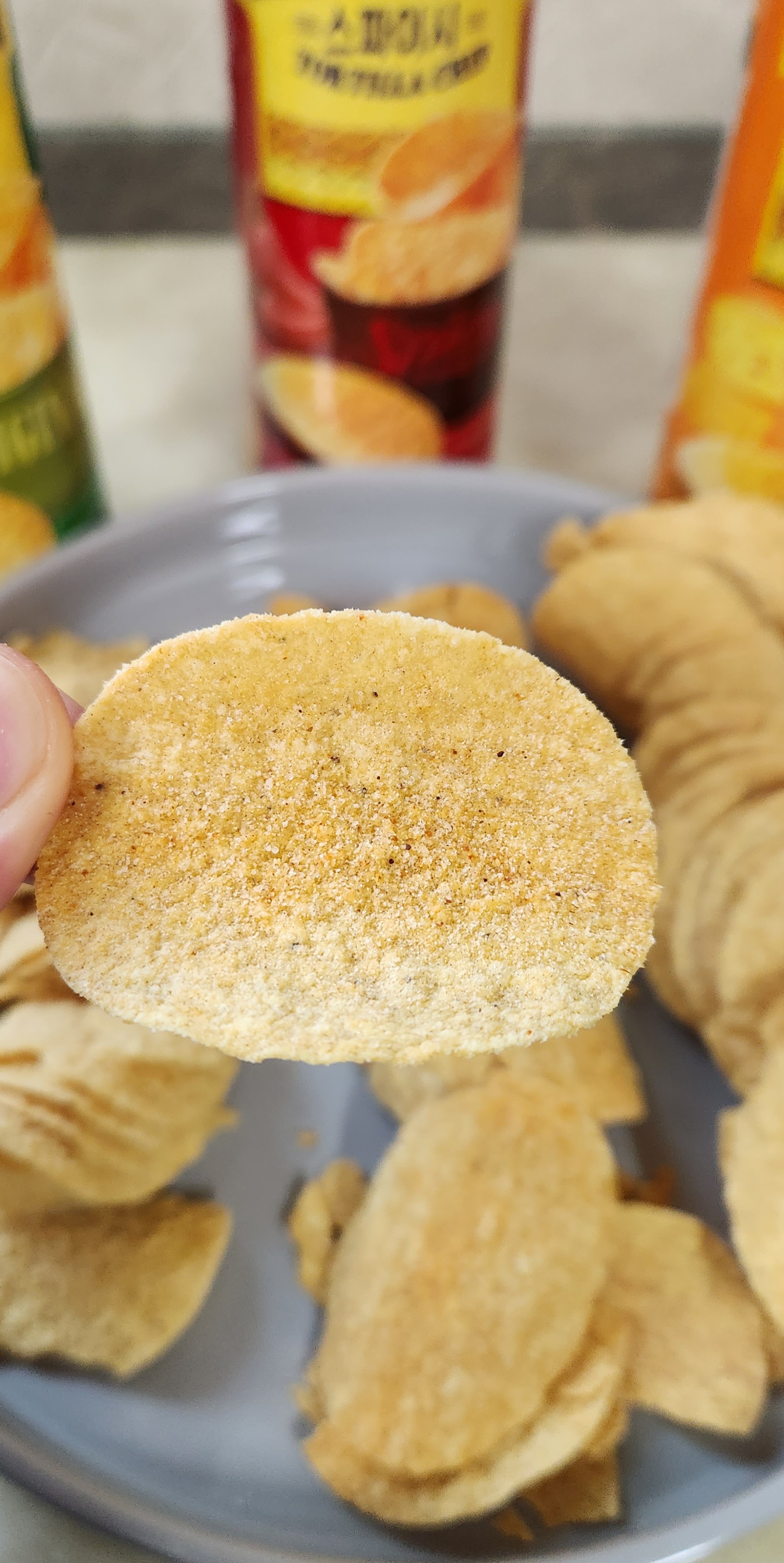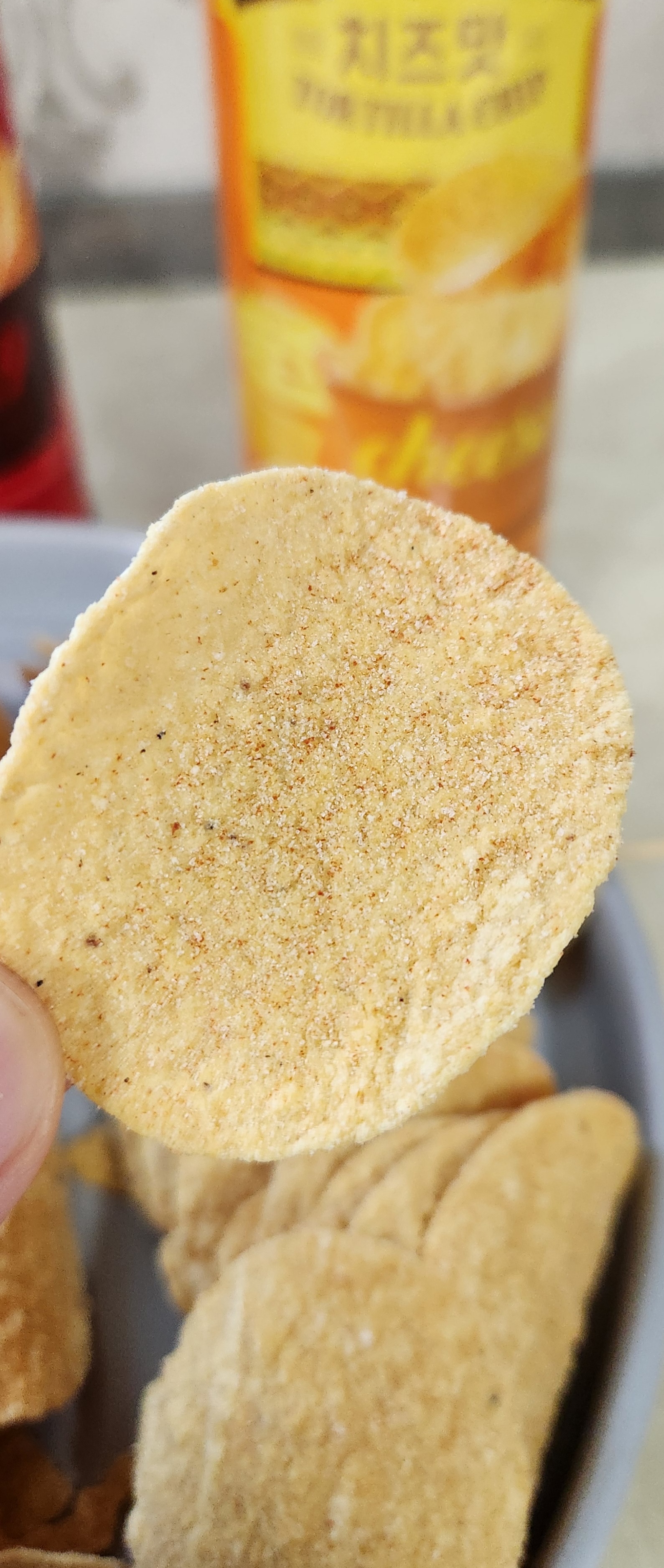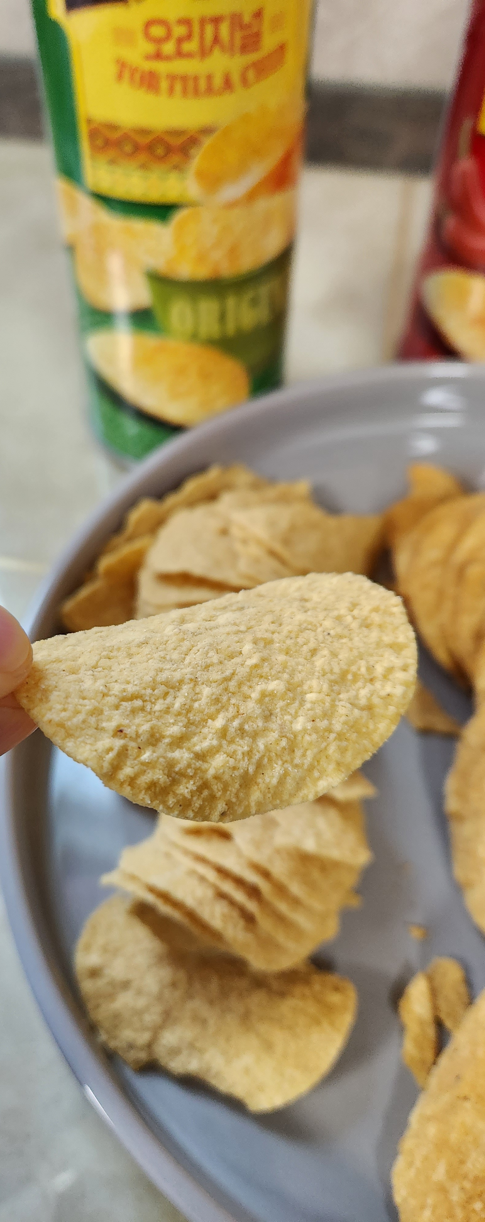 일반 감자칩이 아니라 옥수수가 주재료인 또띠아 칩이라 감자칩보다는 더 잘 부서지는 것 같다.