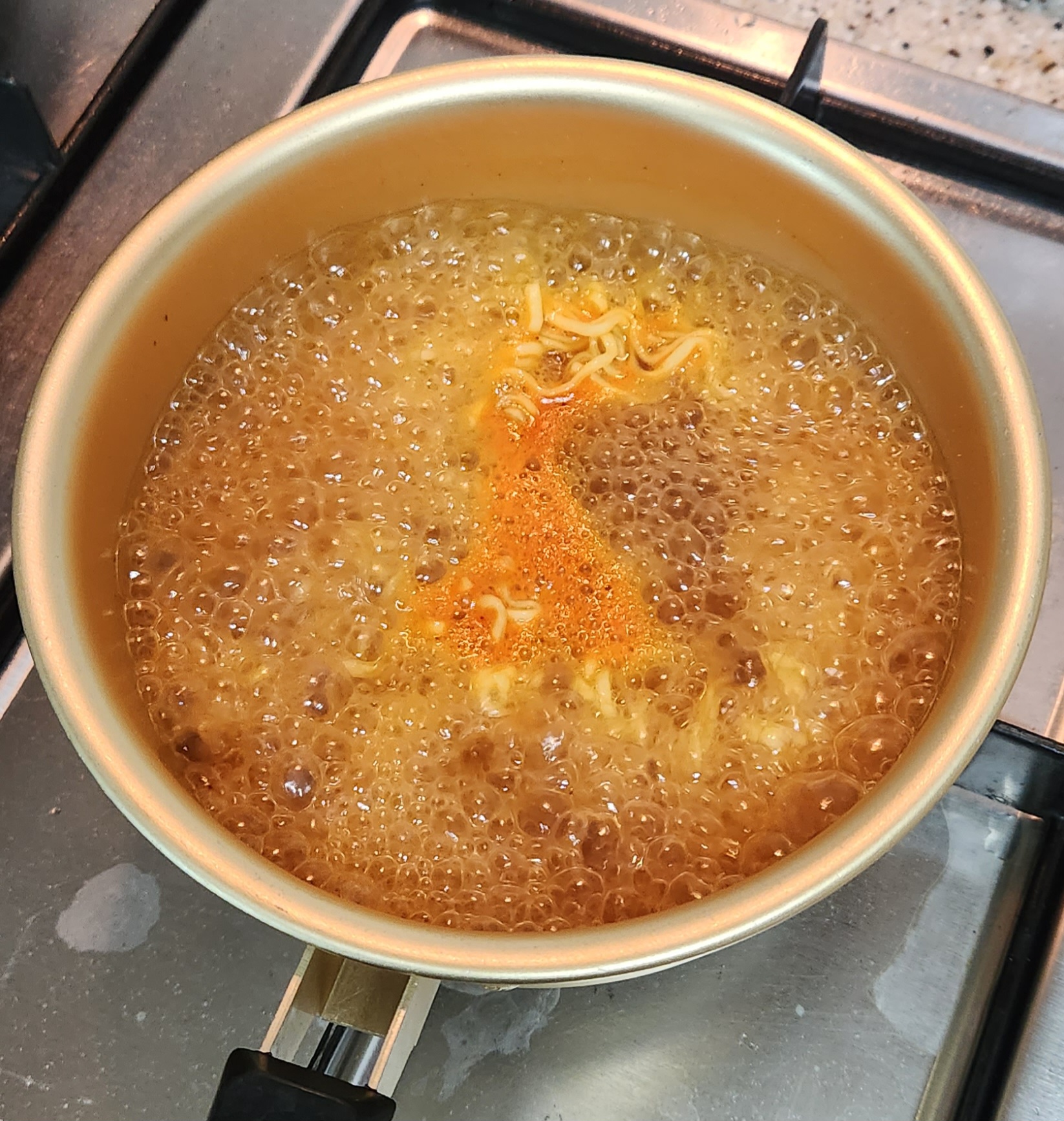면과 기본 분말스프만 넣고 라면을 끓였다.