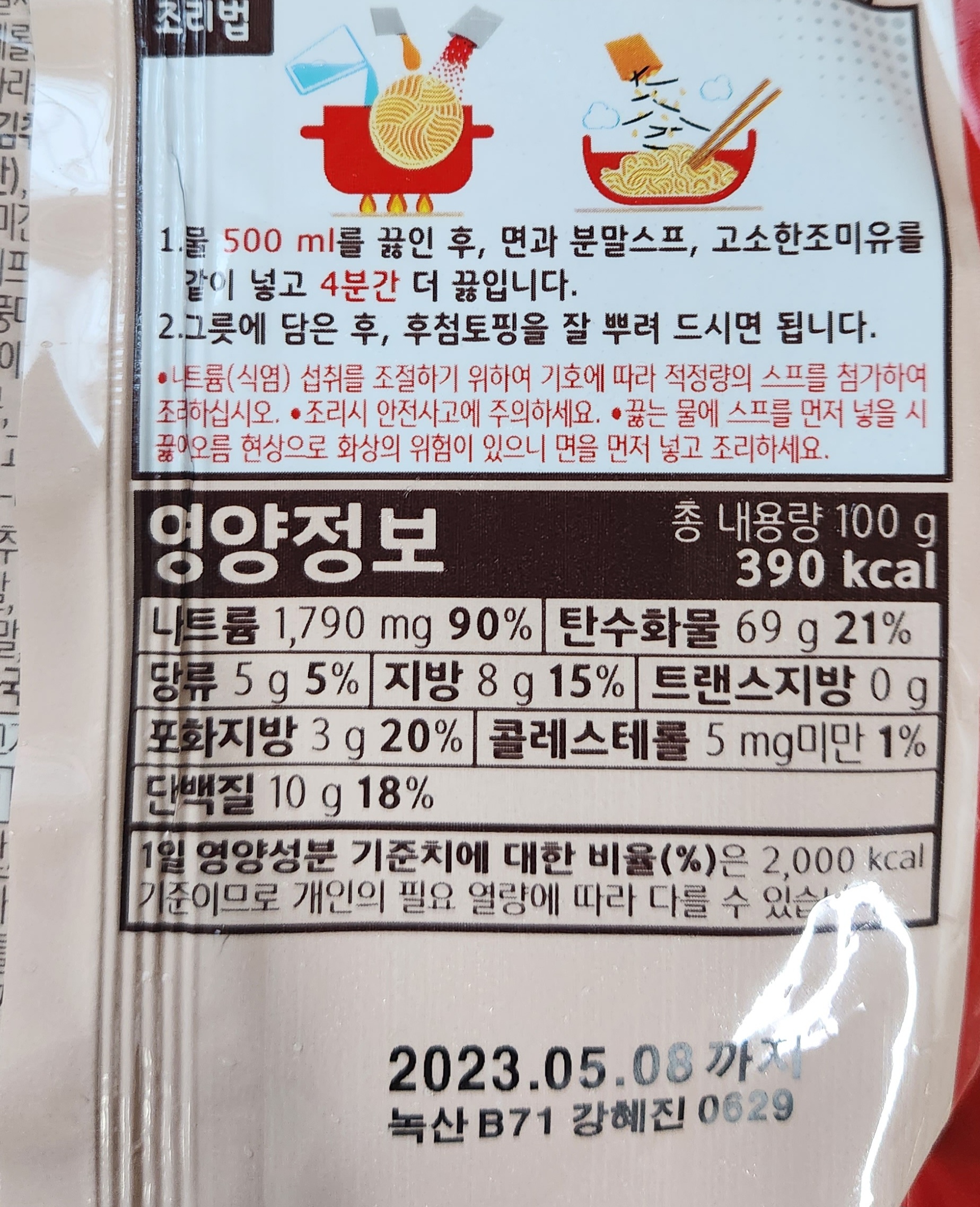 건면이기 때문에 칼로리는 비교적 낮은 390kcal.