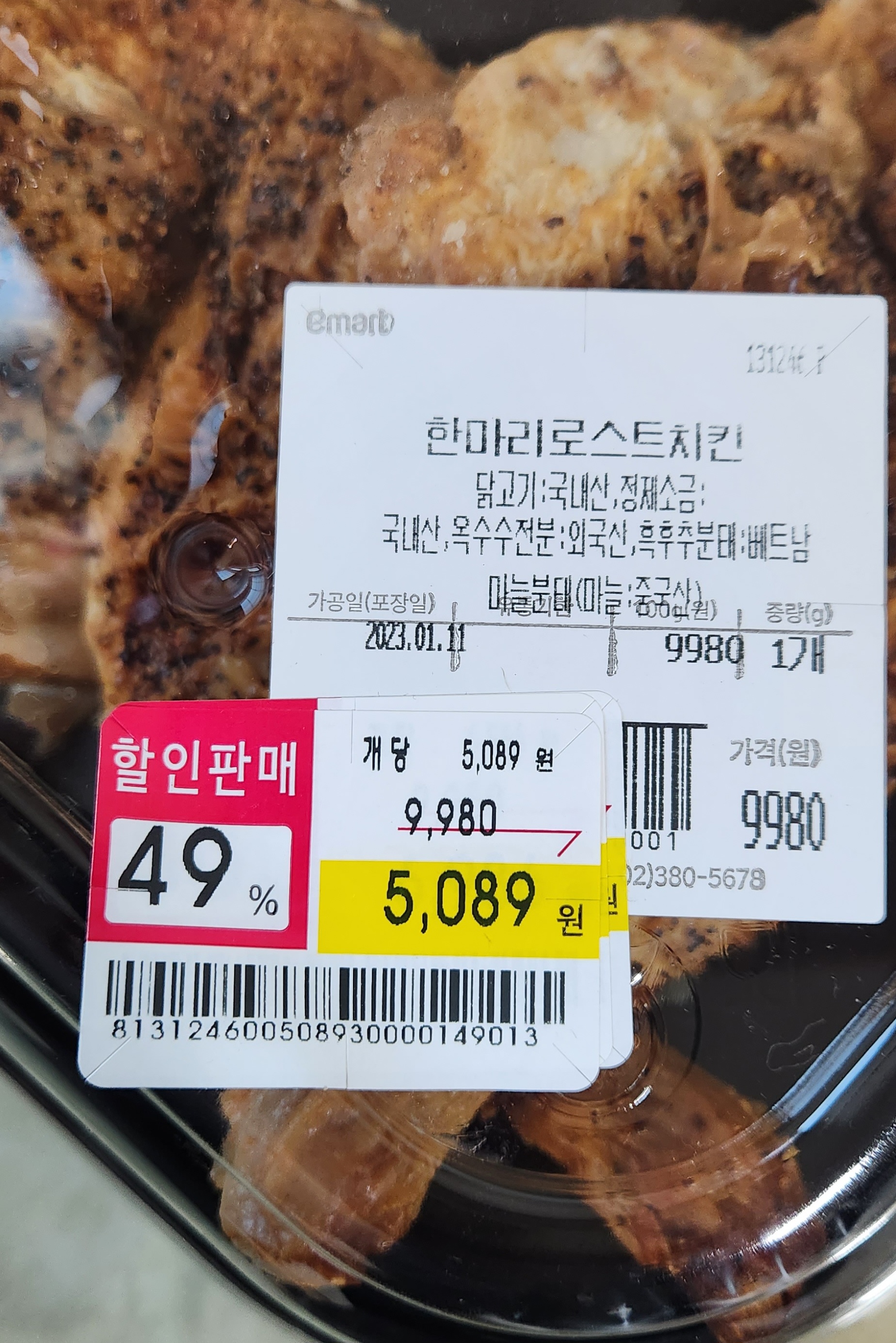 로스트치킨 반마리를 2,500원에 먹었다.