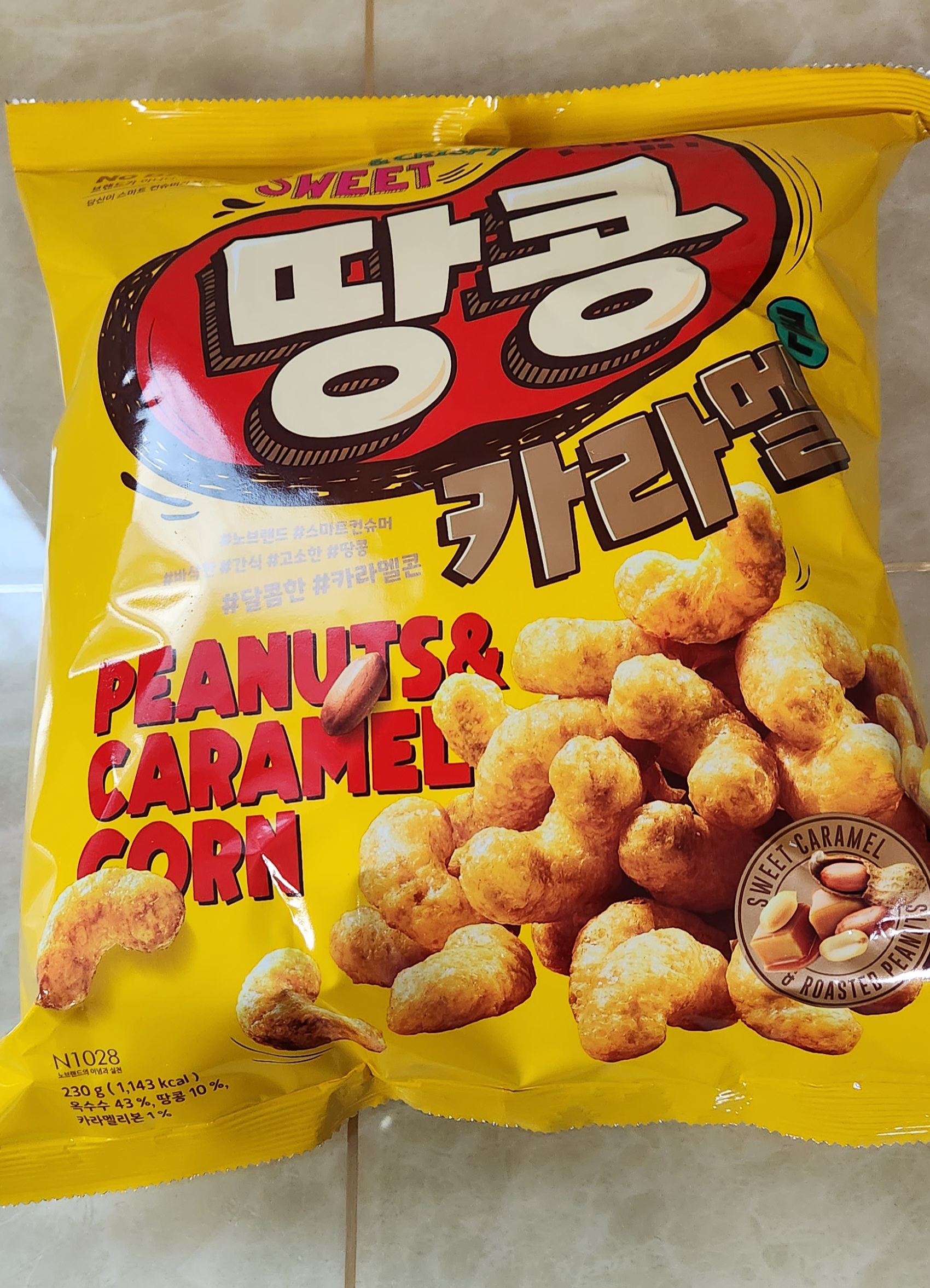노브랜드 코너에서 존재감을 뽐내고 있어서 사서 먹어 본 땅콩카라멜콘 봉지 과자.