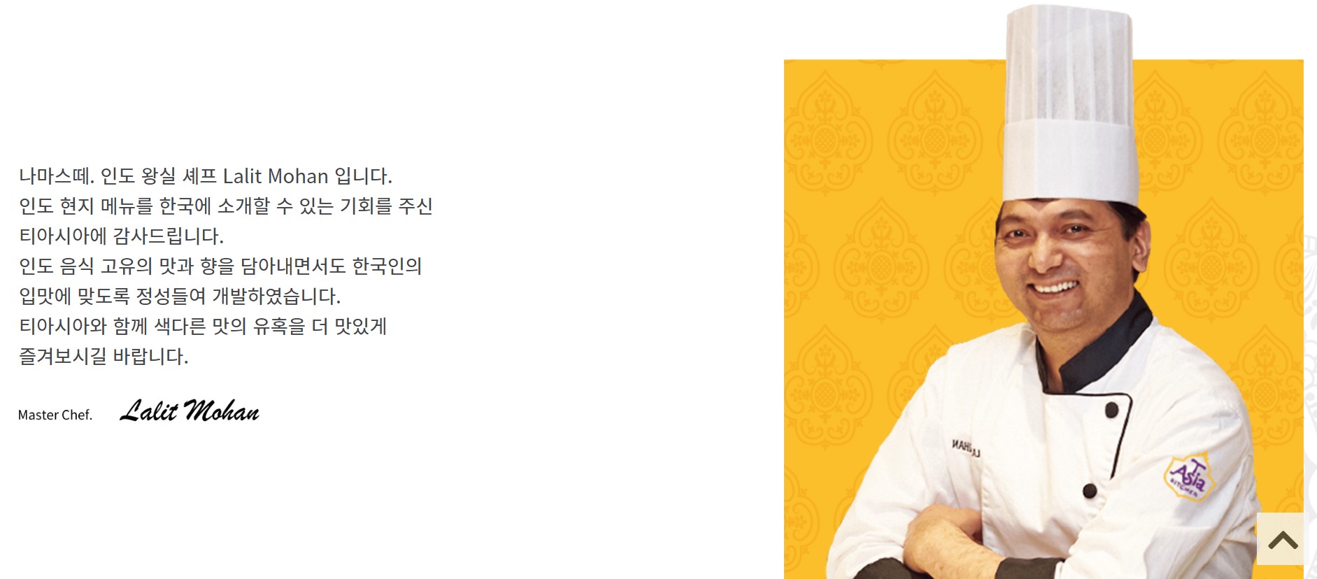 홈페이지에서 본 인도 왕실 전문 셰프가 조리법도 자세히 설명해 준다.