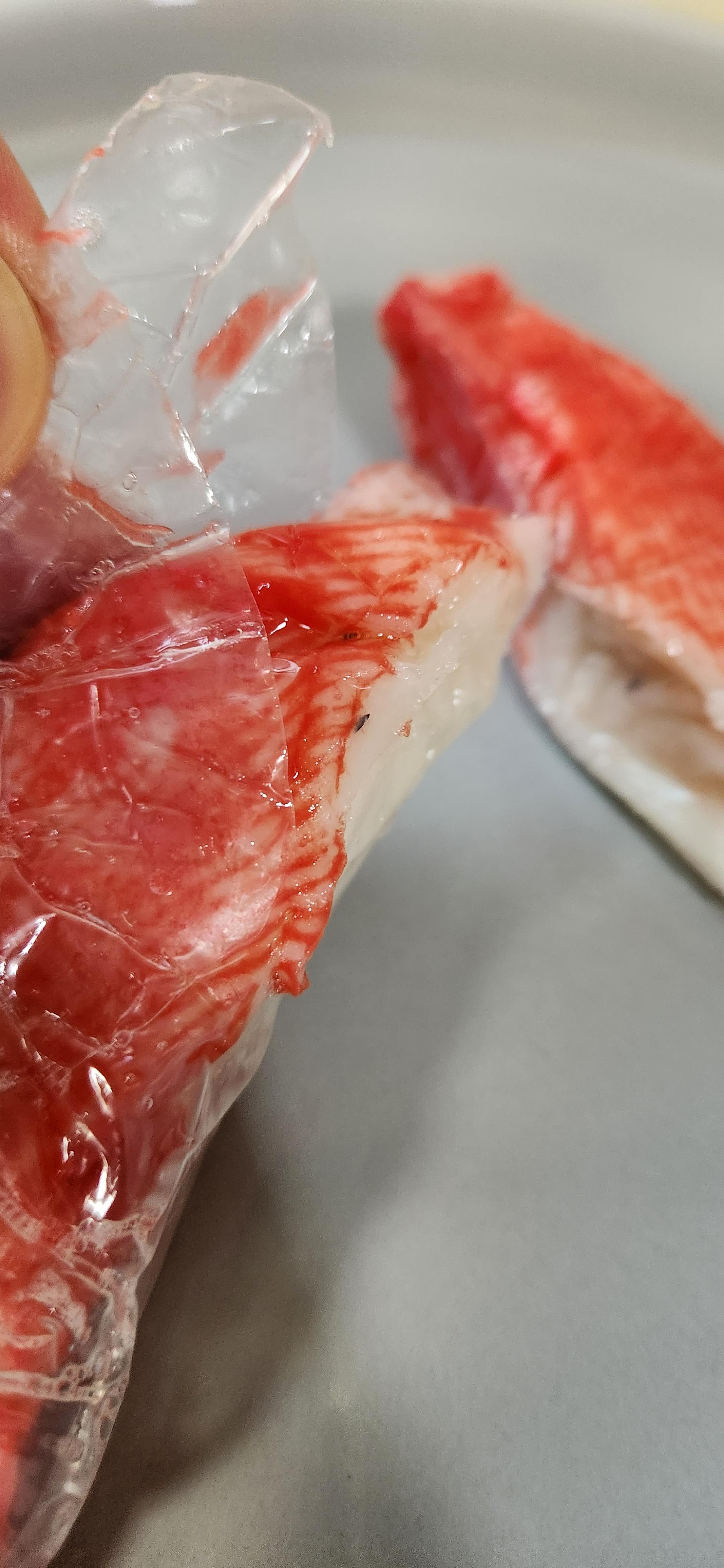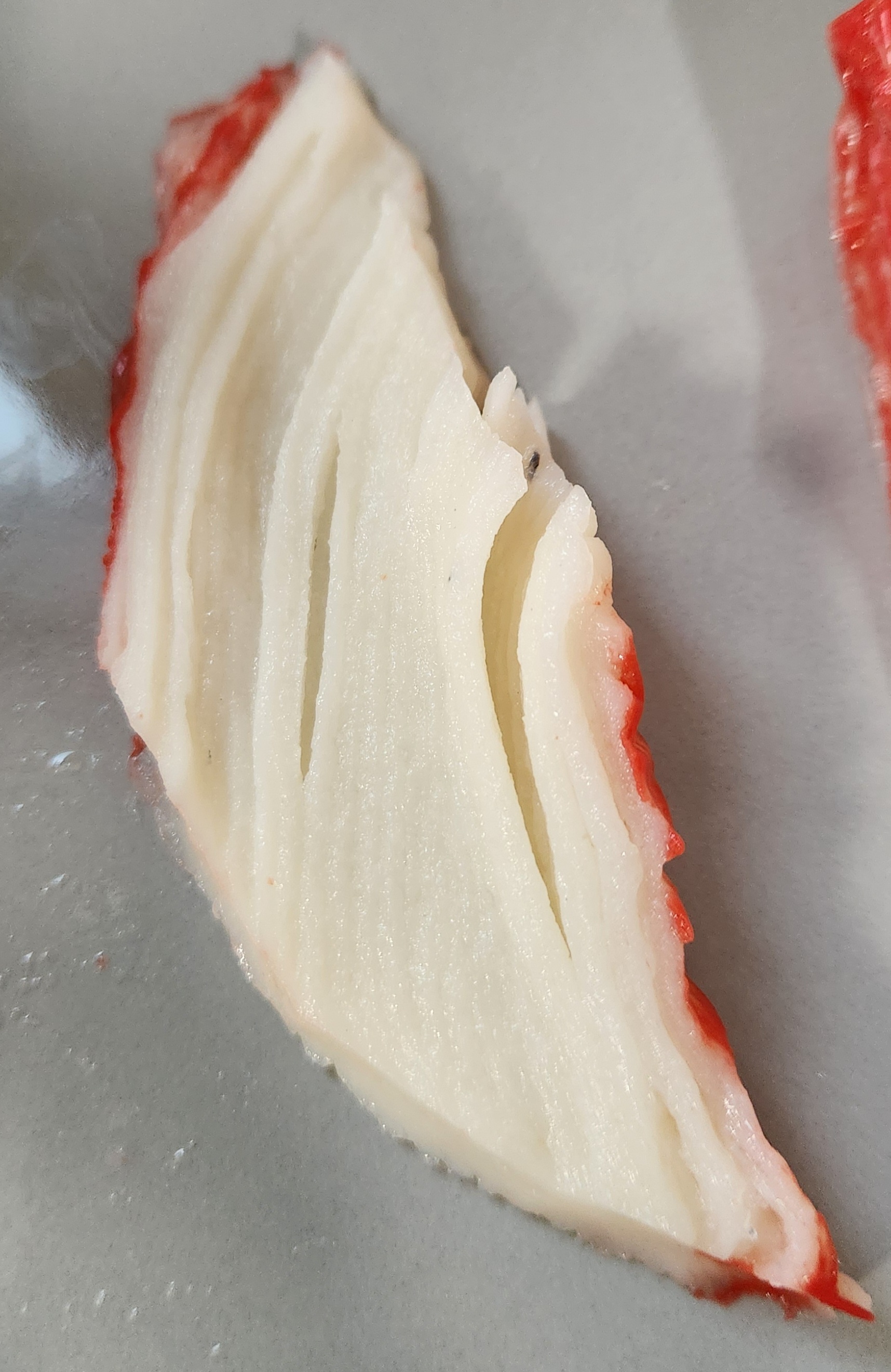 겉 포장을 뜯으니 이렇게 큰 두덩이(?)의 게맛살이 나온다.