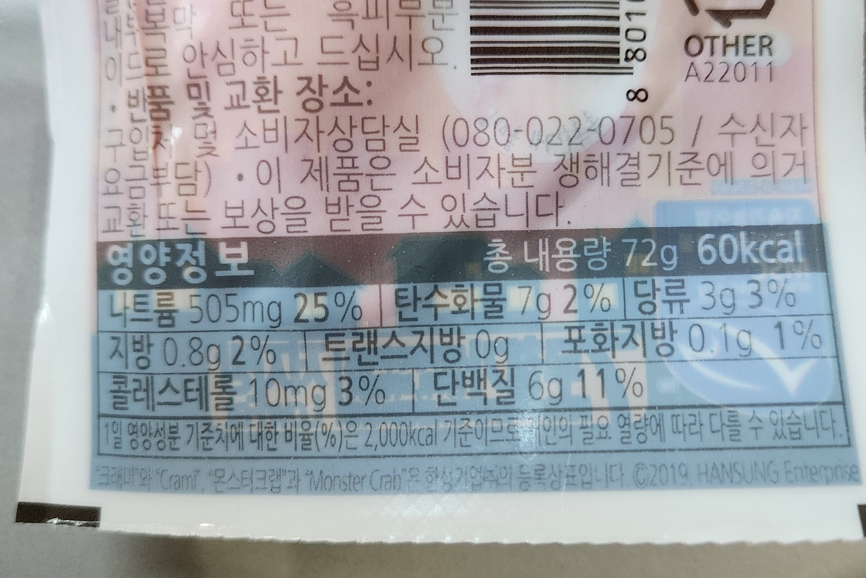 한성에서 나온 몬스터크랩이라는 게맛살이 맛있다고 소문이 나서 인터넷에서 저렴하게 판매할 때 구입해 봤다.