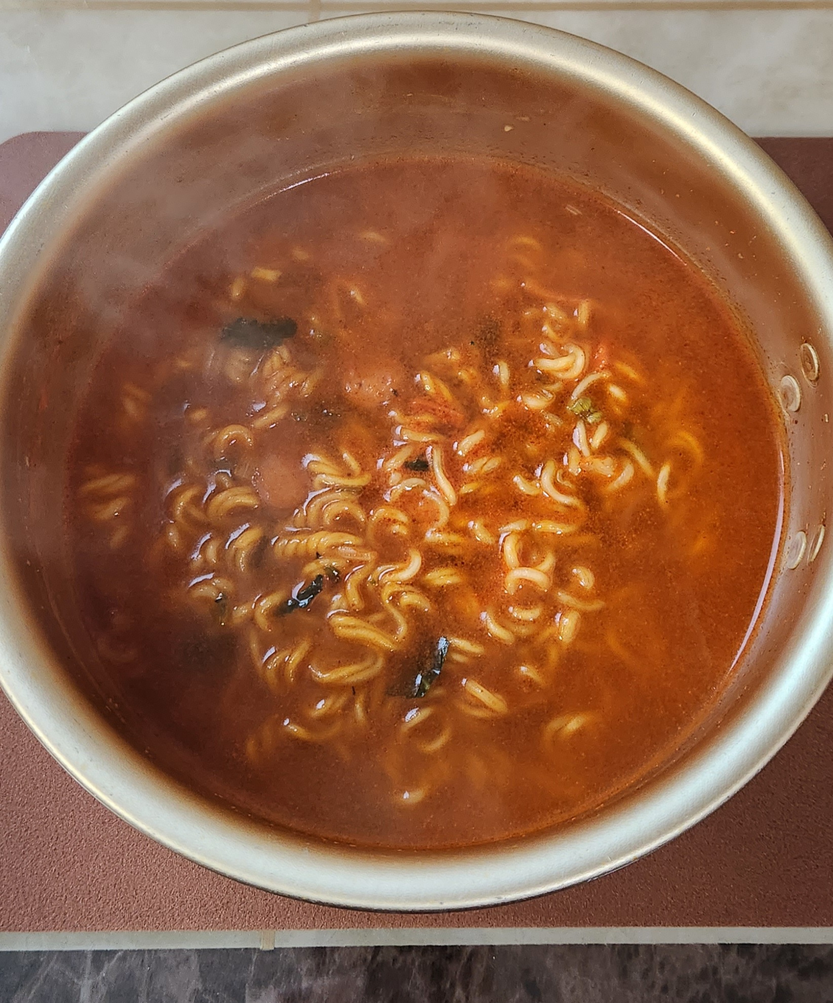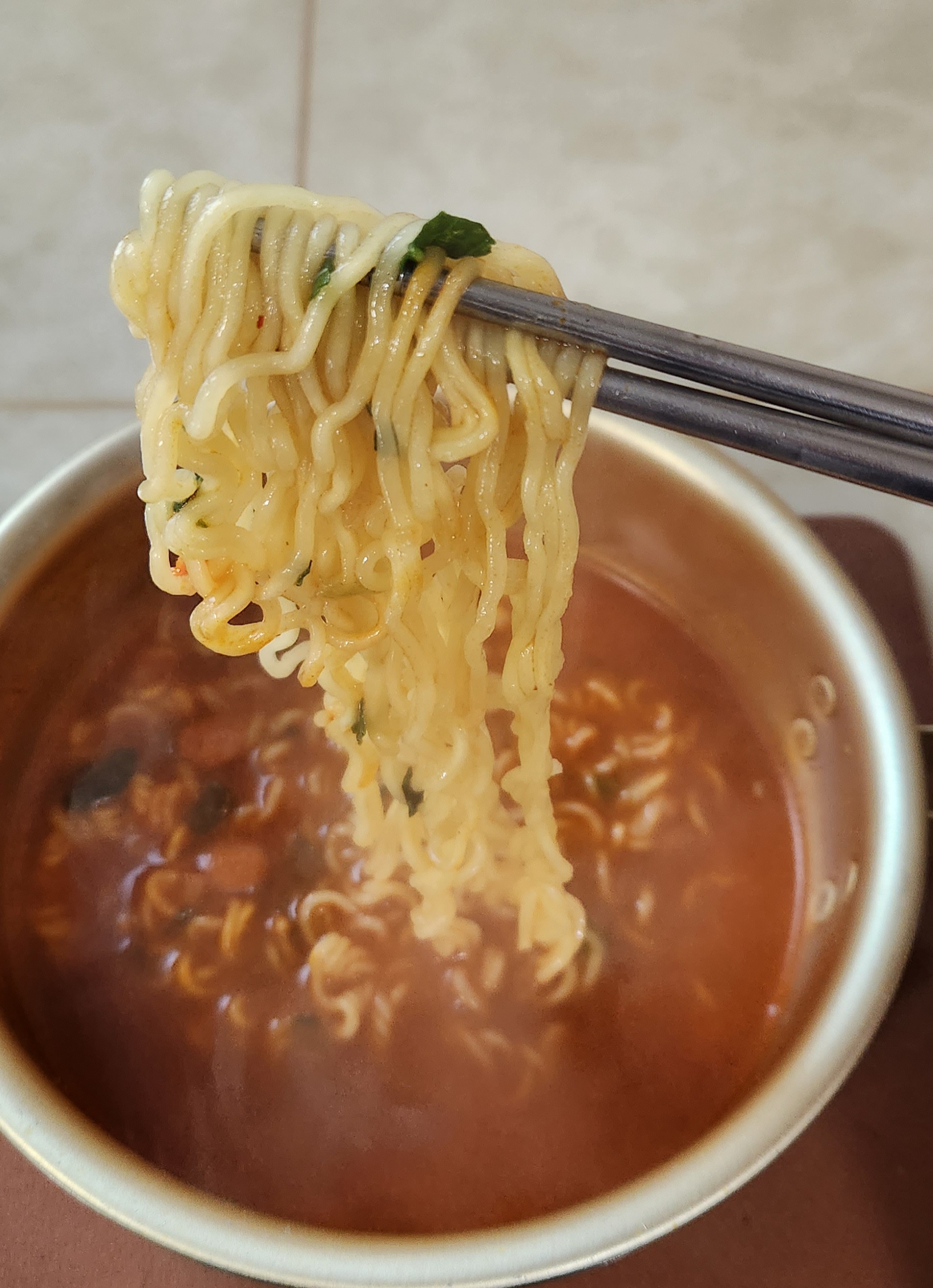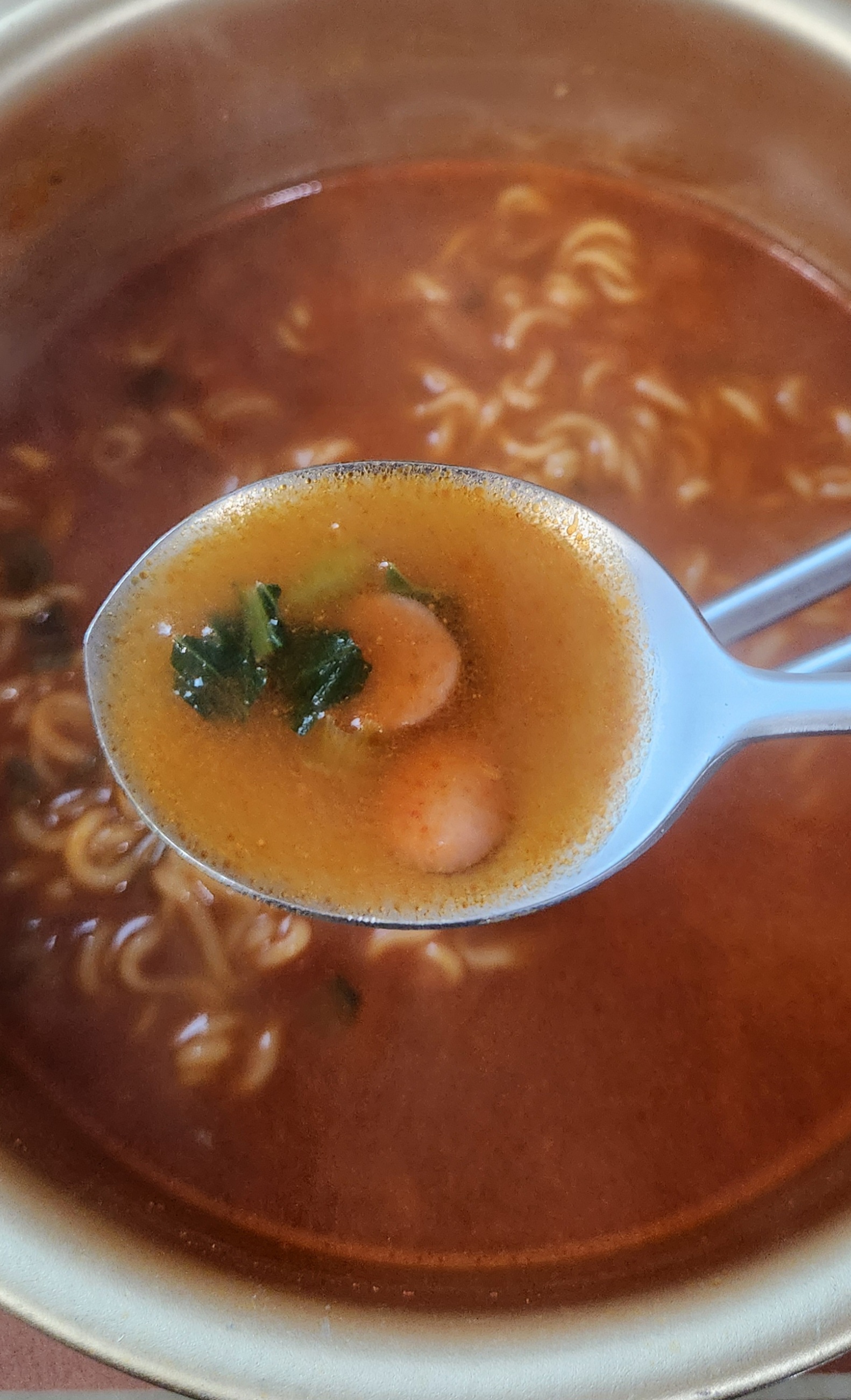 정말 오랜만에 삼양라면을 먹어서 그런지 삼양라면 특유의 햄 향이 반가웠다.