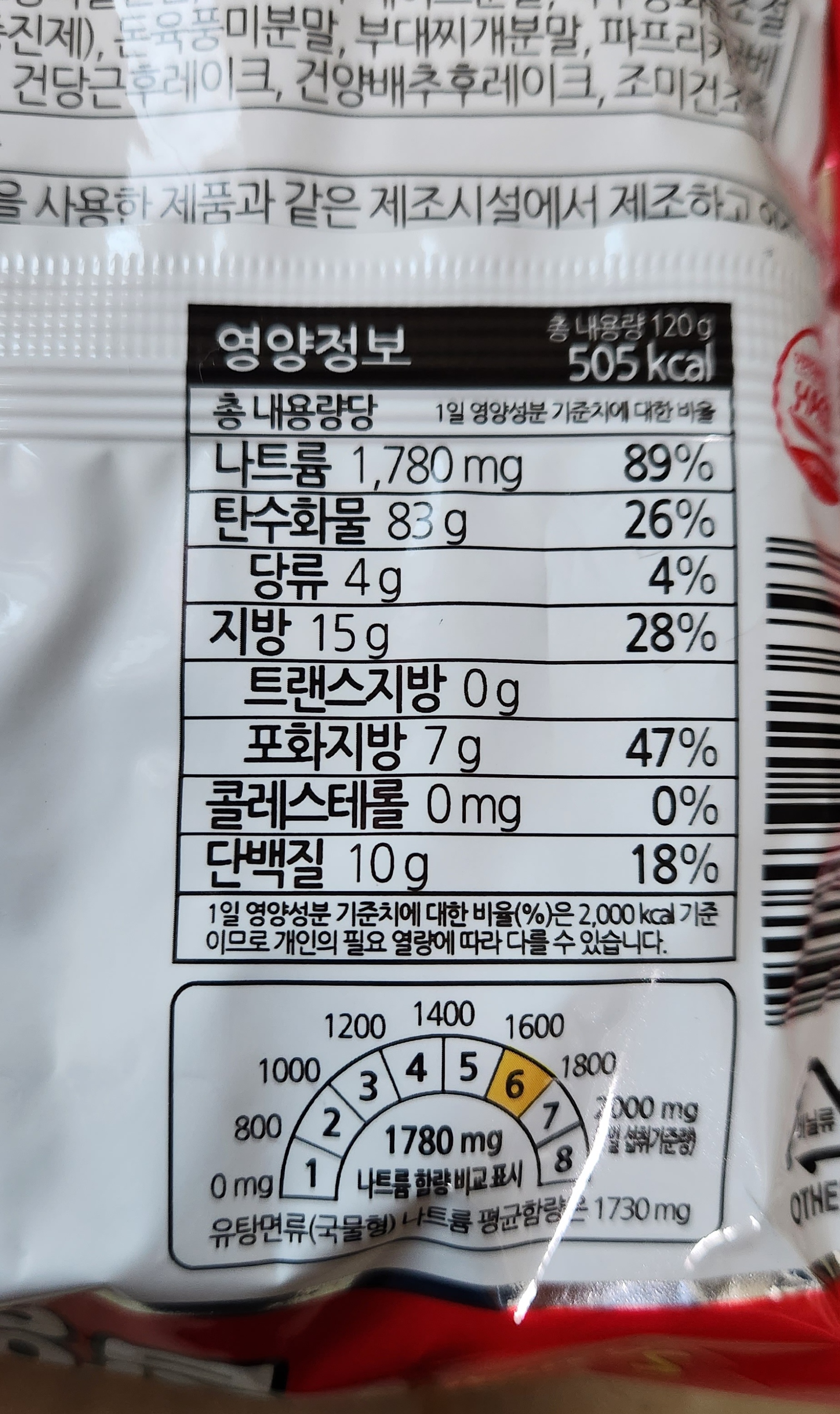 삼양라면 매운맛의 칼로리는 한 봉지 당 505 kcal.
