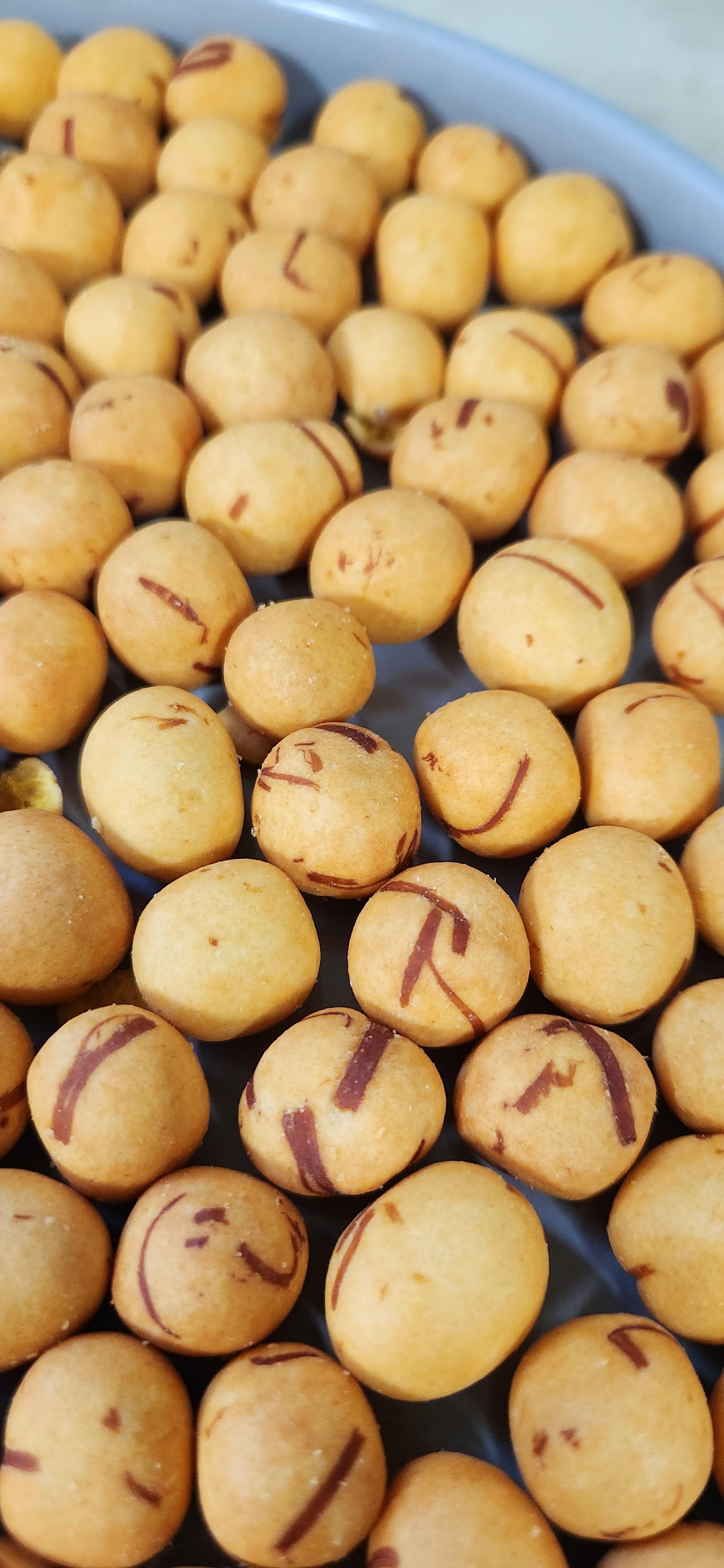 튀기지 않고 두 번 구웠다고 하던데 그래서 그런지 과자 표면에 반짝거리는 게 없다.