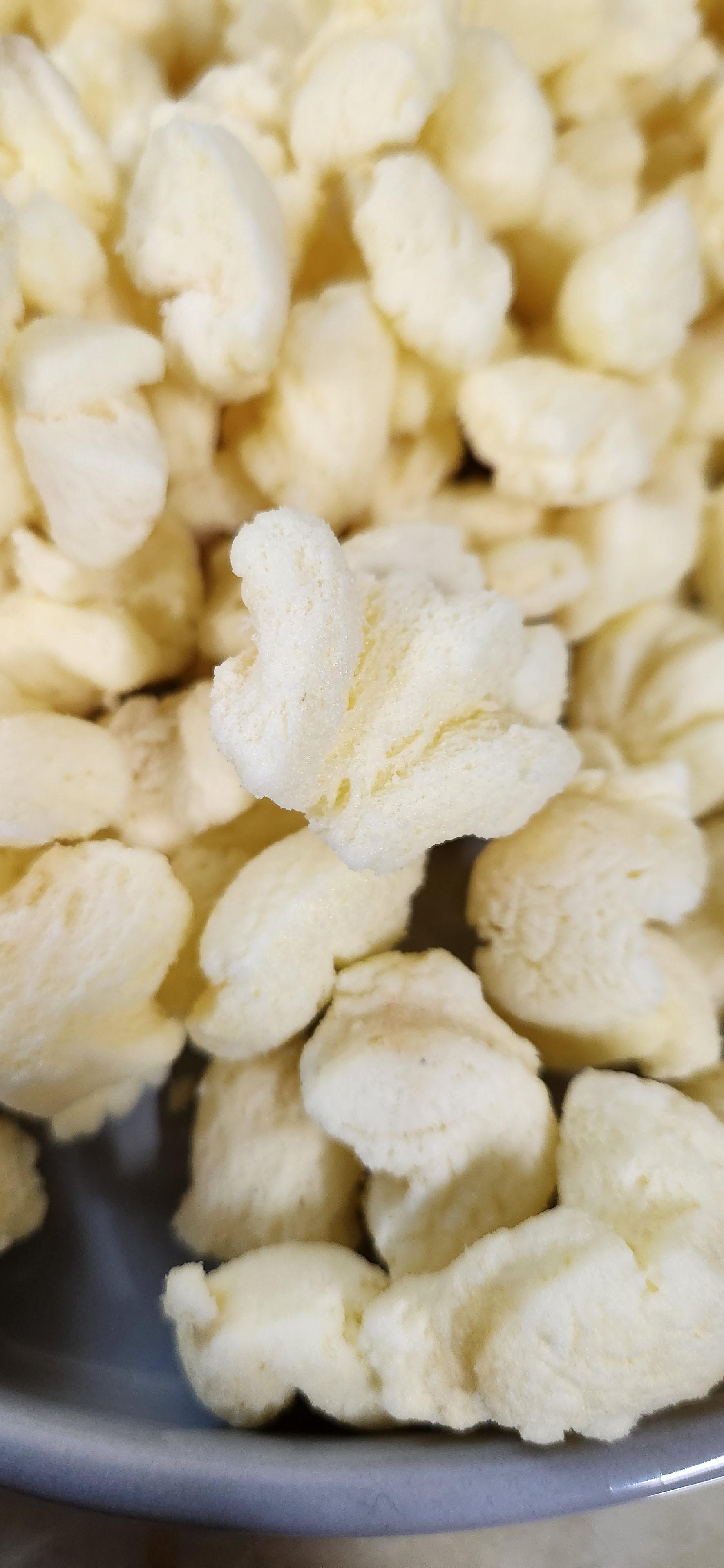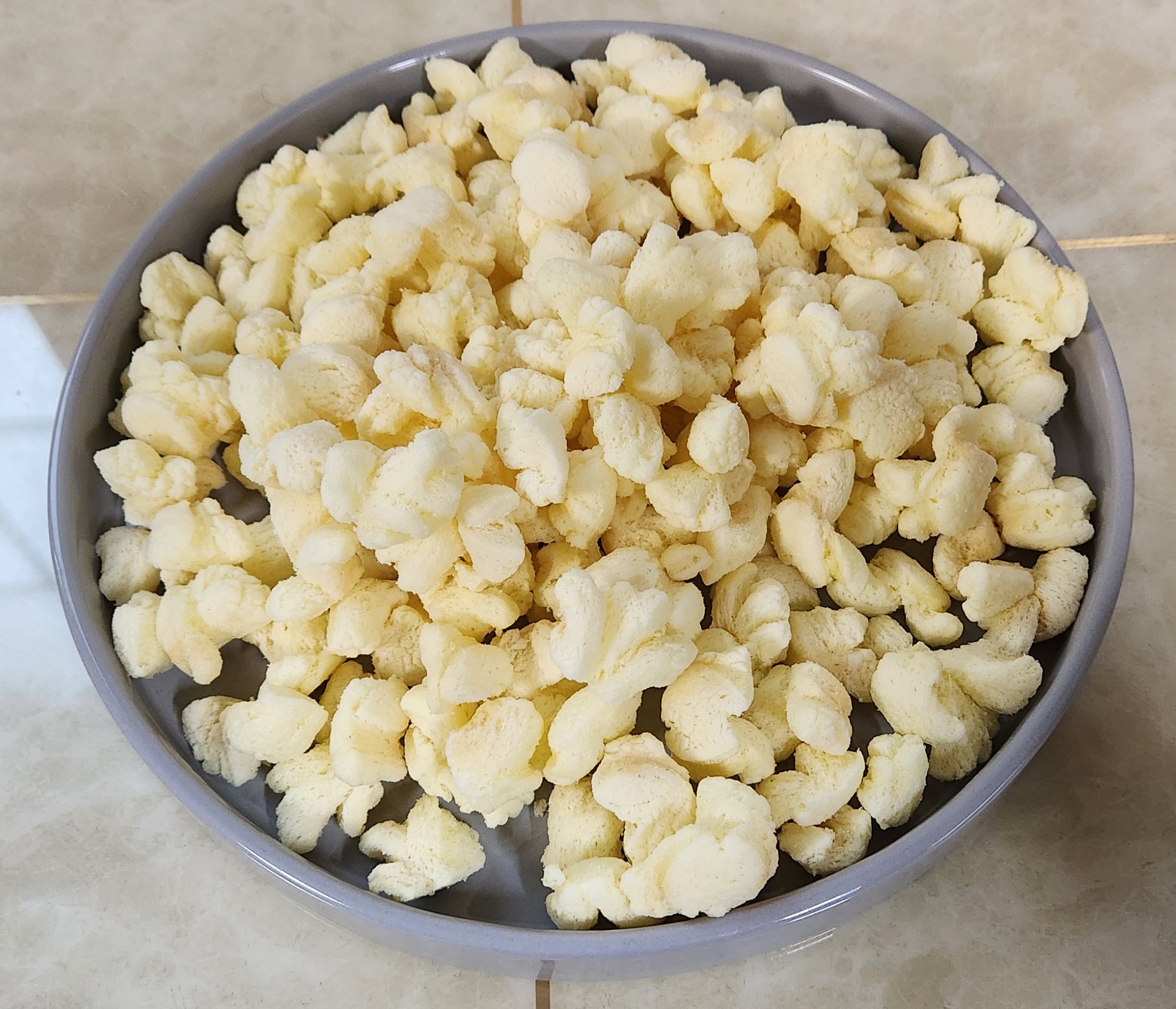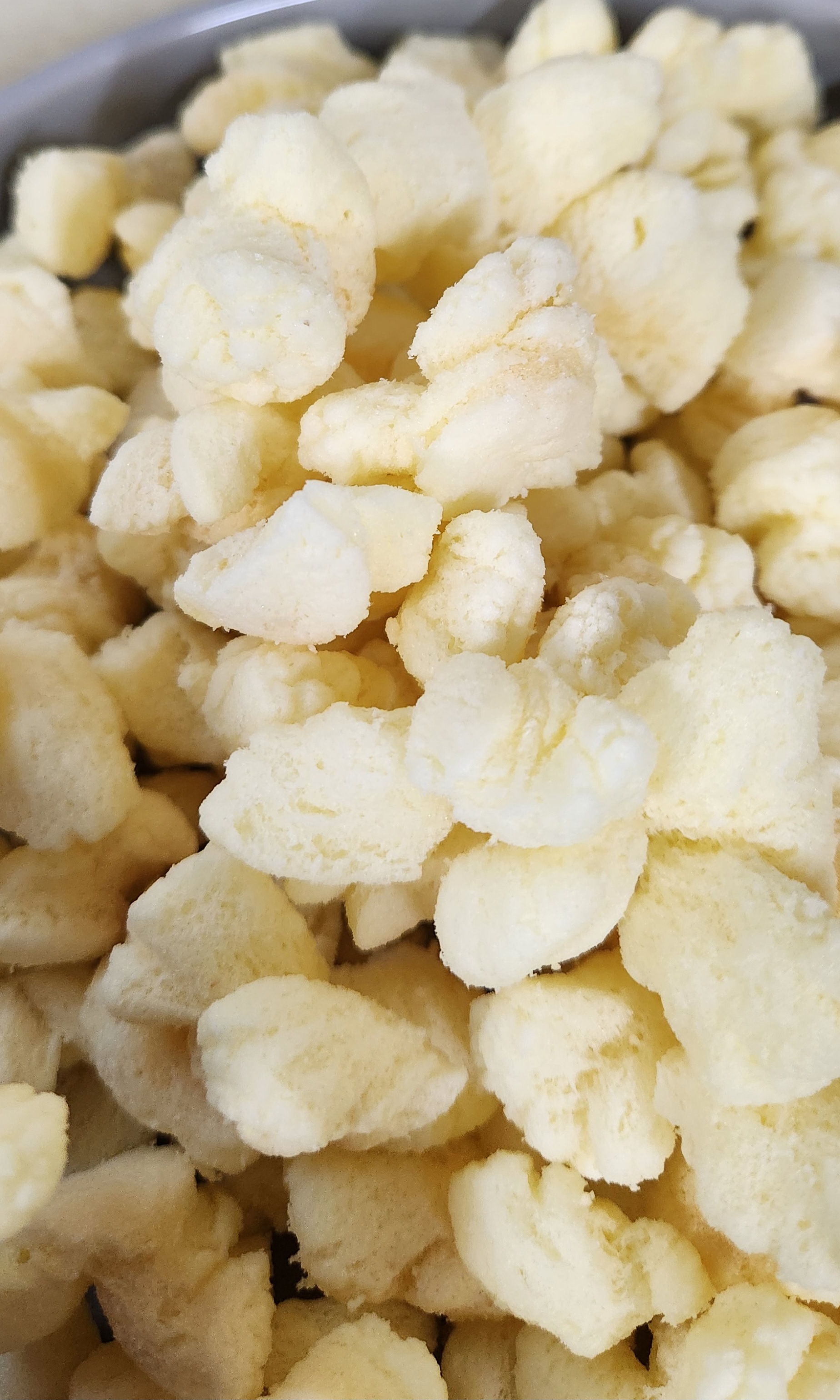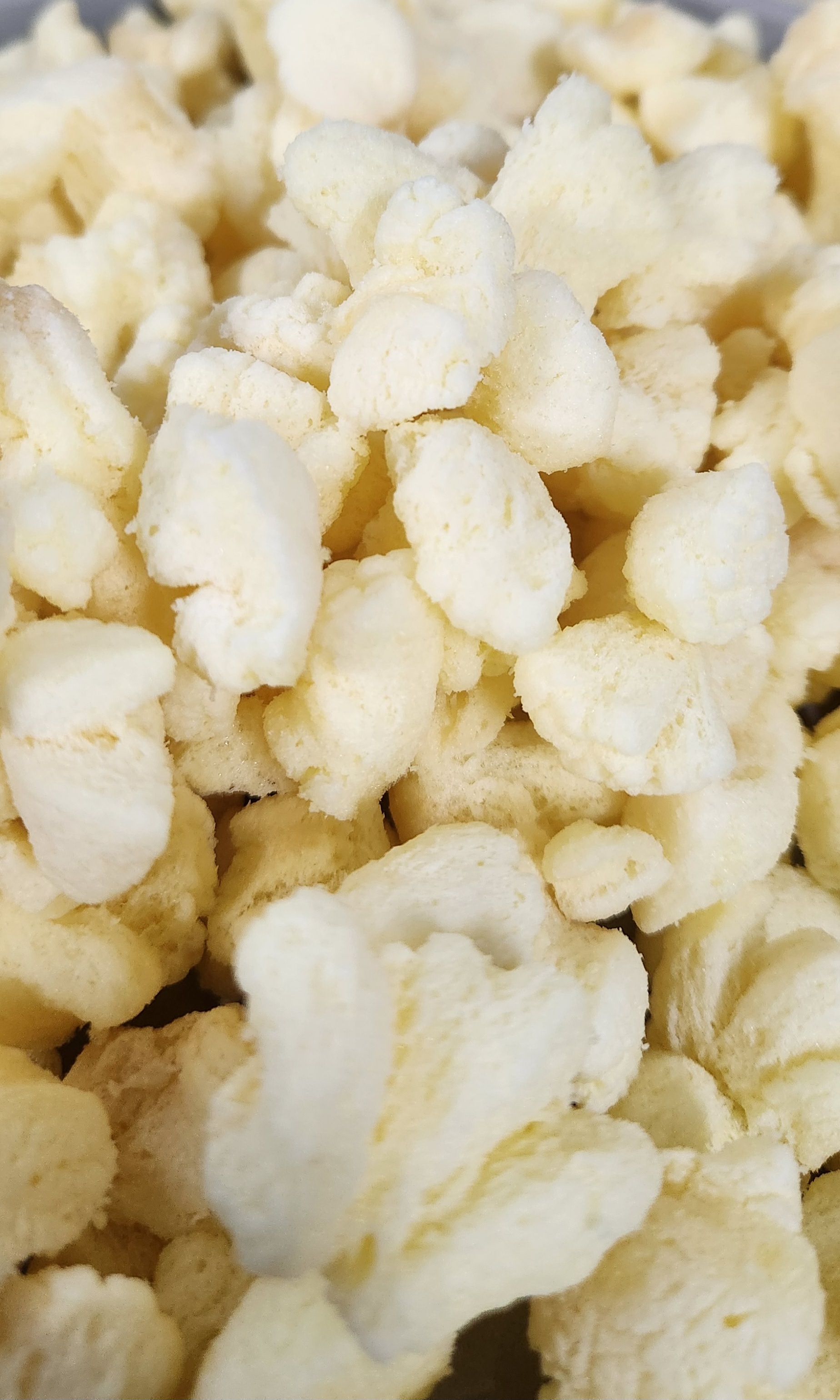 옥수수가루 과자 베이스에 고르곤졸라치즈 맛 씨즈닝을 뿌린 모양이다.