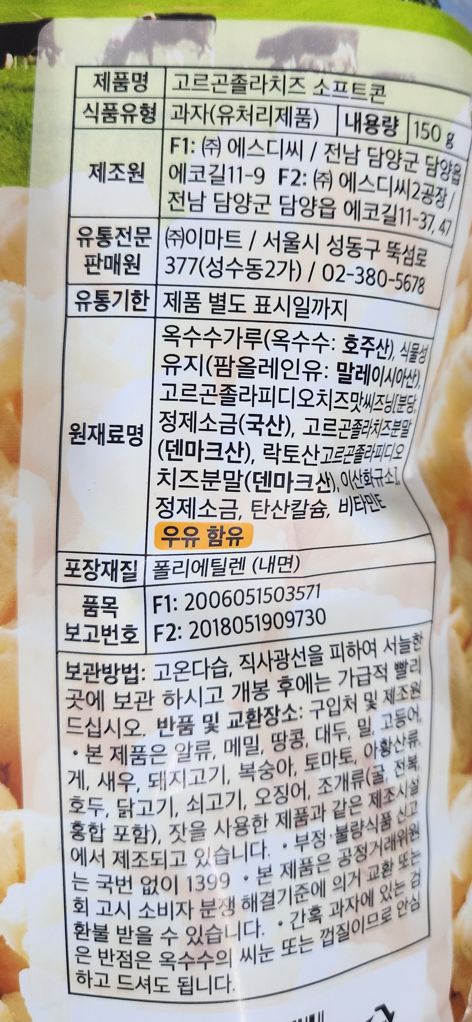 특이하게 우유 함유 표시에 색깔을 입혀놨다.