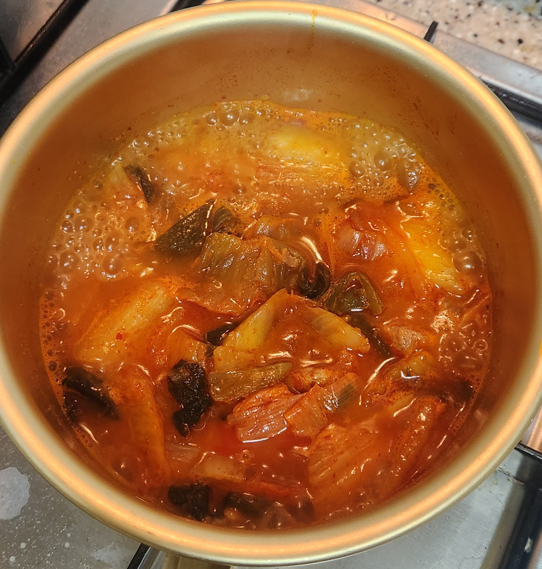 더 졸이면 짜글이가 되겠지만 김치찌개 느낌도 나쁘지 않아 그냥 먹기로 한다.