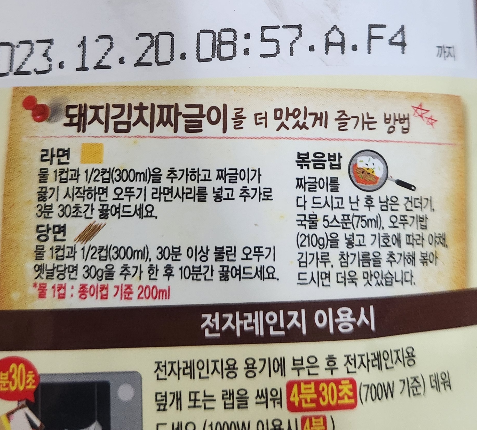 라면, 당면을 넣어 먹거나 볶음밥을 해 먹을 수 있는 레시피도 친절하게 설명해놨다.