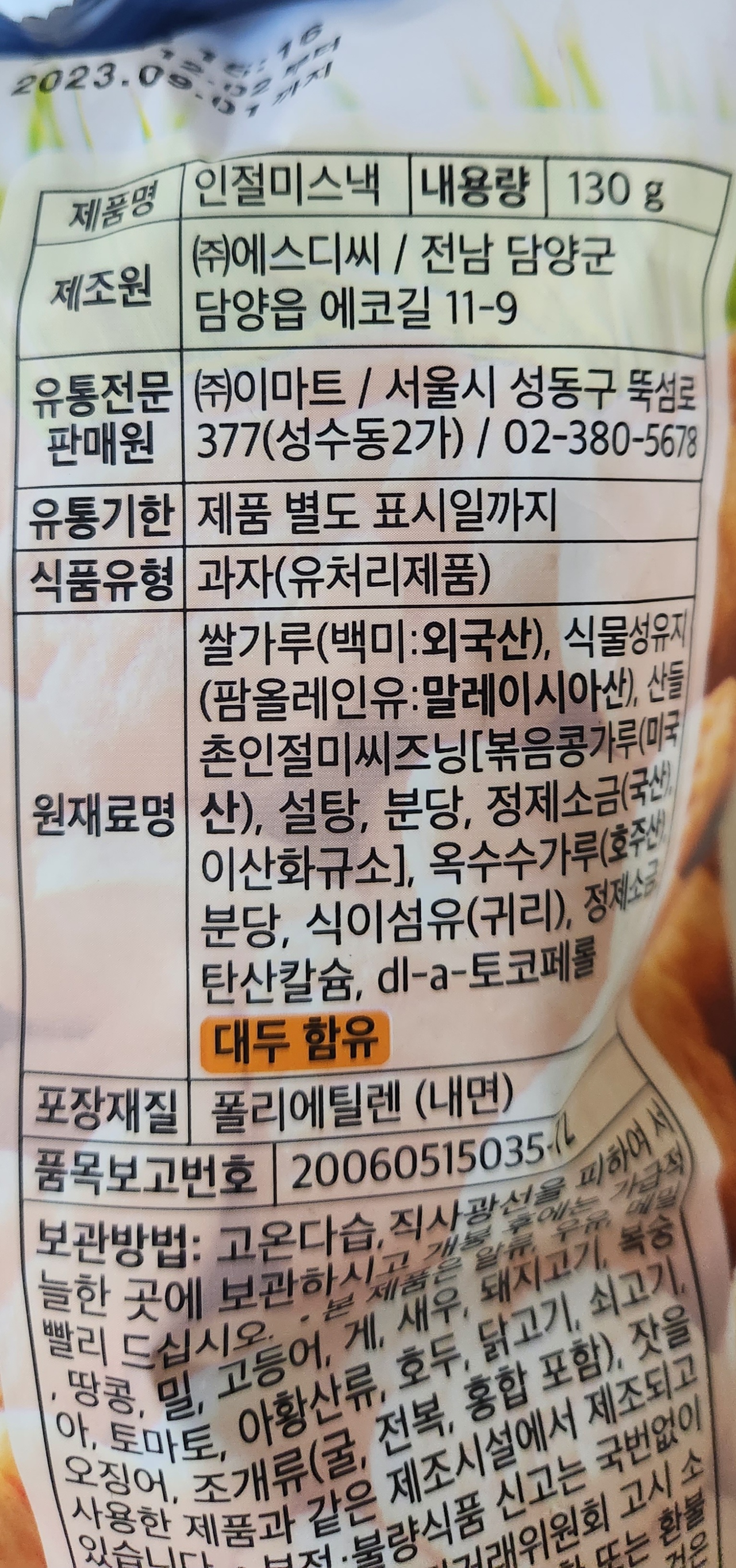 이마트에서 담양 쪽 과자업체와 OEM을 하는 듯.