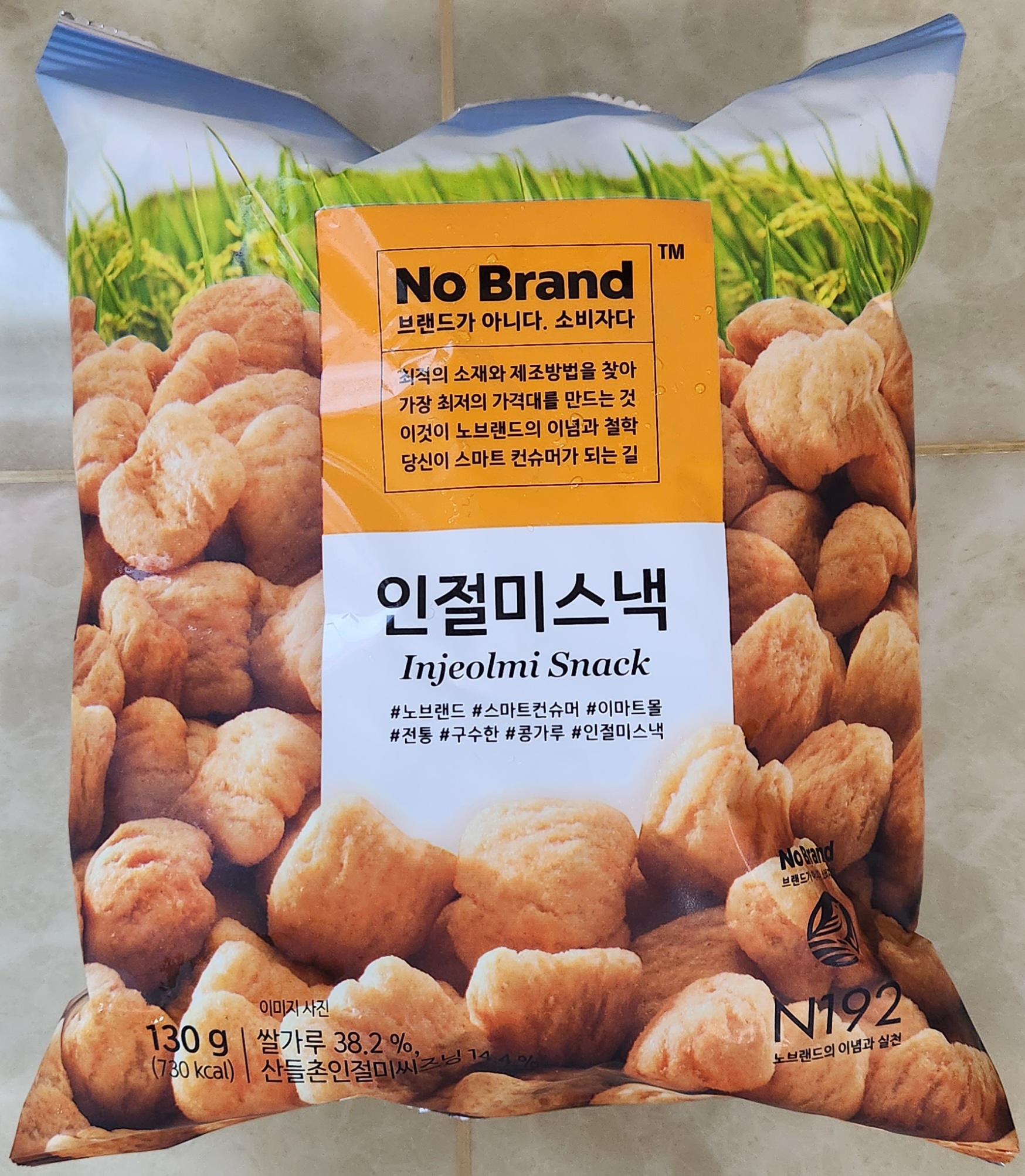 교외 식당의 카운터 옆에 전시되어 있는 경우가 많아서 몇 번 먹어 본 인절미 맛 과자.