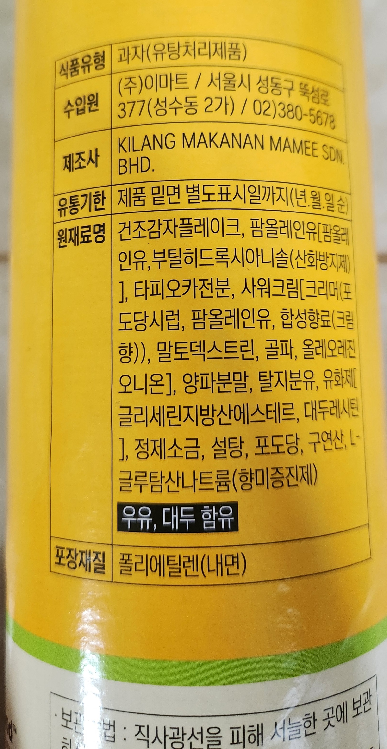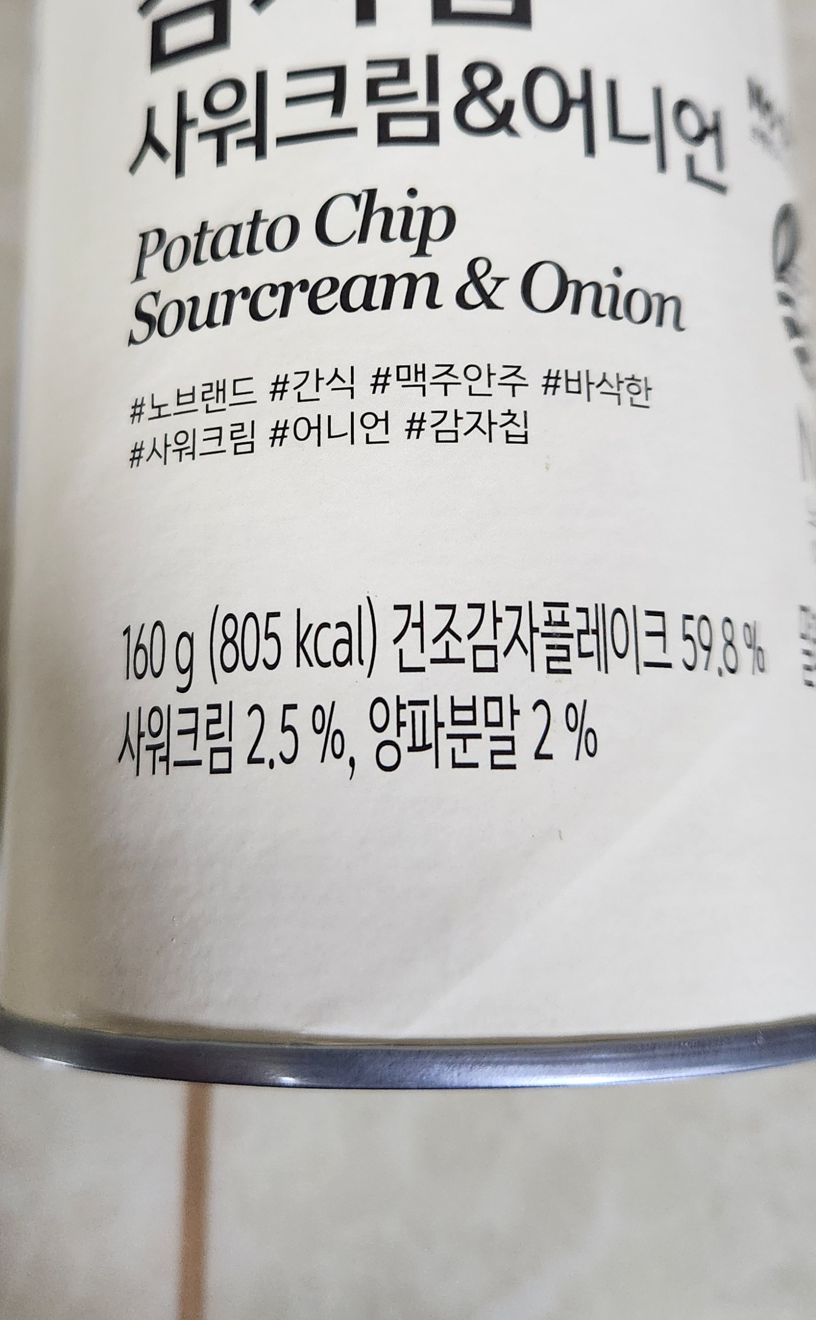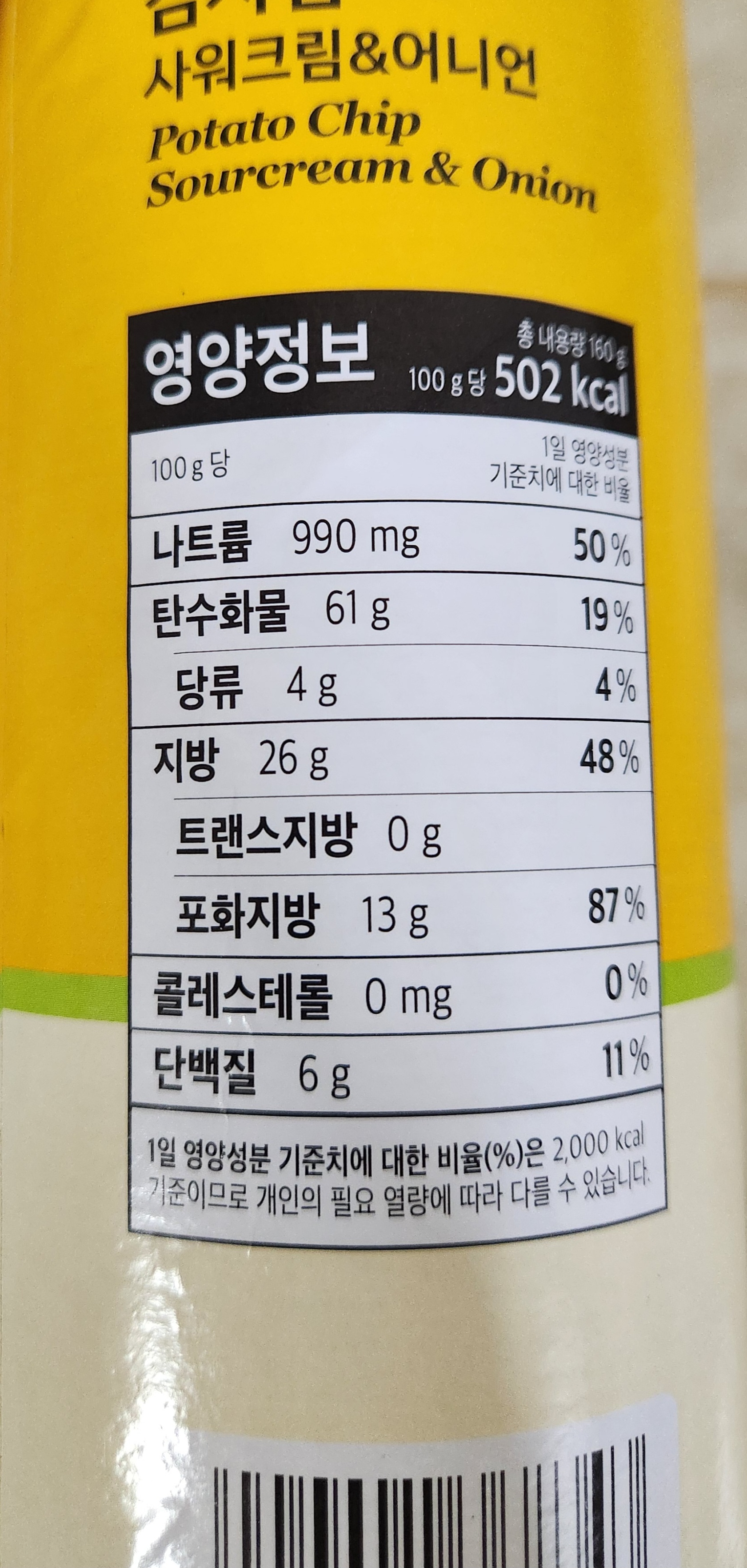 사워크림과 양파분말이 각각 2.5%, 2% 들어가 있다.