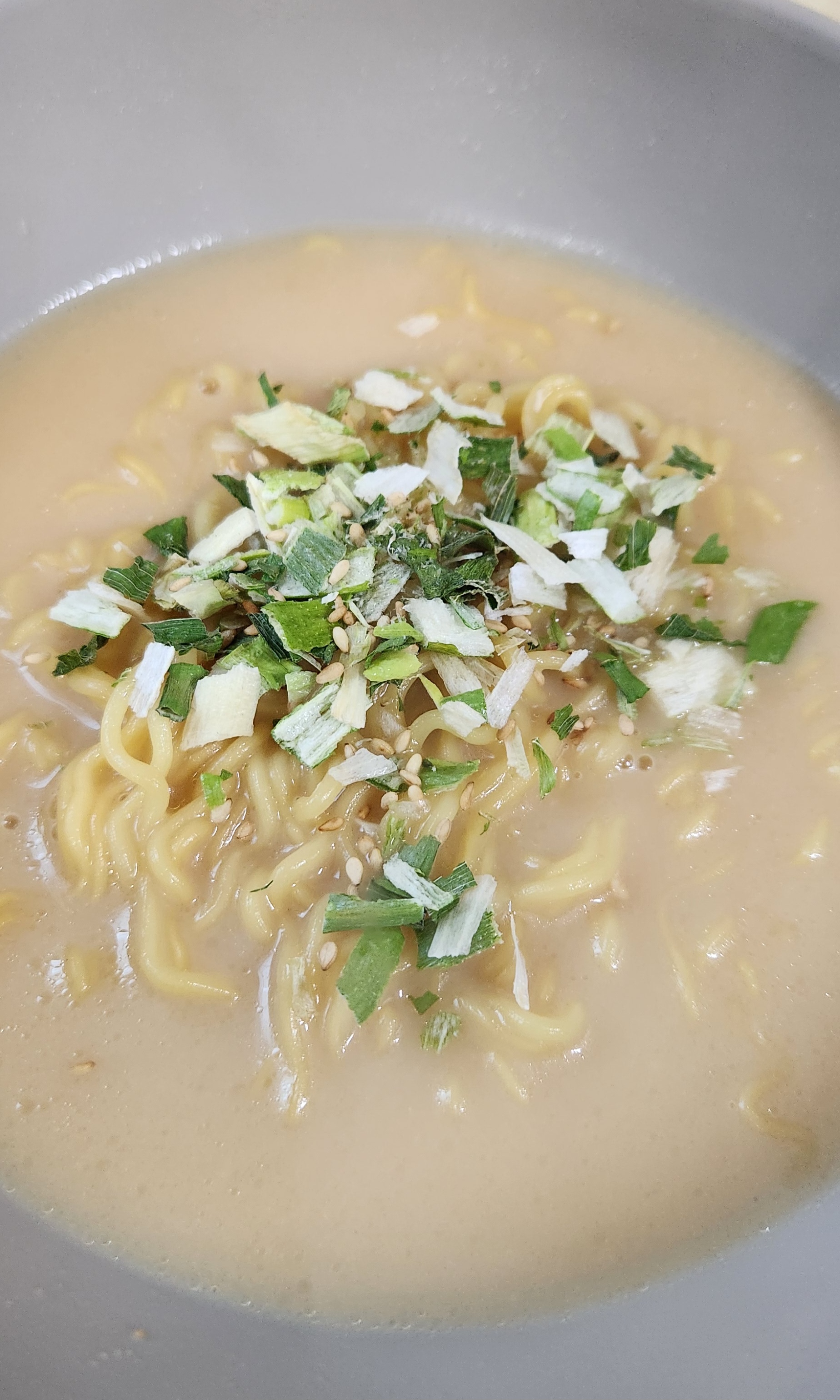 (유튜브에서 많이 본) 라멘을 만드는 과정에서 필수인 면 정리를 해 주고 고명 스프를 예쁘게 뿌려주면 완성!