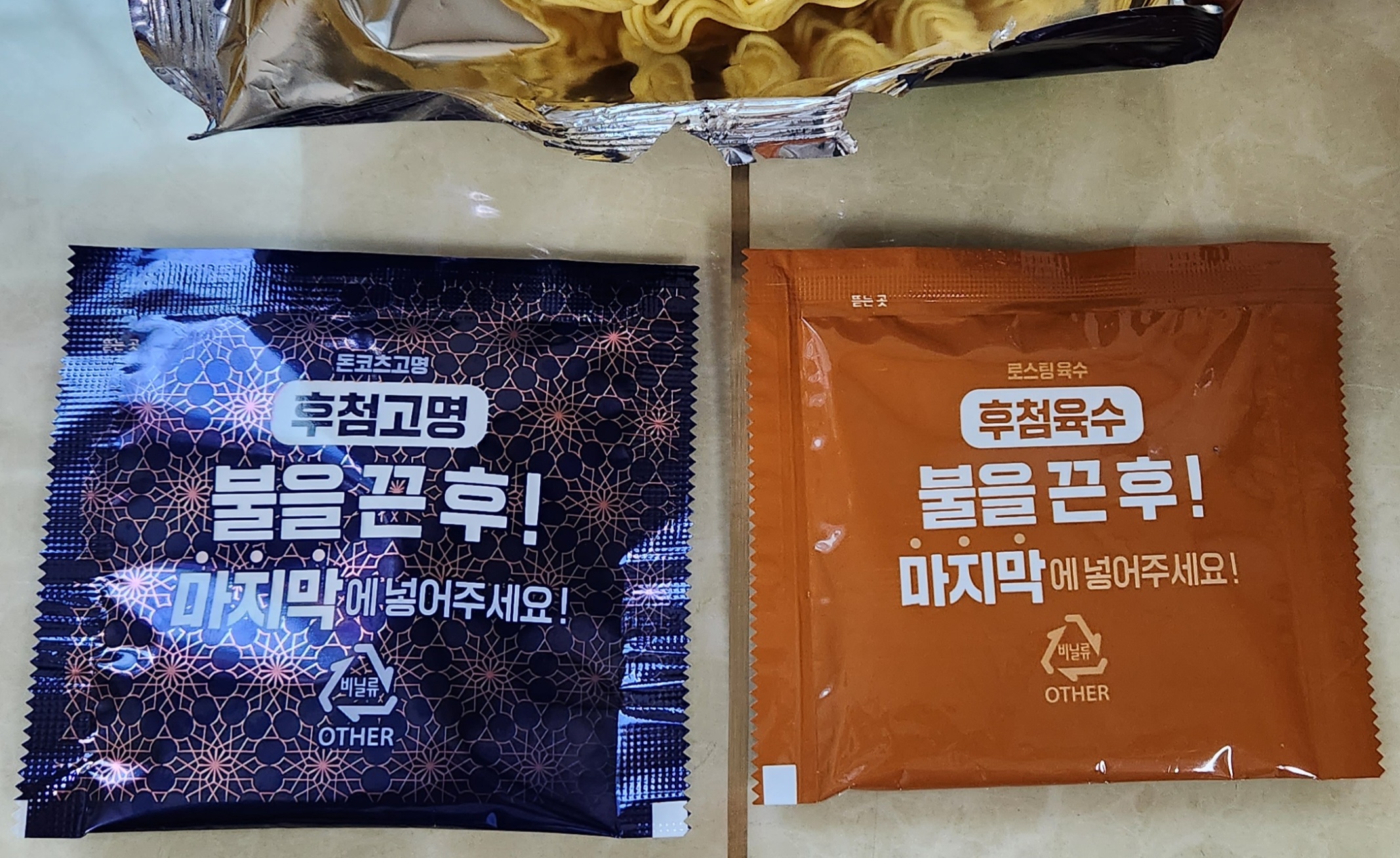 나는 유탕면에서 나오는 기름이 건강에 별로 좋지 않다는 이야기를 어디선가 듣고 난 후부터 스프를 후첨하는 경우에는 조금 귀찮더라도 면을 끓이고 난 면수는 버리고 새로 물을 끓여 라면에 사용한다.