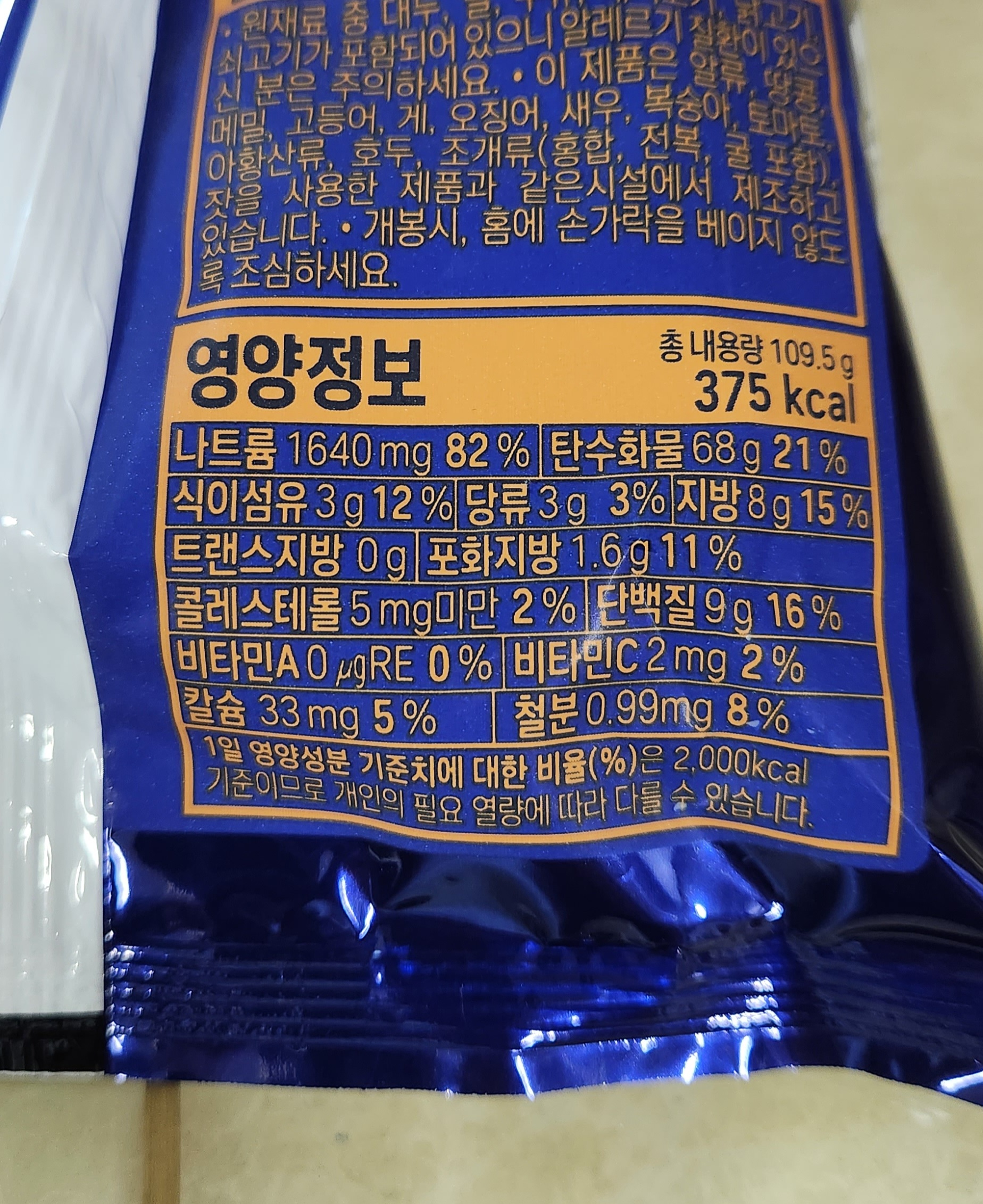 109.5g에 375kcal.