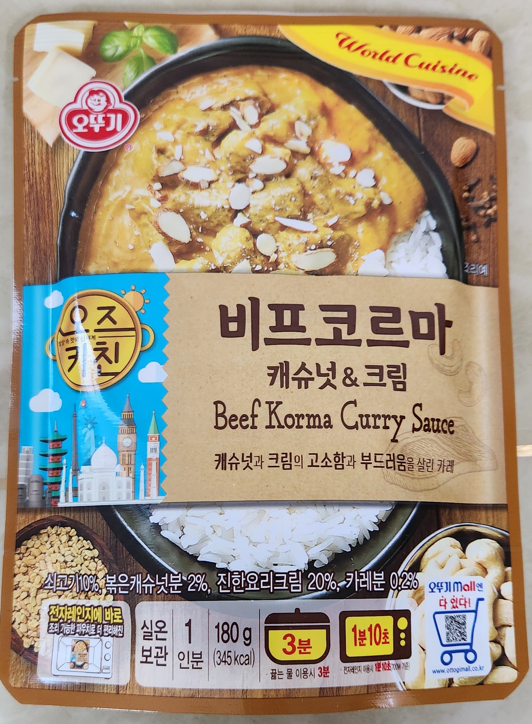 오뚜기 세계 카레 4종 중 안 먹어 본 비프코르마 캐슈넛&크림을 구매했다.