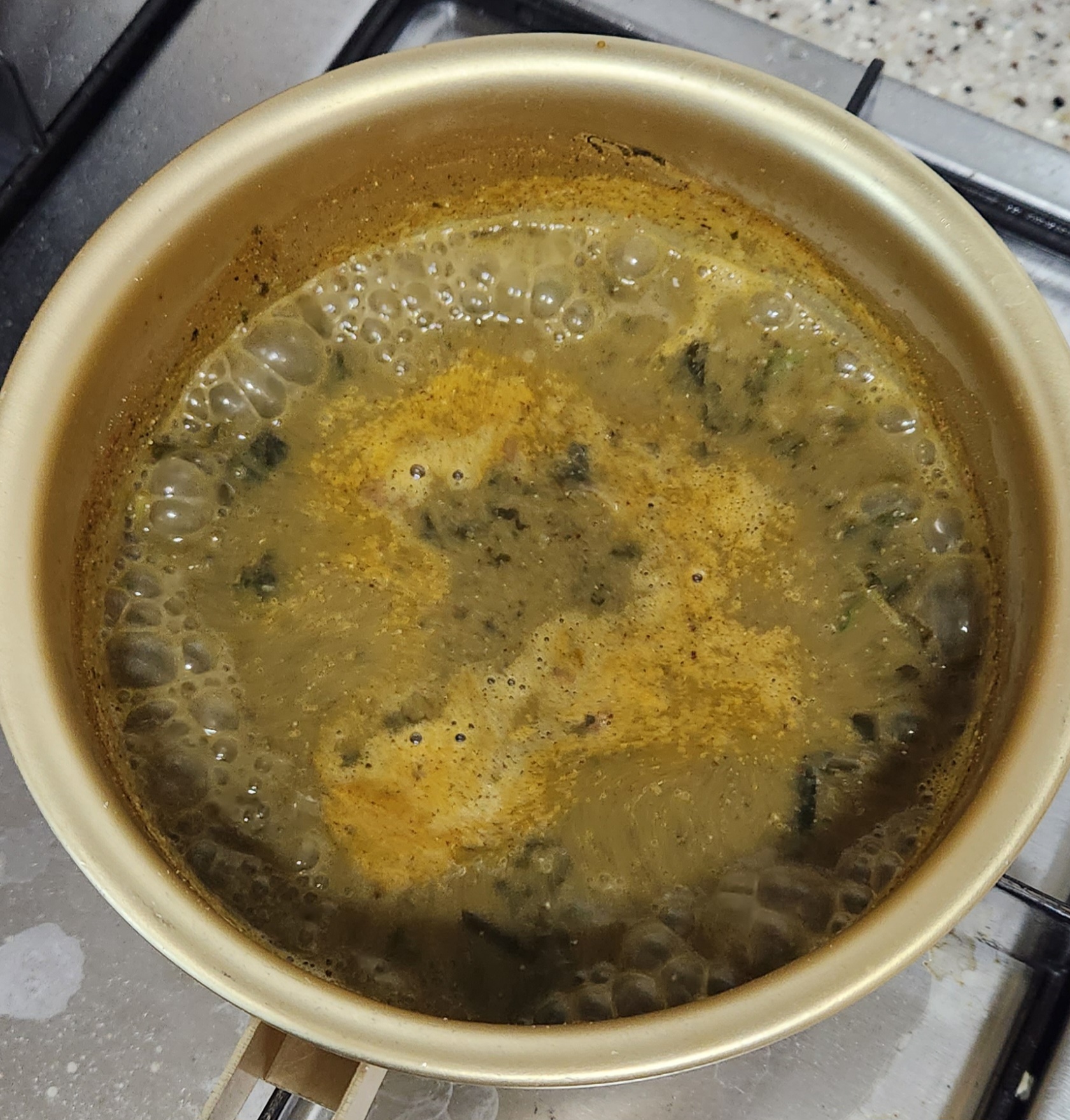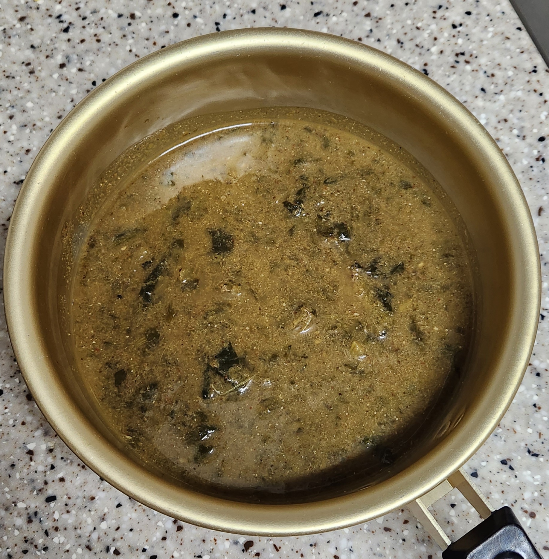 해동된 추어탕을 냄비에 담은 모습.
