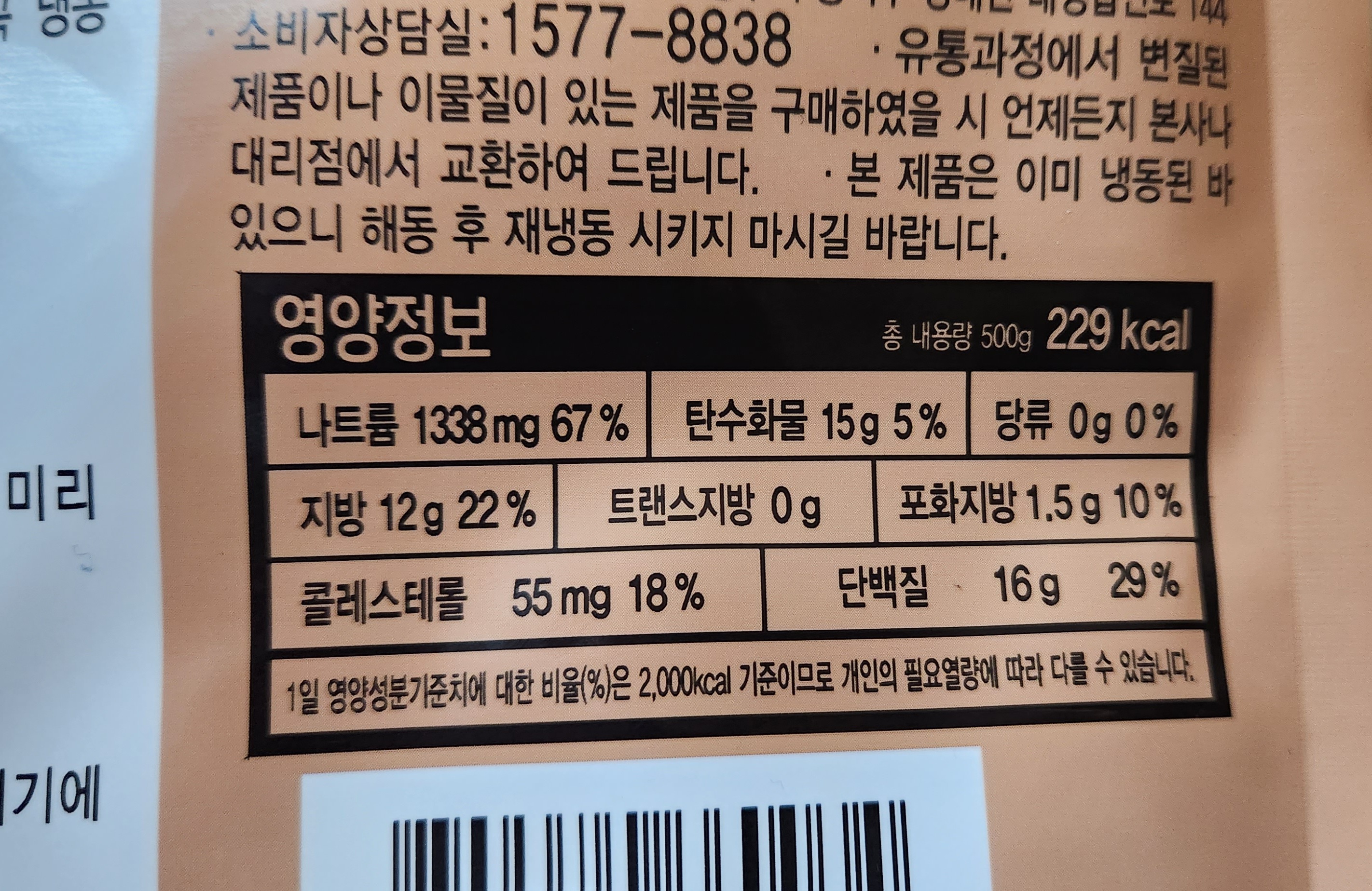 500g에 229kcal.