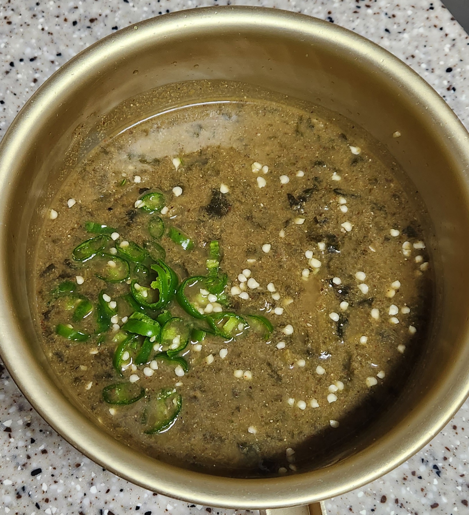 식당에서 추어탕을 먹는 것처럼 냉장고에 있던 청양고추를 썰어서 넣었다.