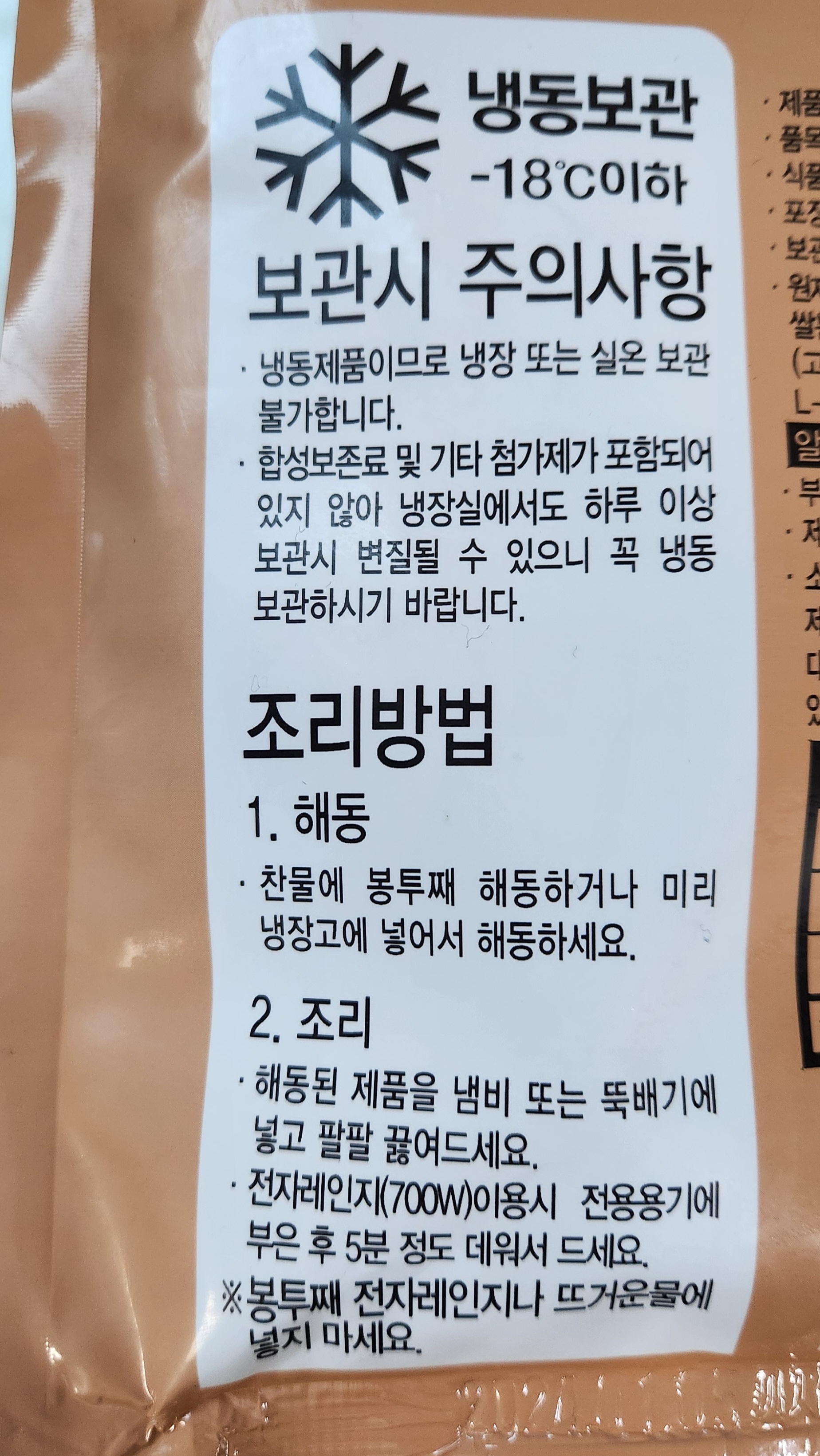 냉동 보관이니 해동하는 방법도 적혀있다.