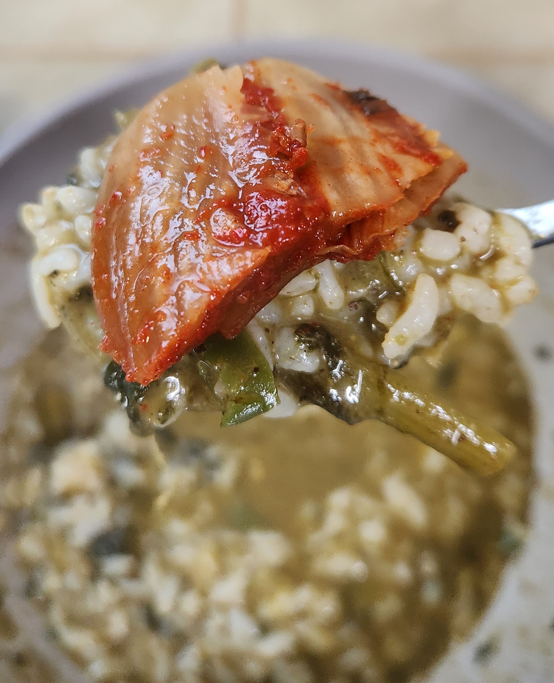 잘 익은 김치와 궁합이 최고.