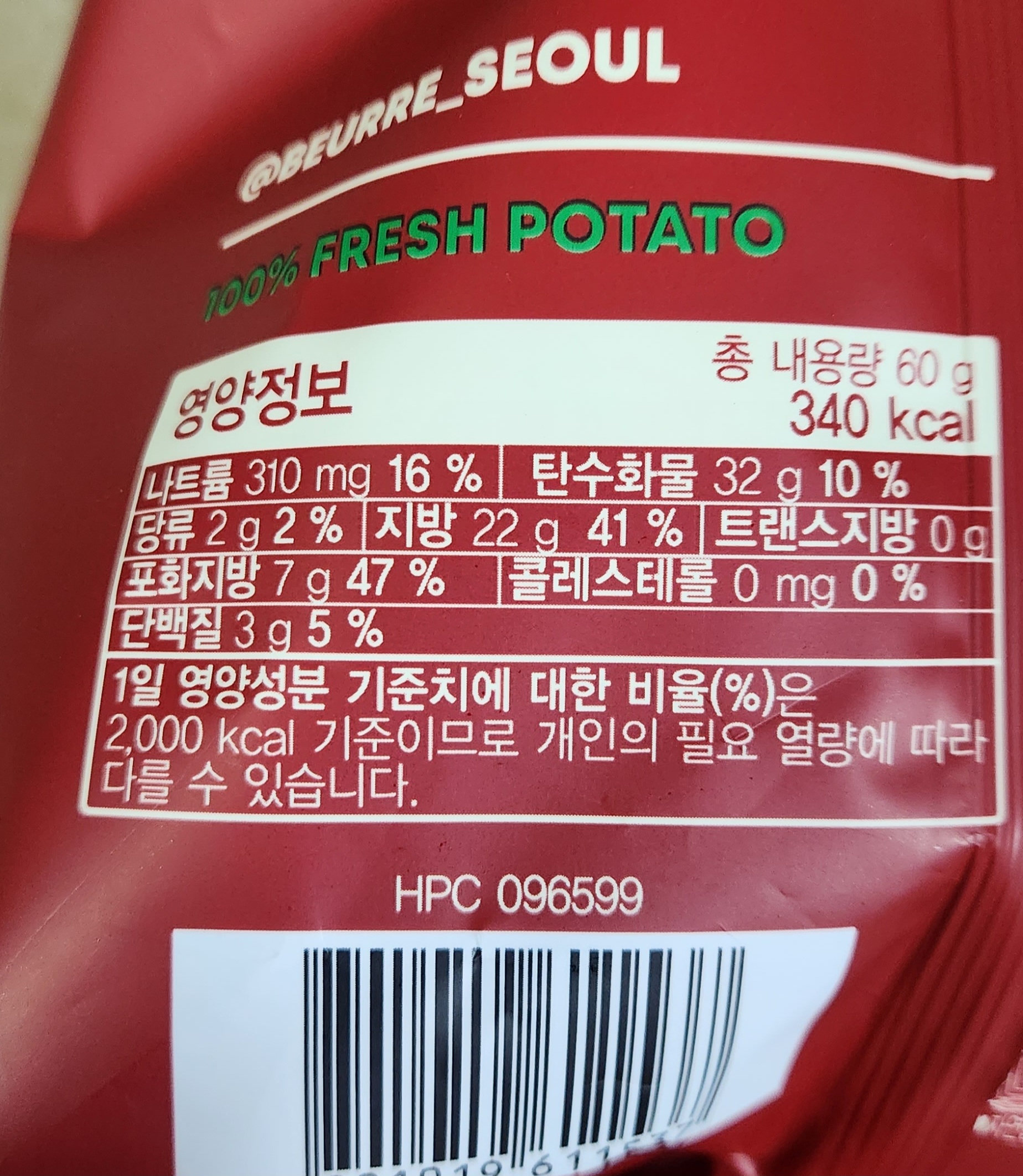용량 60g에 칼로리는 340kcal.