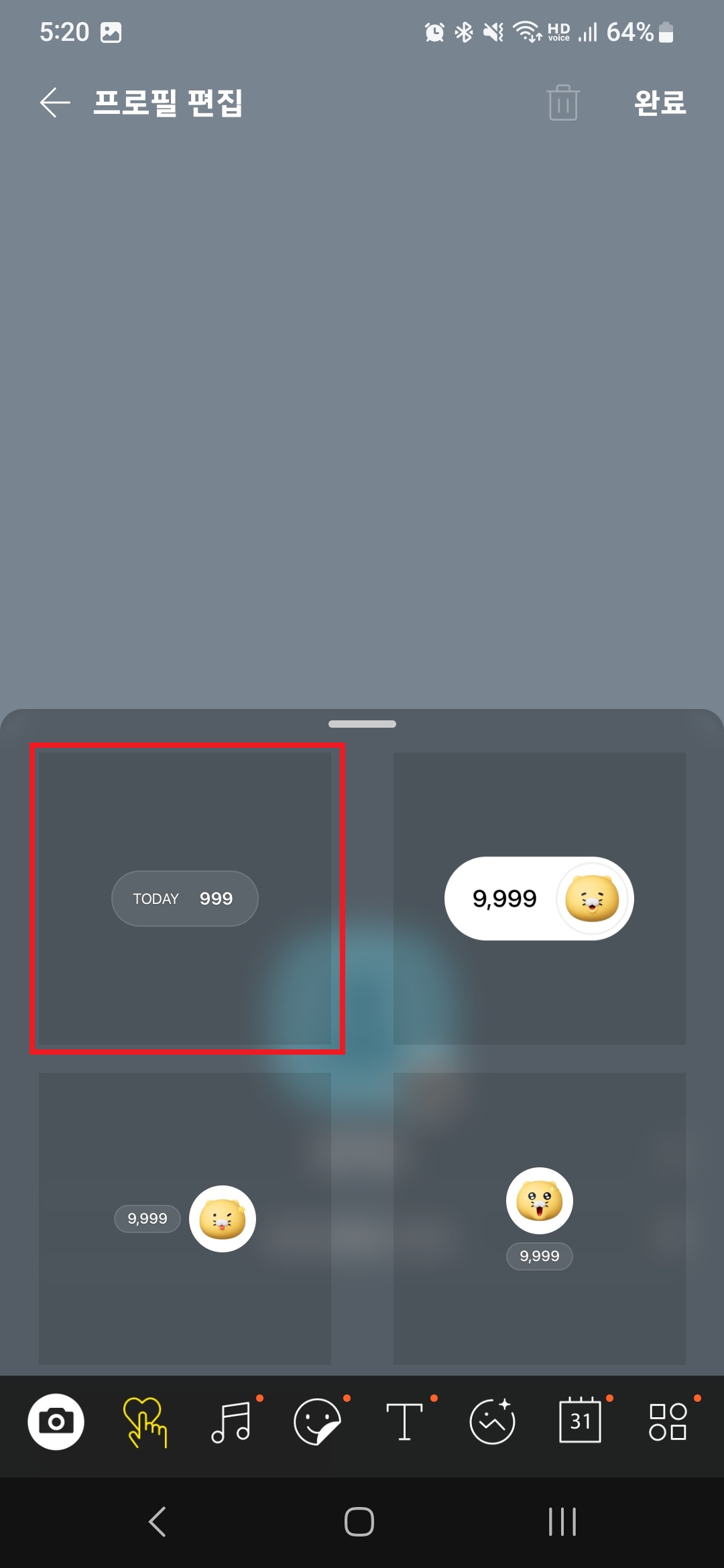 내 프로필 배경 한가운데 조회 수 표시 스티커가 자리를 잡는다.