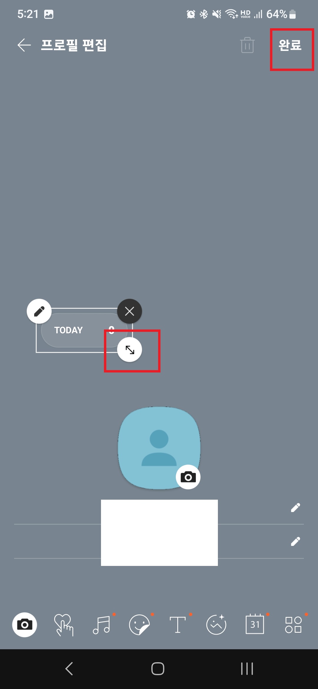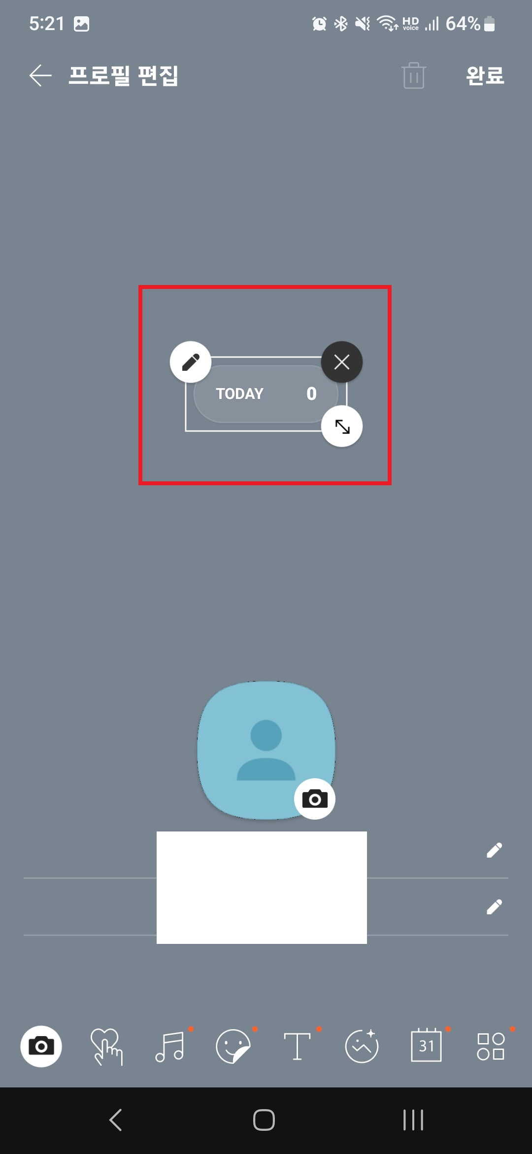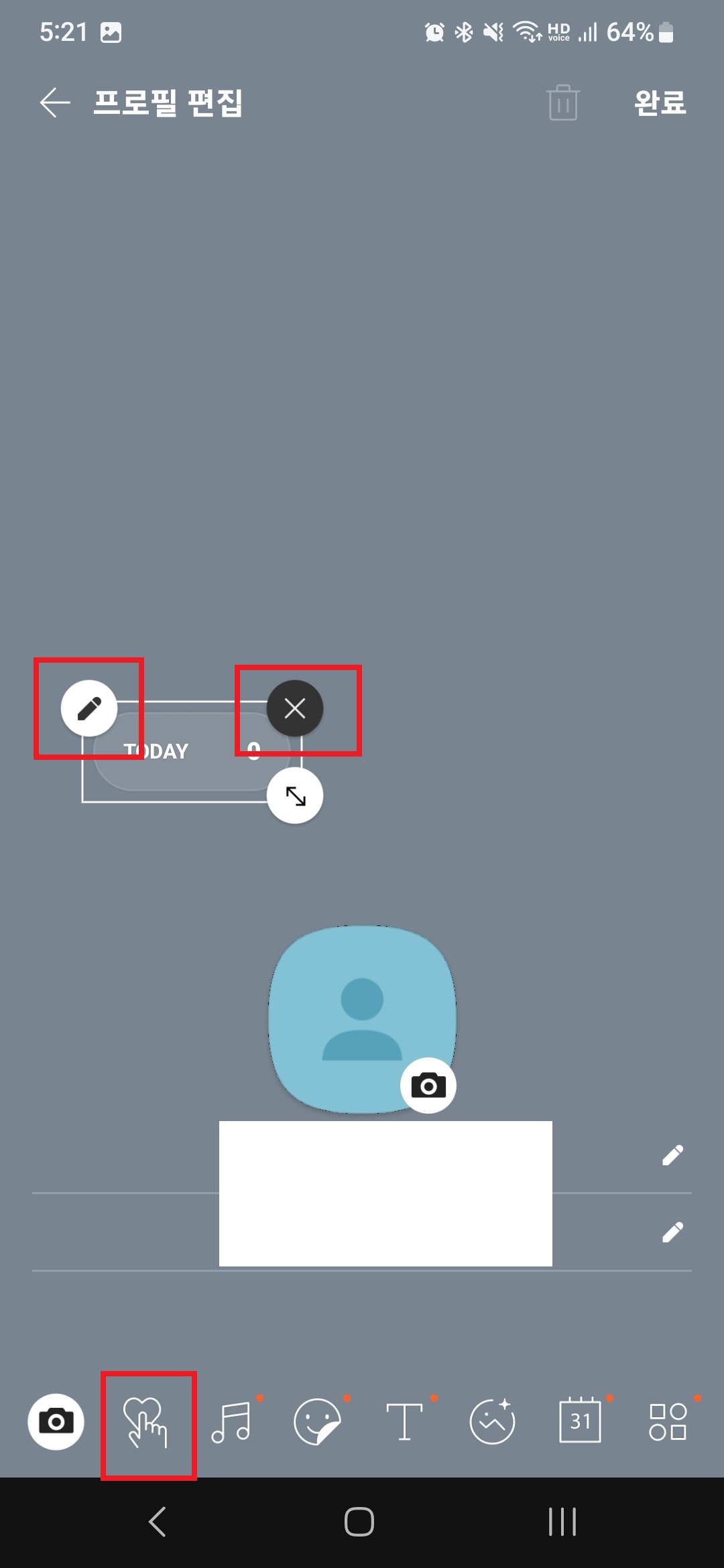 추후 스티커 색상을 변경하고 싶거나 삭제하고 싶으면 다시 프로필 편집에 들어가 스티커에 붙어있는 아이콘을 누르면 된다.