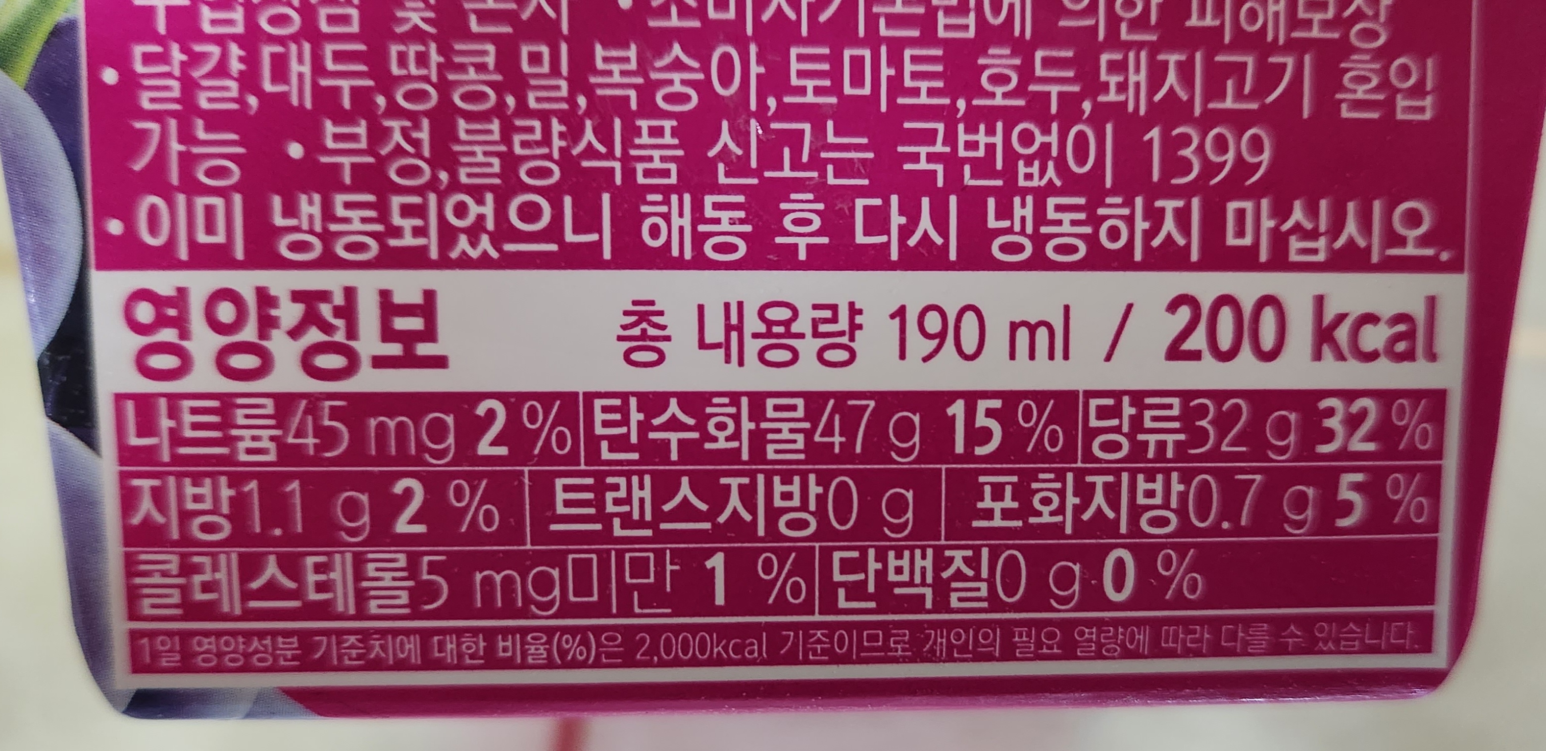 190ml에 칼로리는 200kcal.