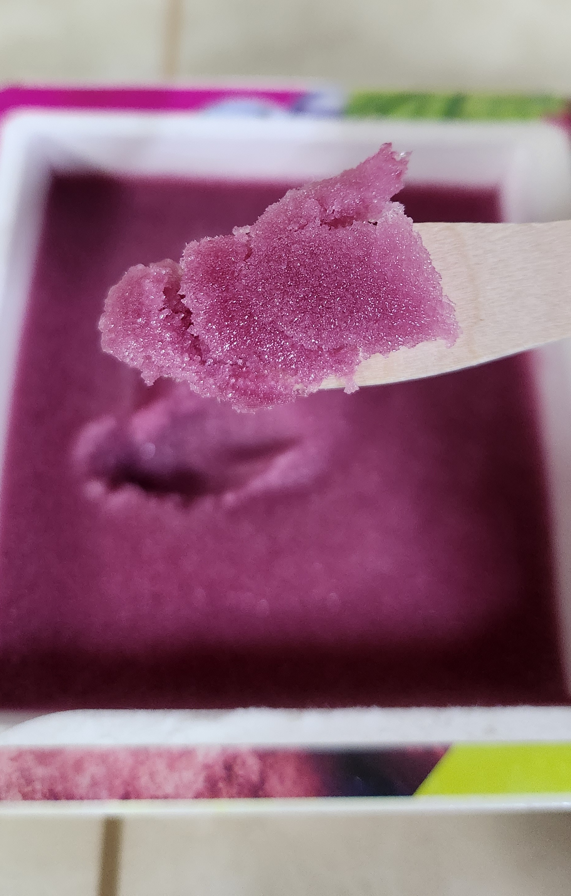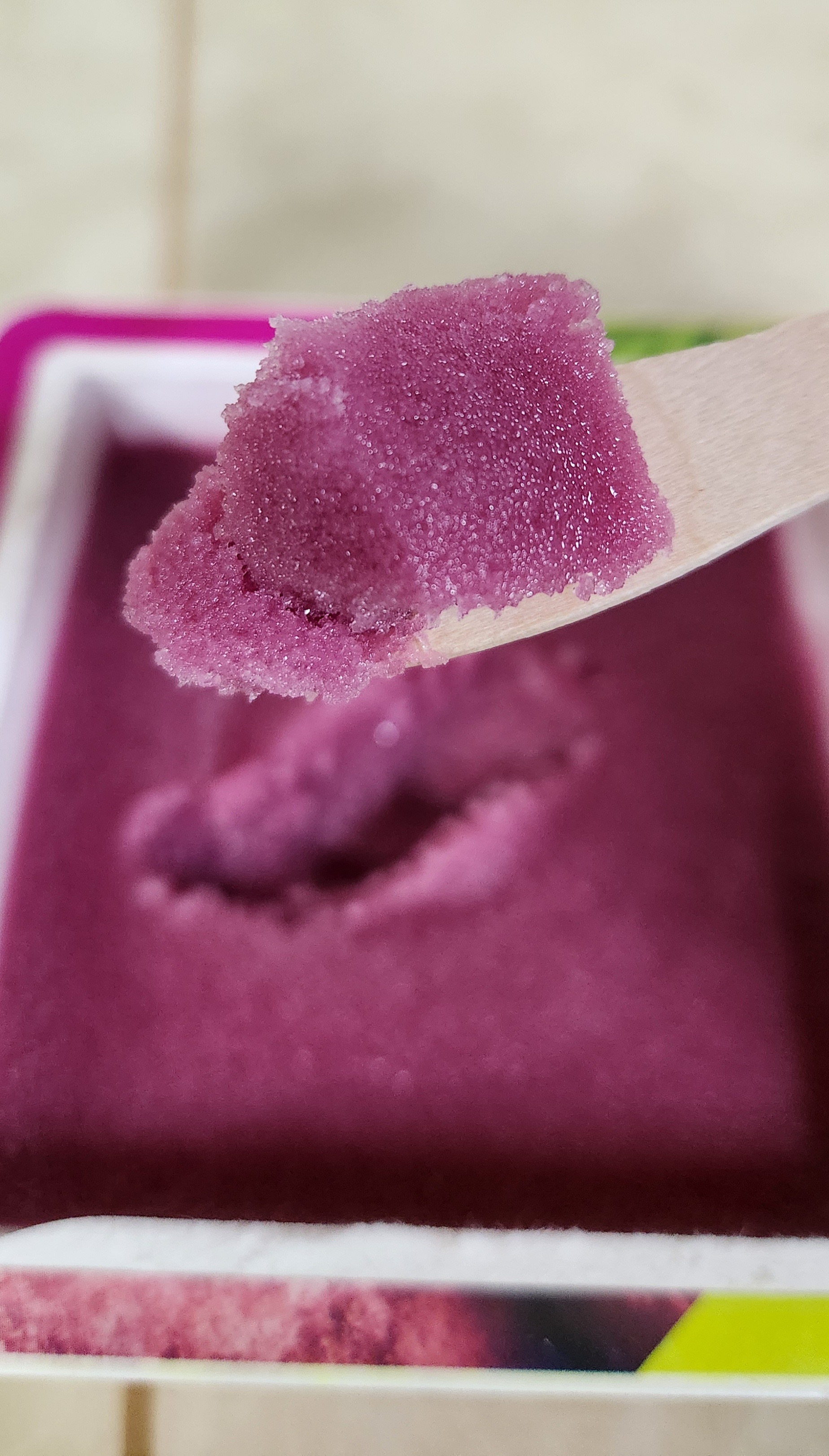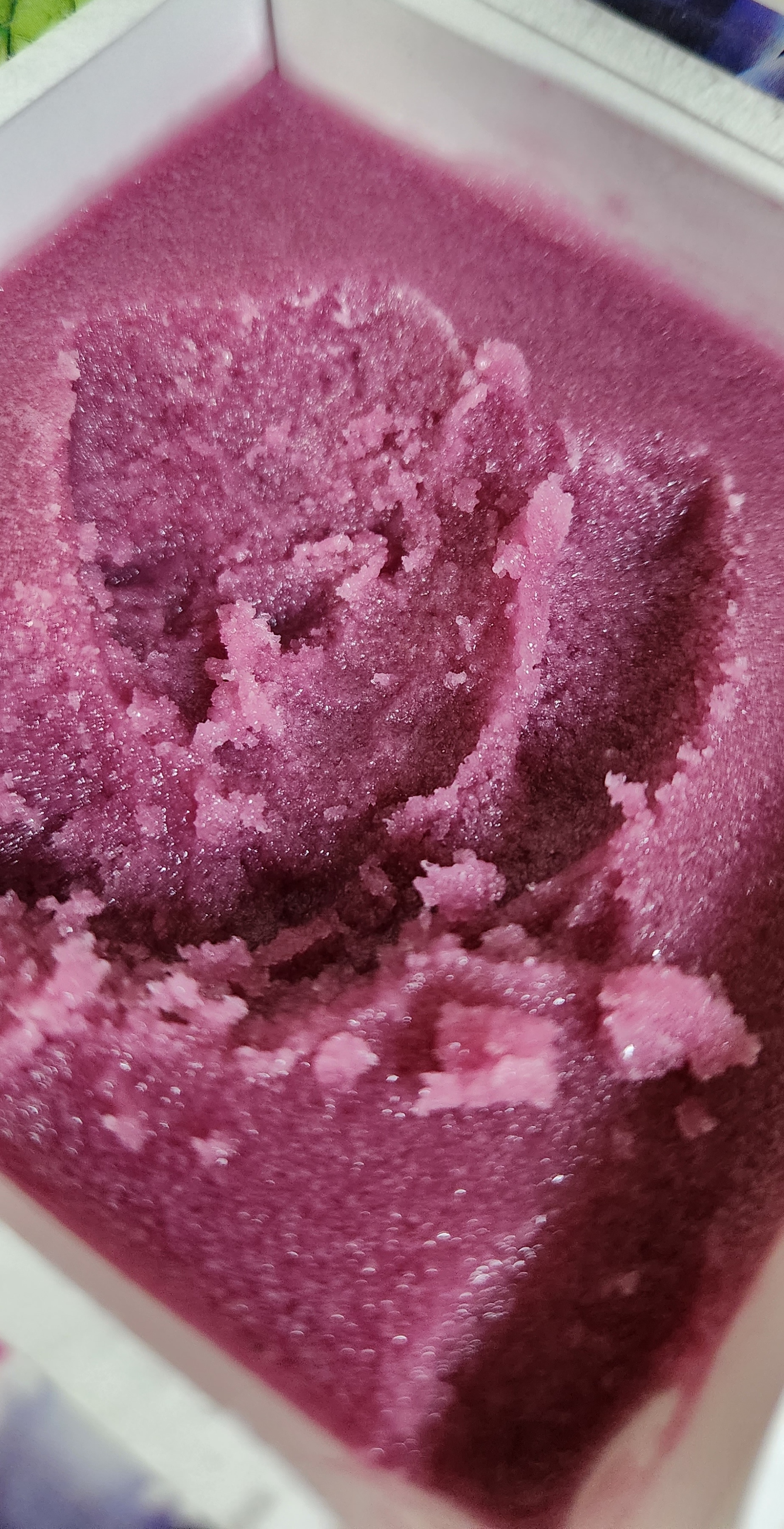 이건 와 아이스크림 특유의 미세 얼음 알갱이와 포도 시럽의 조합이다.
