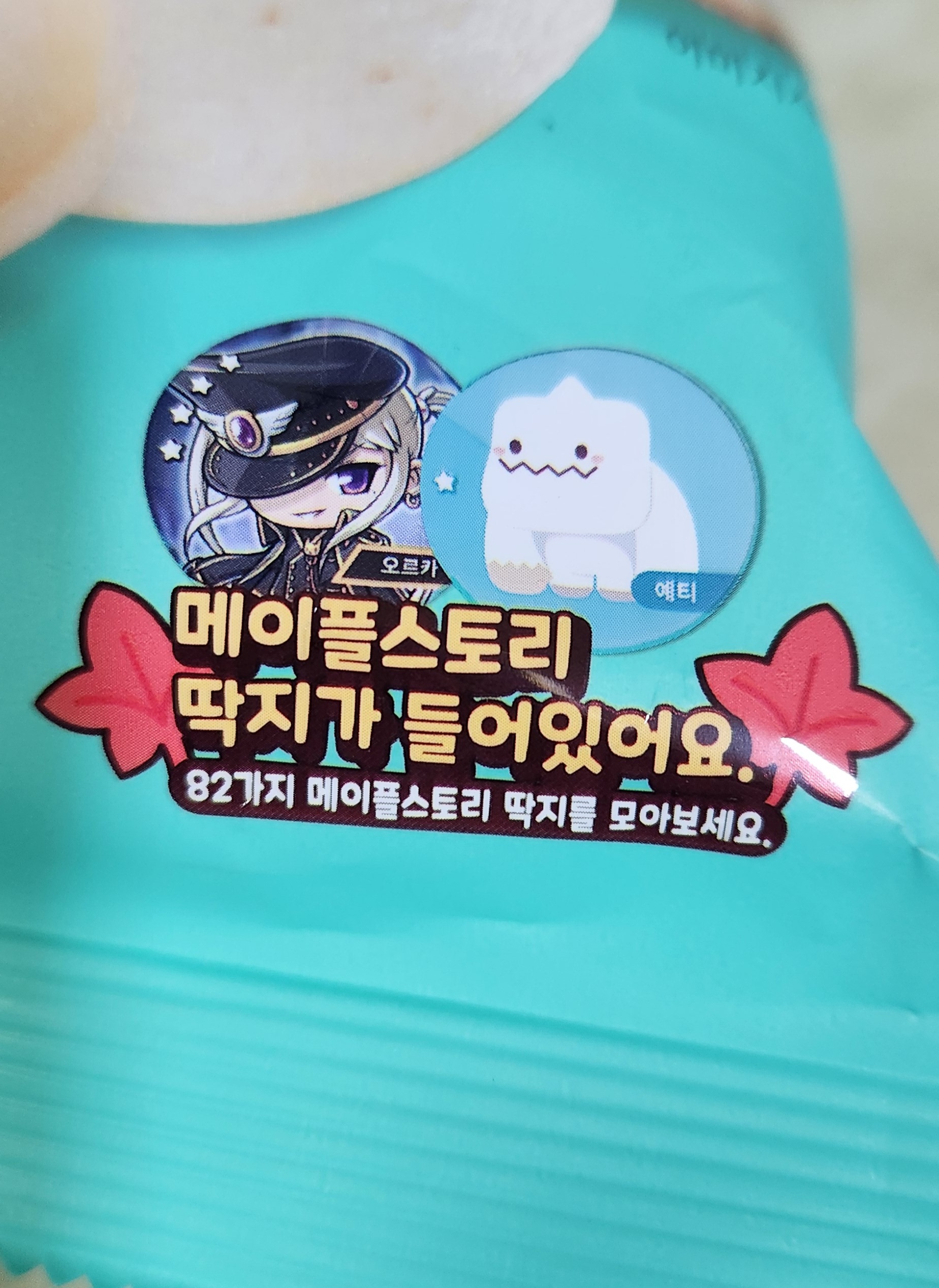 살 때는 보지 못했는데 메이플스토리 딱지가 들어 있다.
