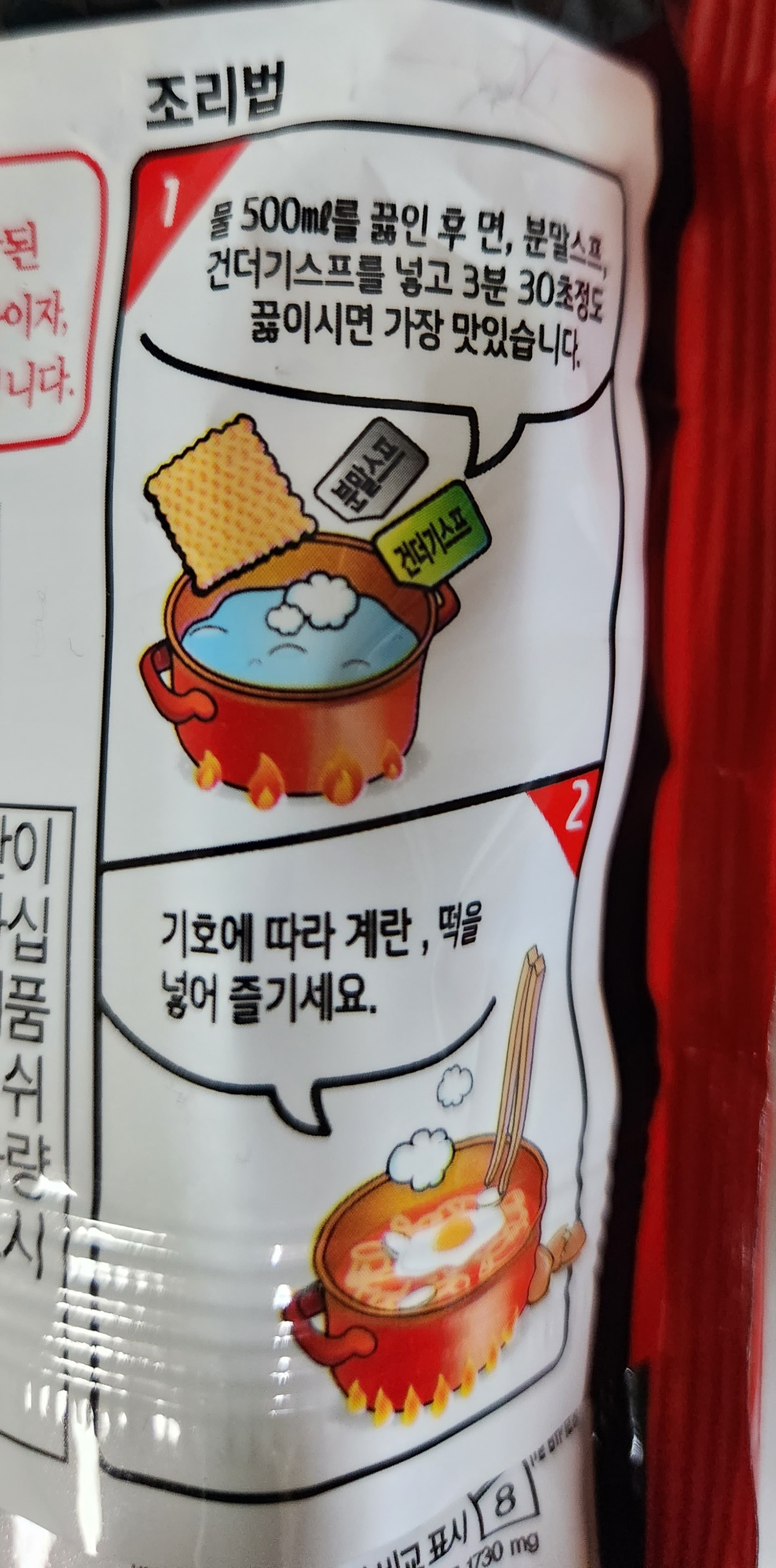 스프 포장도 매운맛에 맞춰 빨강 빨강 하다.