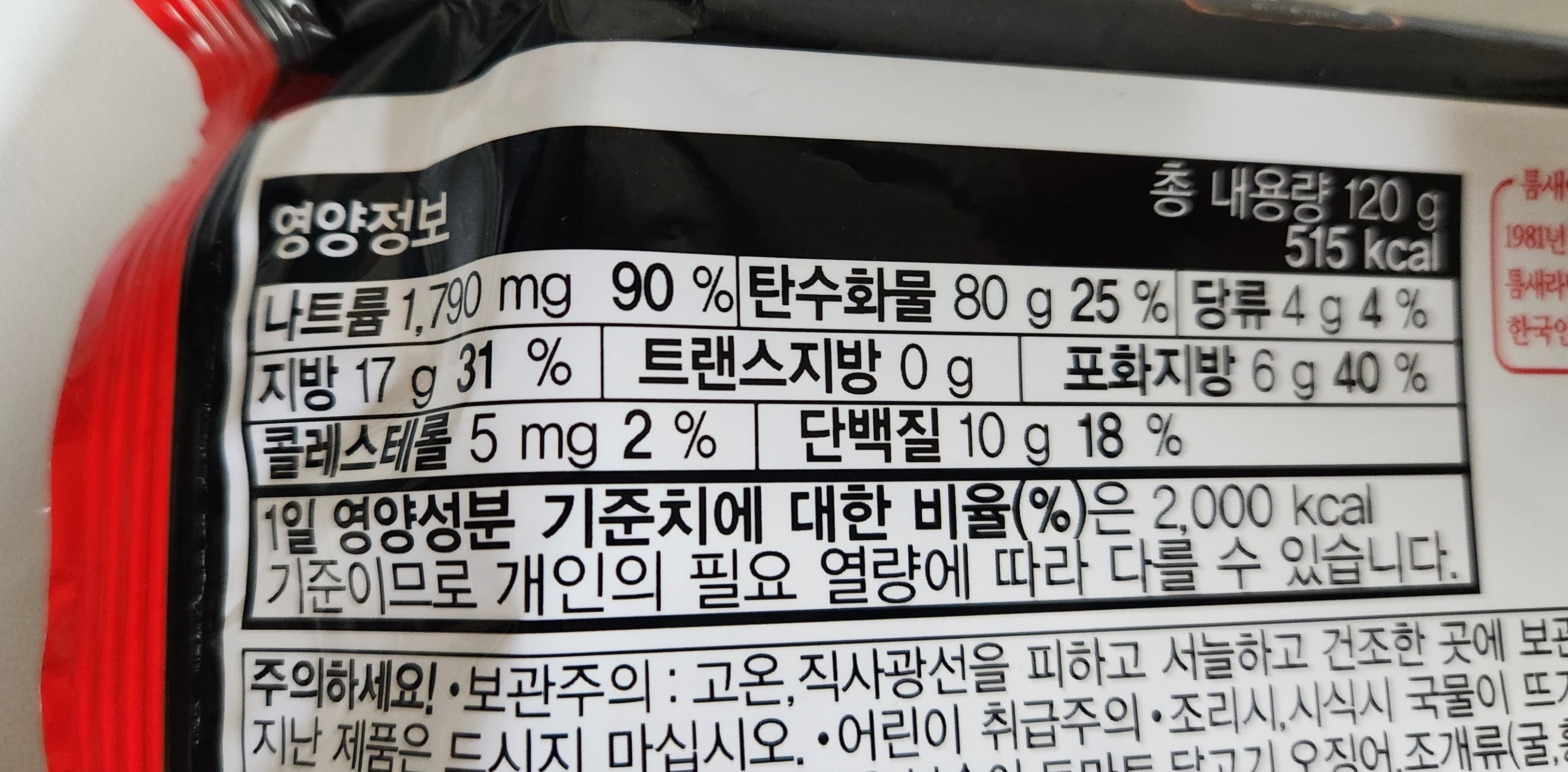 총 내용량 120g에 칼로리는 515kcal.