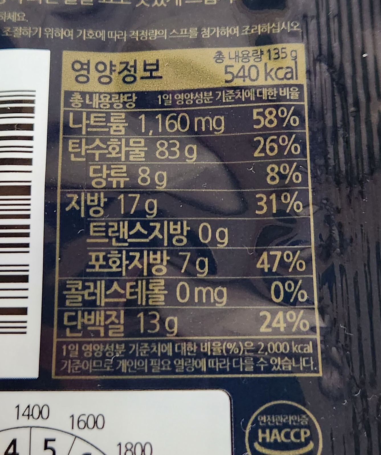 칼로리는 540kcal.