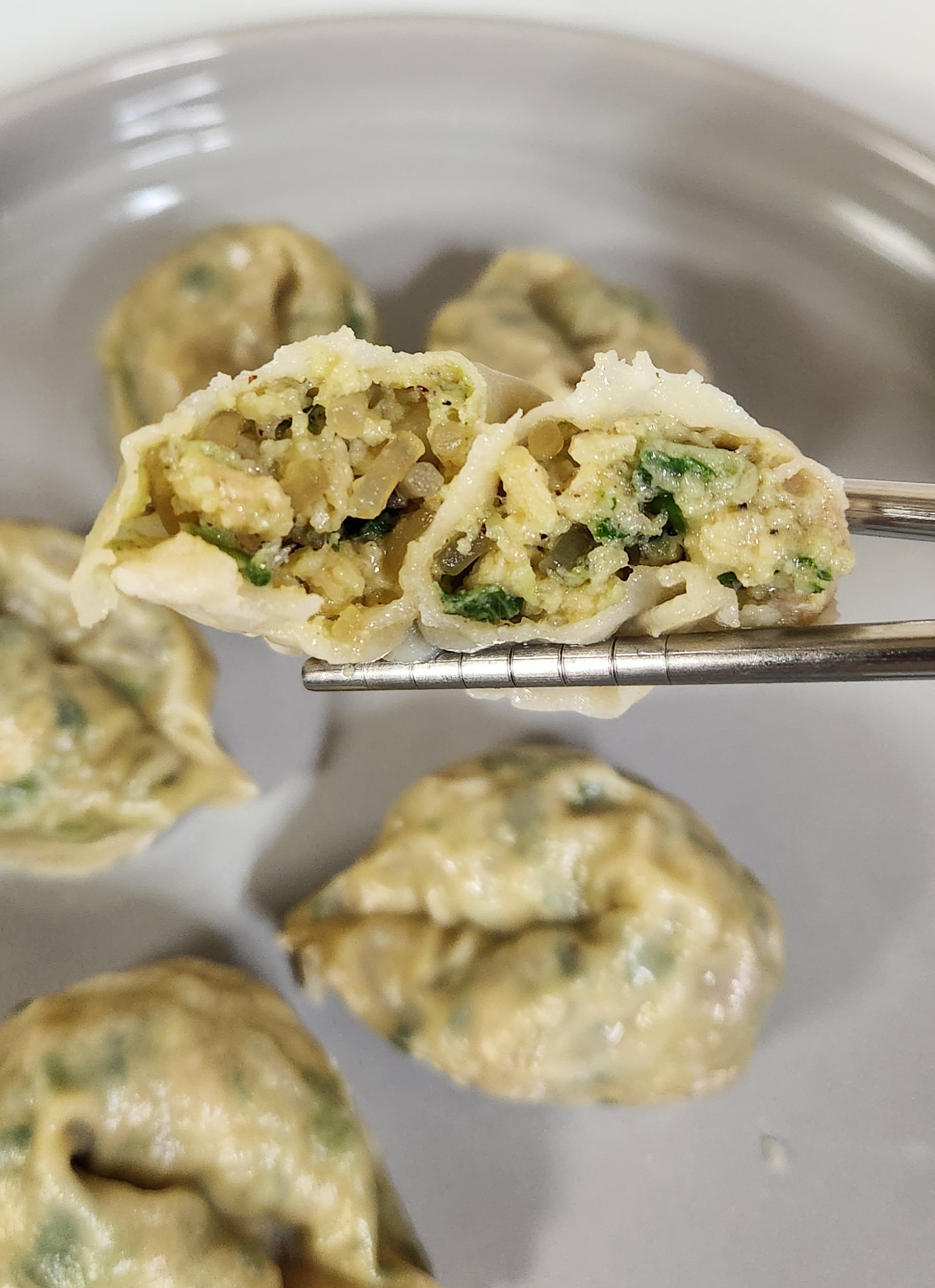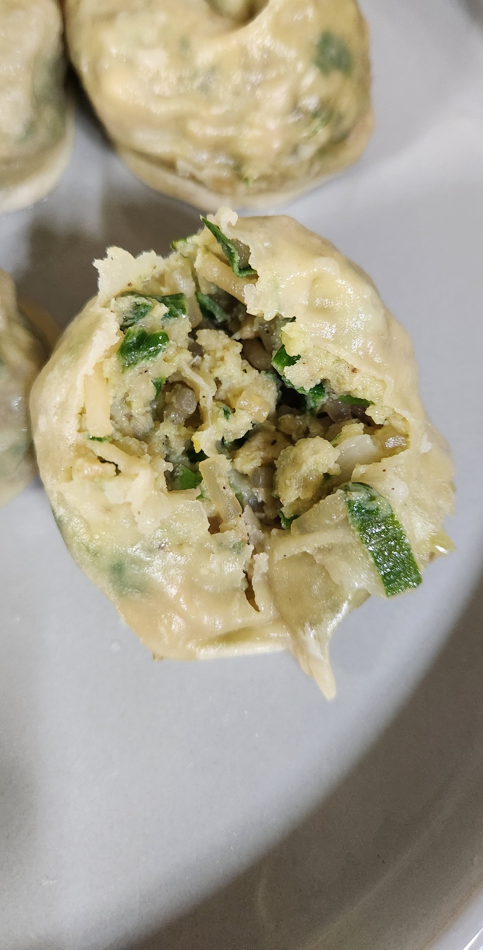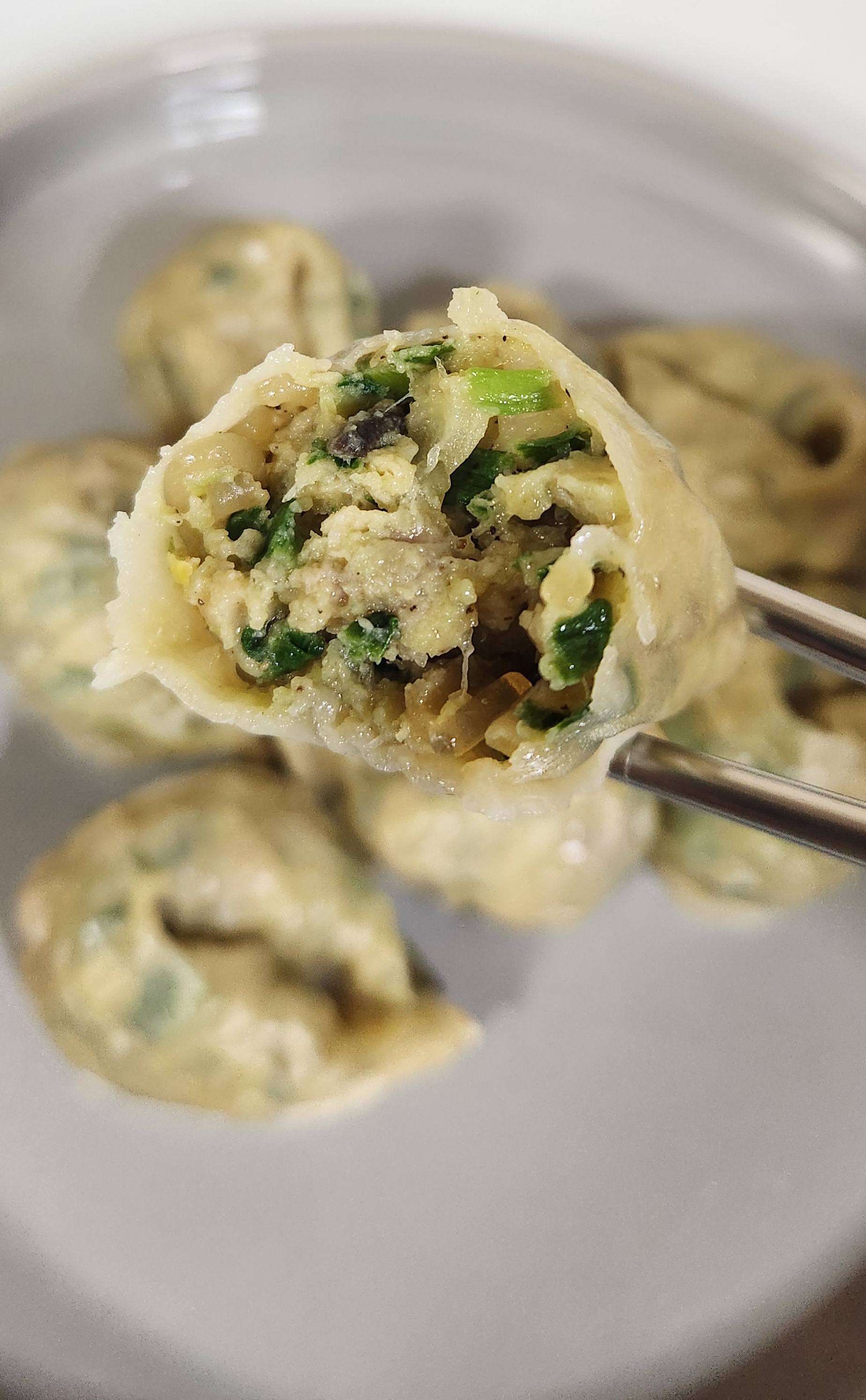 이번에 덤으로 한 봉지 온 얇은피 꽉찬속 고기만두를 먹어봤다.