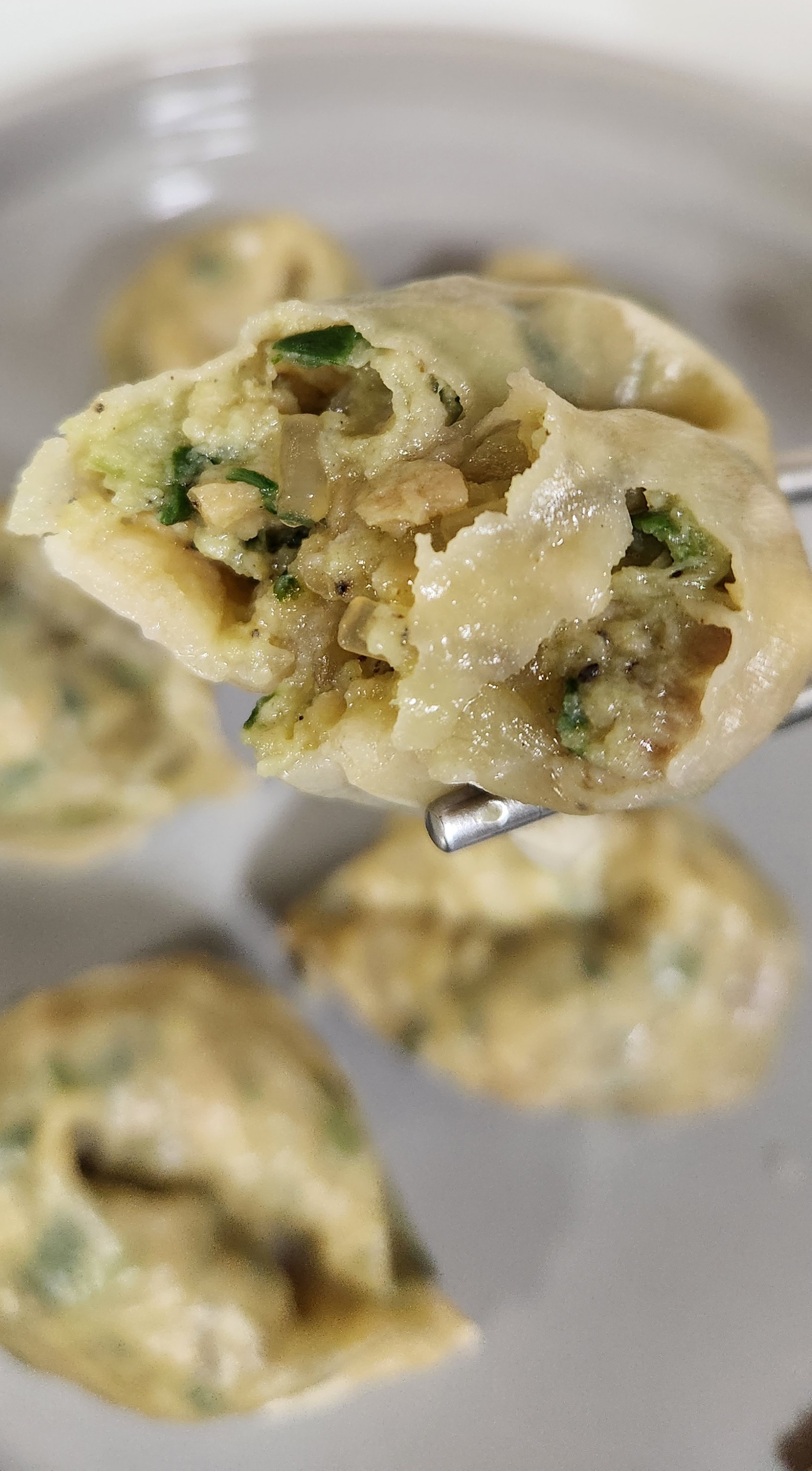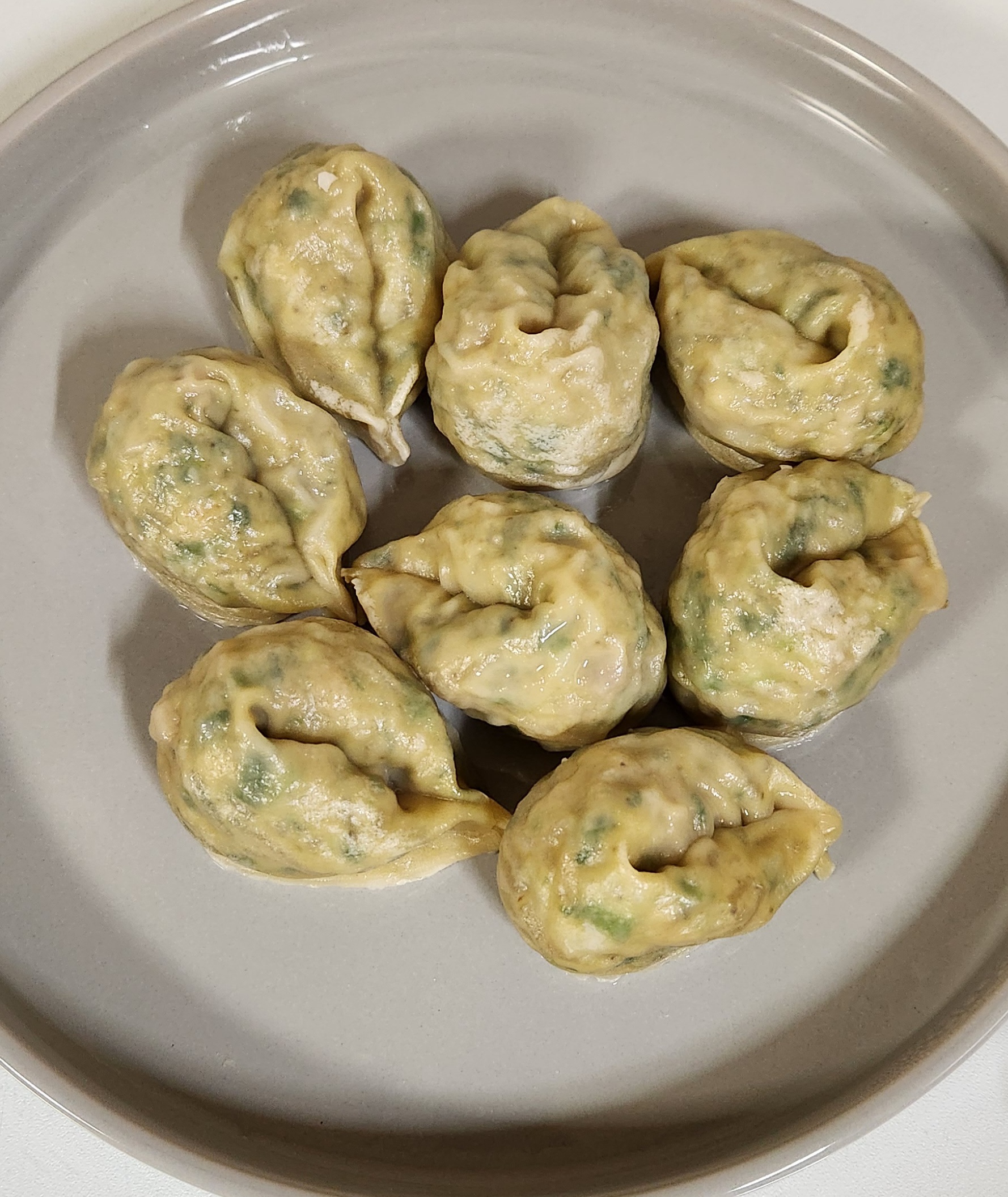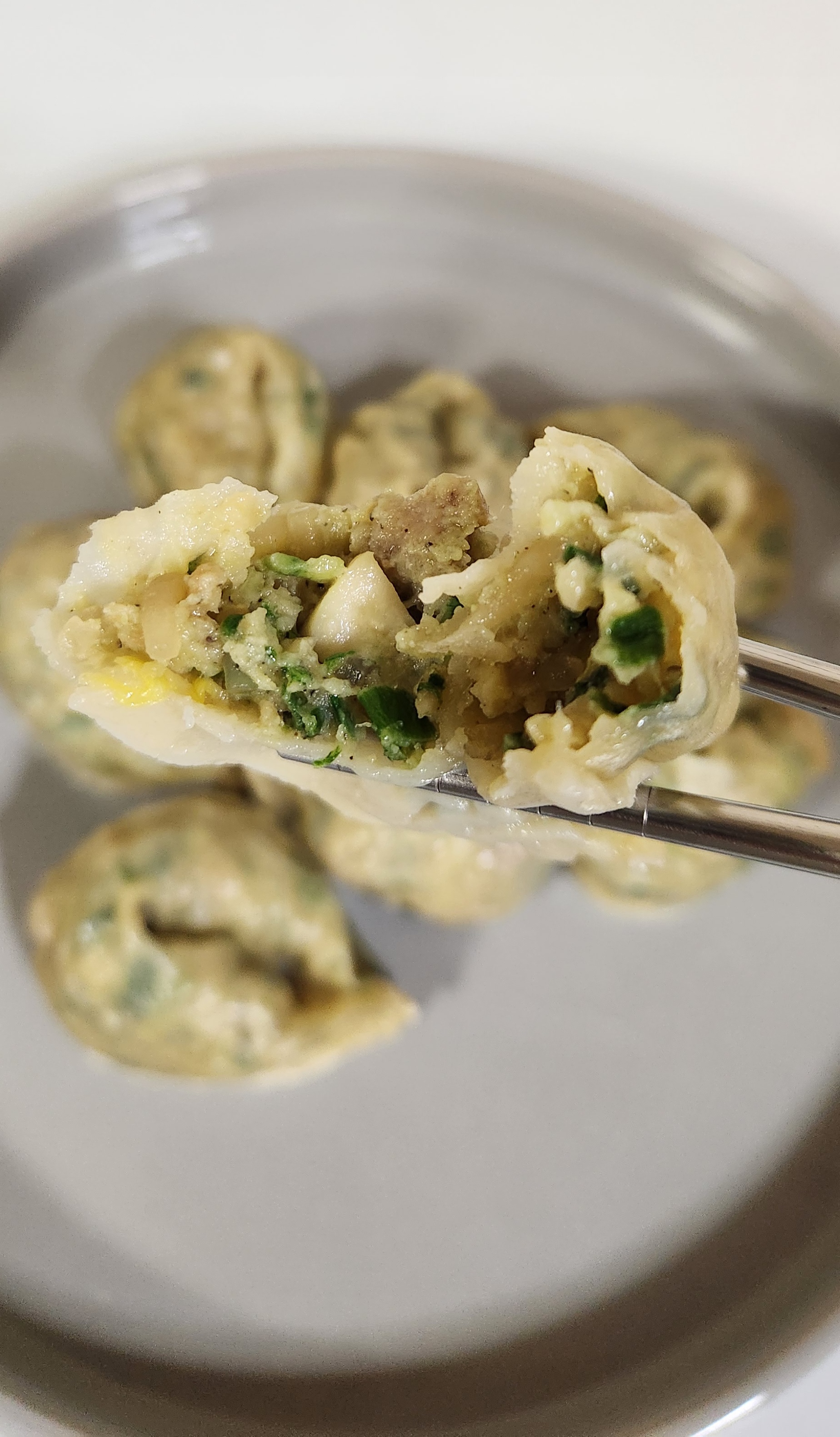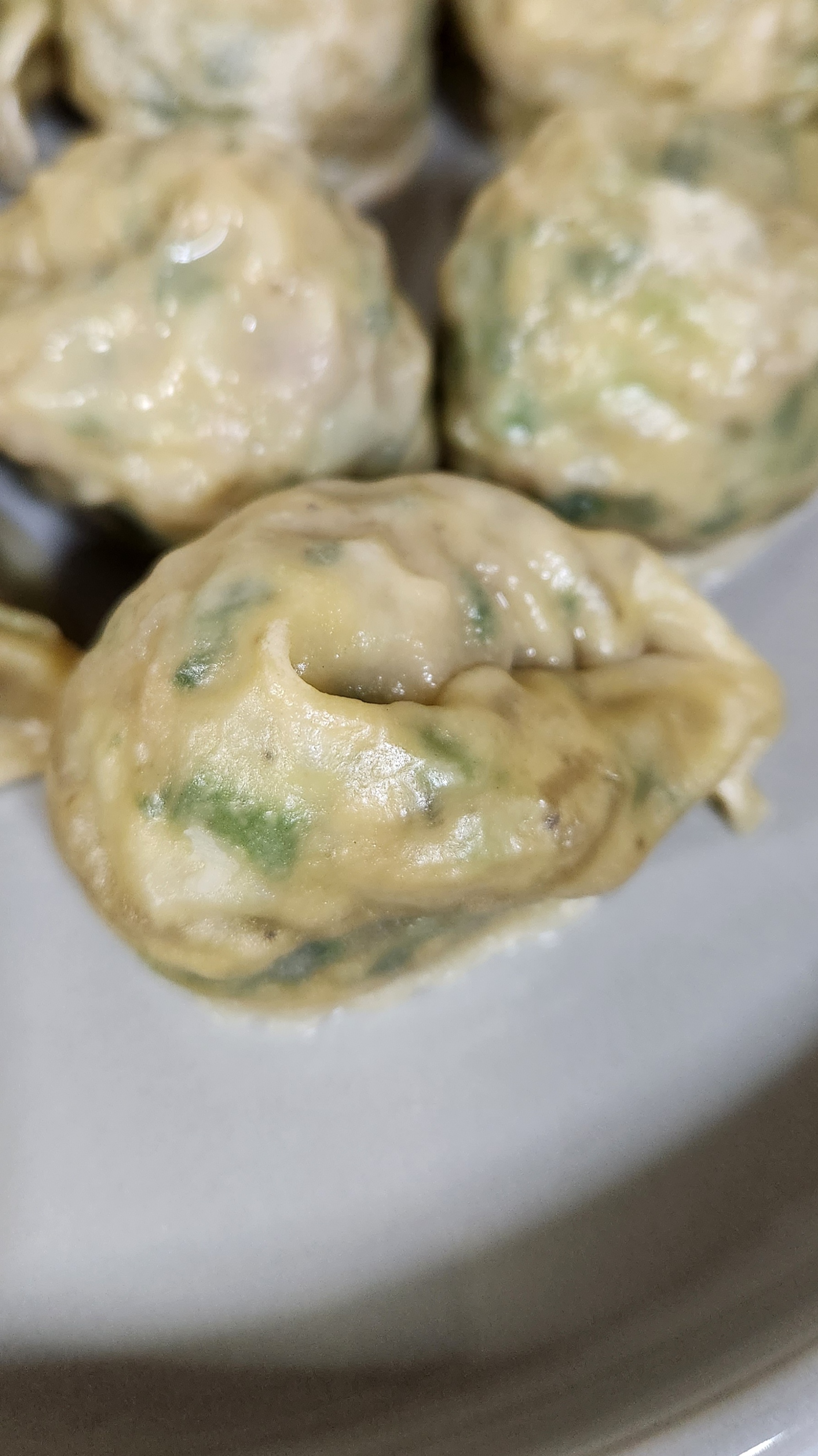 이번에 덤으로 한 봉지 온 얇은피 꽉찬속 고기만두를 먹어봤다.