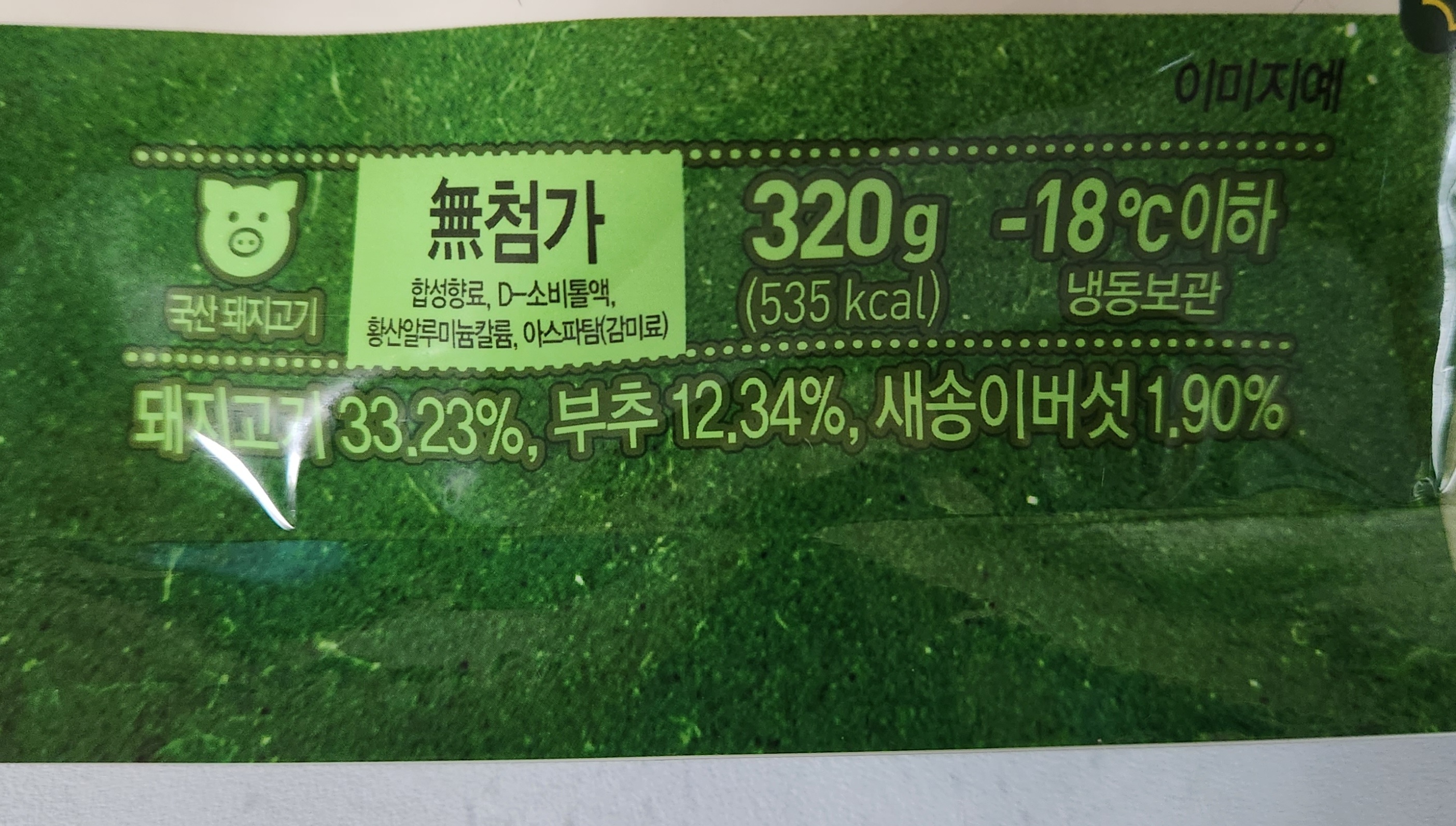 부추(12.34%), 새송이버섯(1.90%)이 들어가 있다.