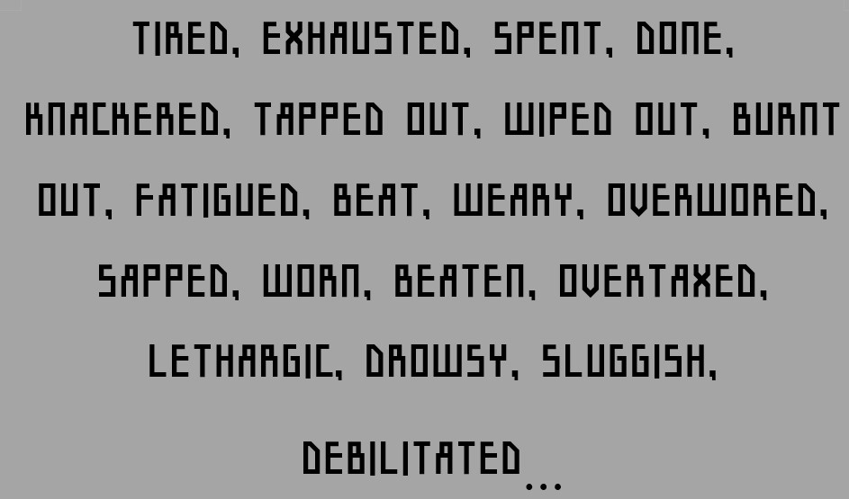 더 이상 힘을 쓸 수 없을 정도로 피곤하다고 표현할 때 very tired를 쓸 수도 있지만 다른 단어로 높은 피로감을 표현할 수도 있습니다.