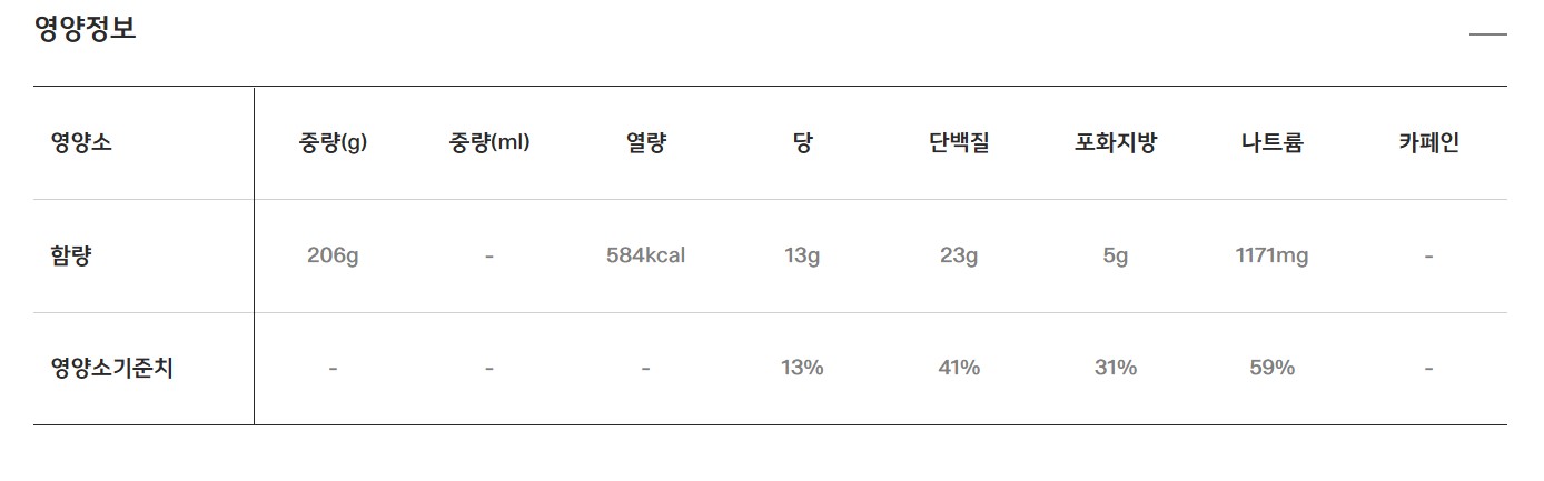 맥도날드 홈페이지에서 가져온 맥크리스피 클래식 버거 단품의 영양정보.